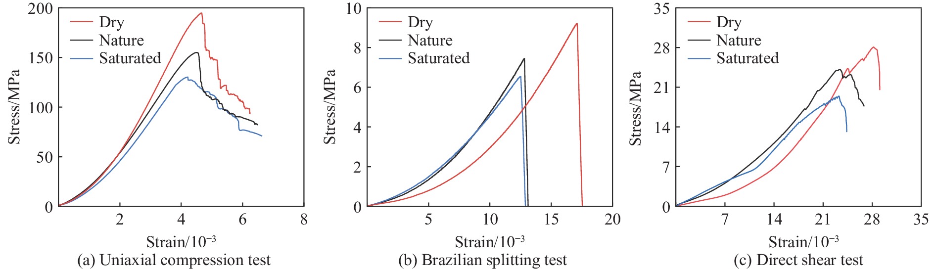 Figure  2.  Stress-strain curves of granite under different test conditions