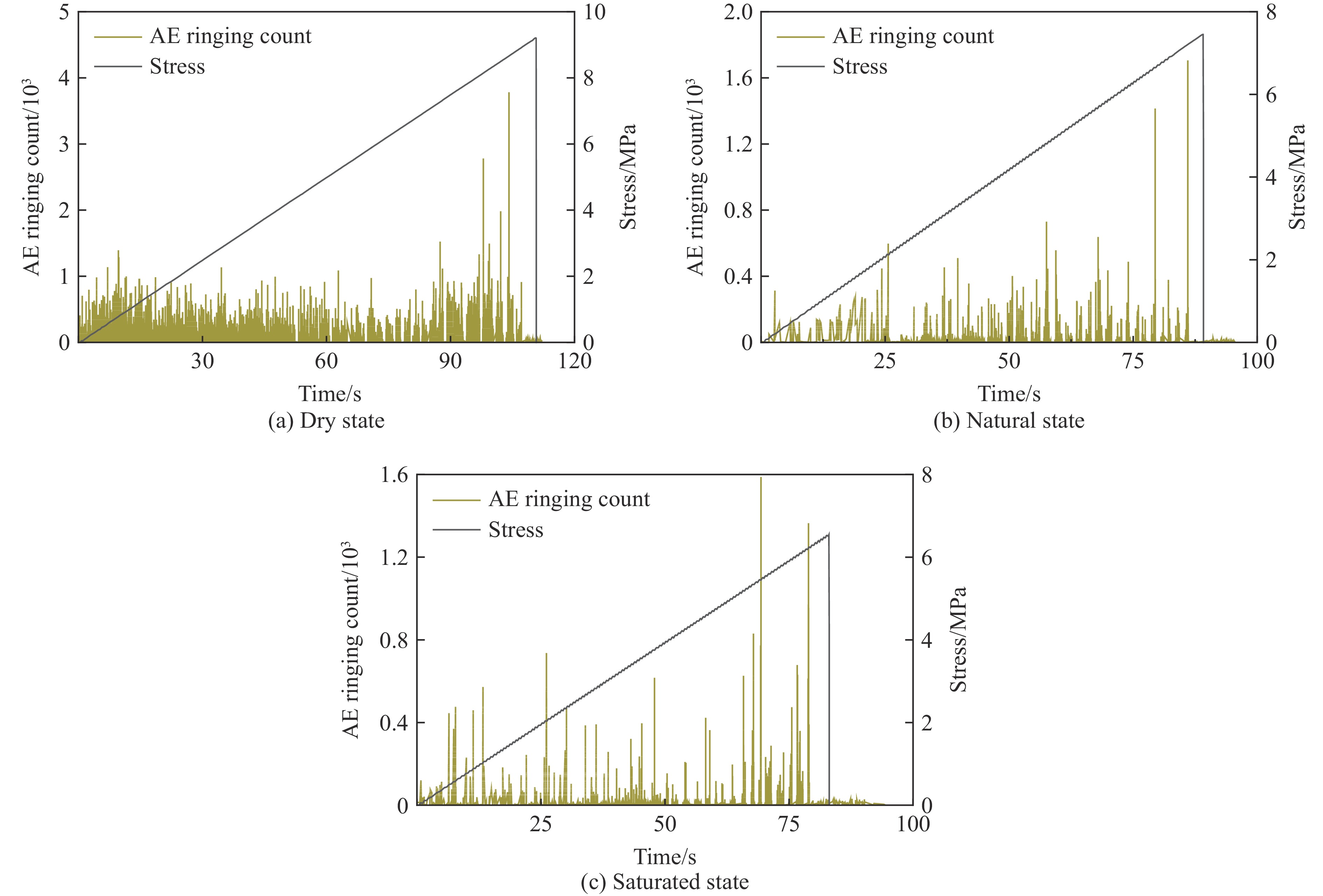 图  单轴压缩下不同含水状态花岗岩的声发射特征