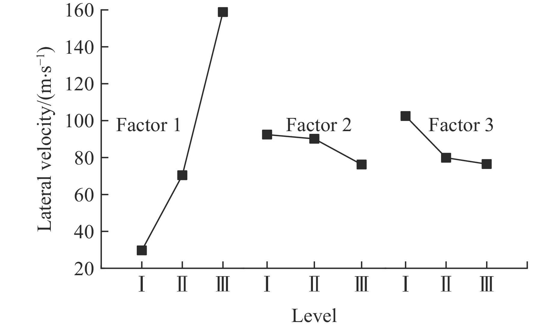 Figure  15.  Effects of factor levels on lateral velocity of jet