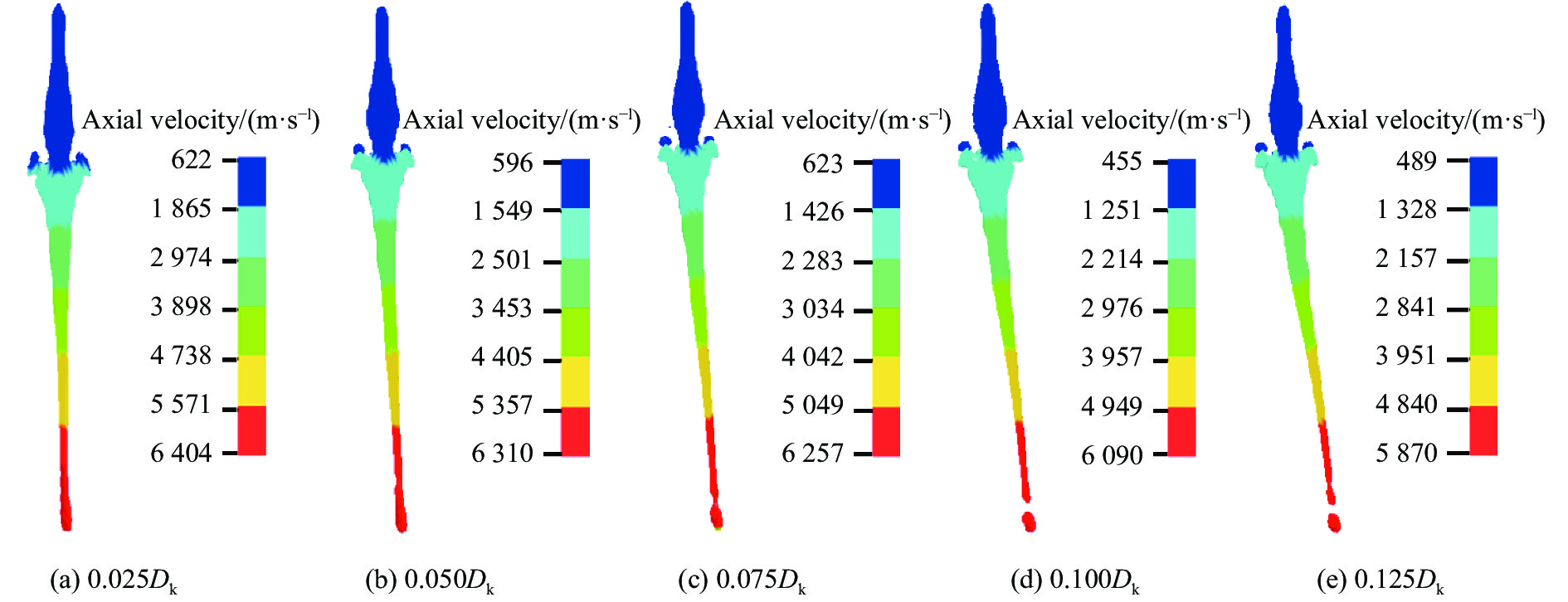 Figure  7.  Lateral velocity of jet under different initiation offsets