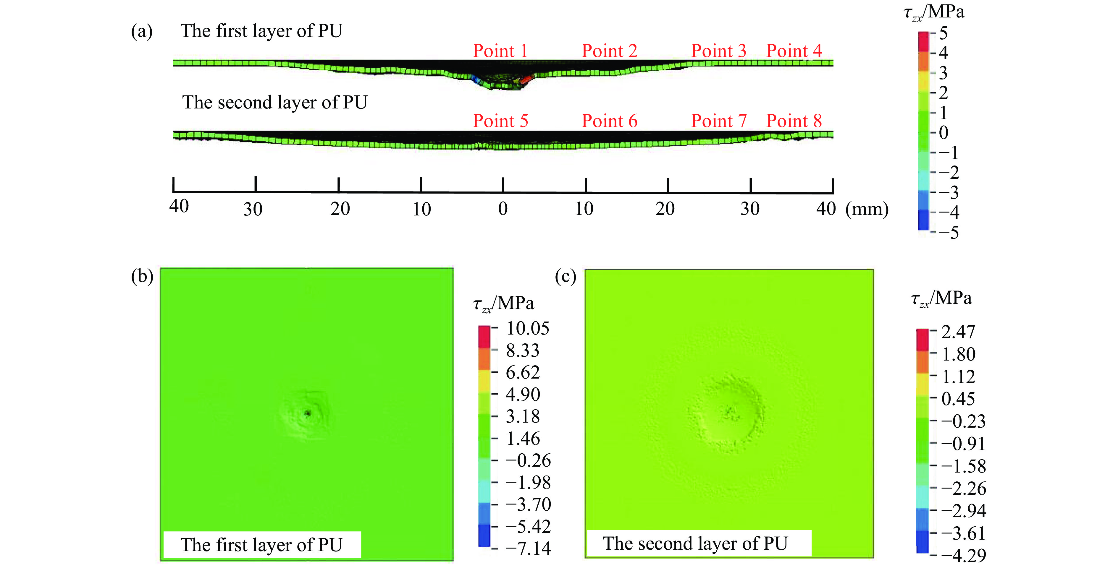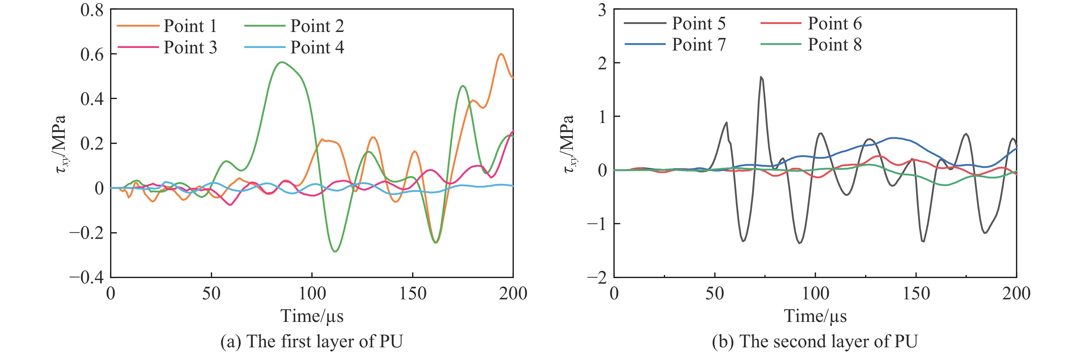 ρ/(kg·m–3) G/GPa K1/GPa K2/GPa K3/GPa T/GPa σHEL/GPa pHEL/GPa 2488 29.6 40.8 −136.6 239.8 0.078 6 2.75 A B C M N D1 D2 1.679 1.783 0.0144 0.637 0.982 0.005 0.8 表 2 PU材料的Mooney-Rivlin本构模型参数