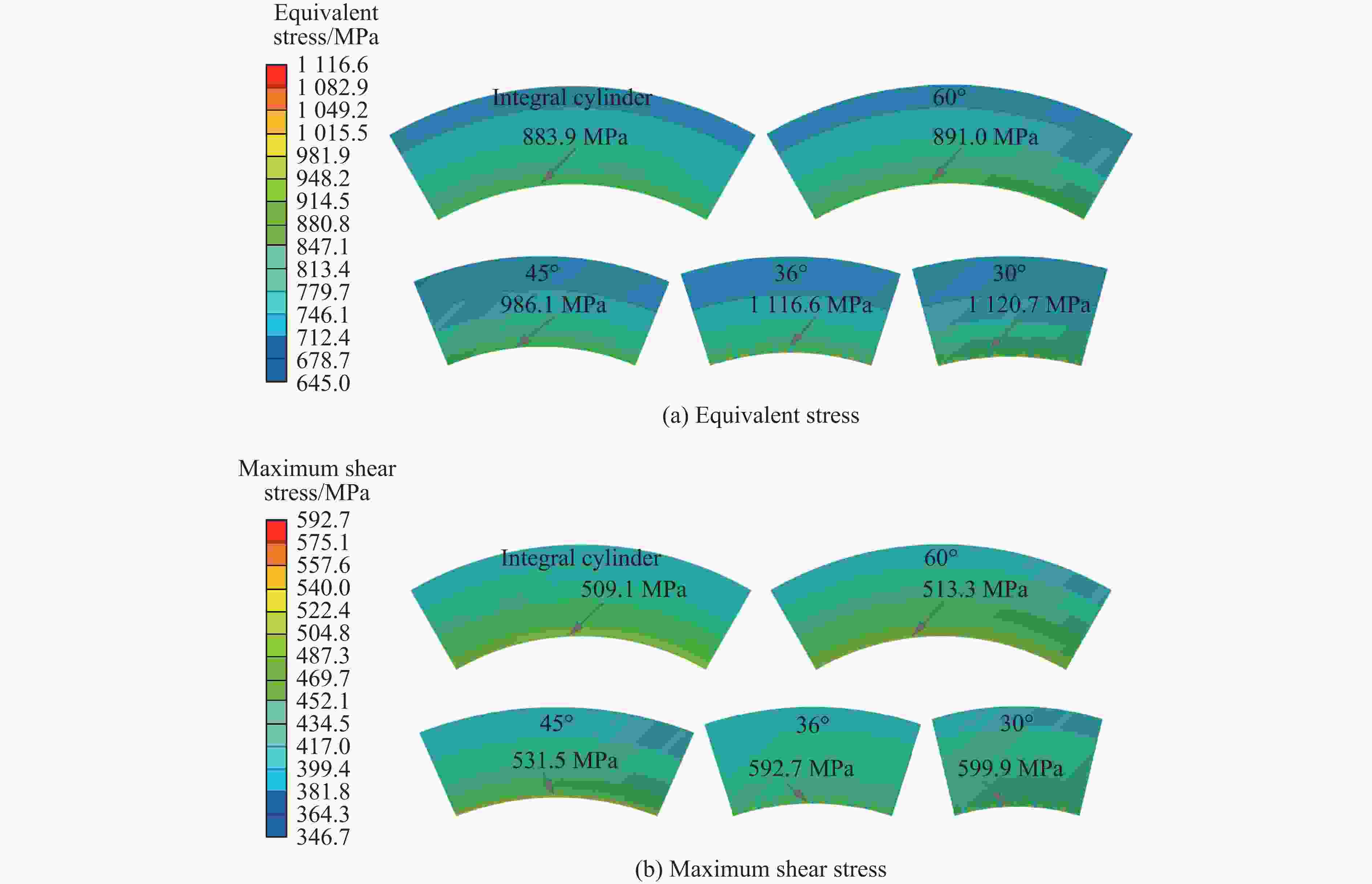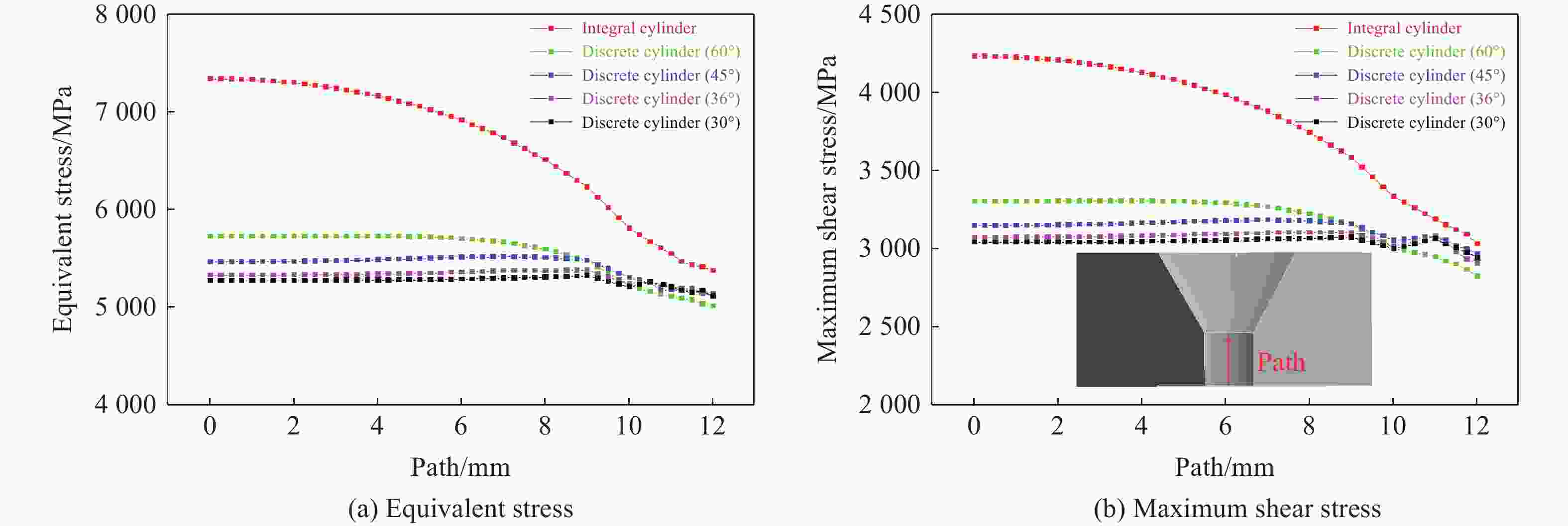 Figure  3.  Distribution of equivalent stress and maximum shear stress in discrete pressure cylinder