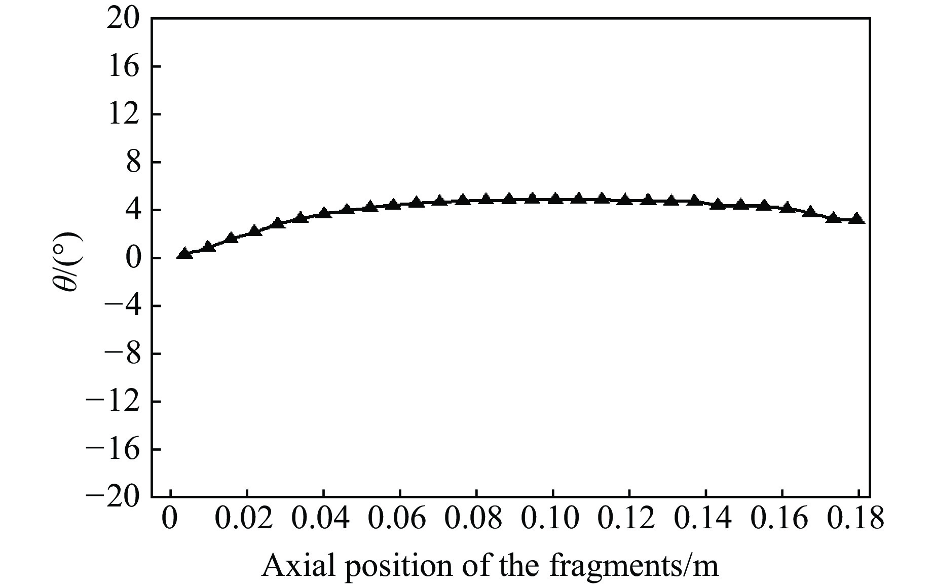图  由Shapiro公式得到的飞散角沿装药轴线方向的分布