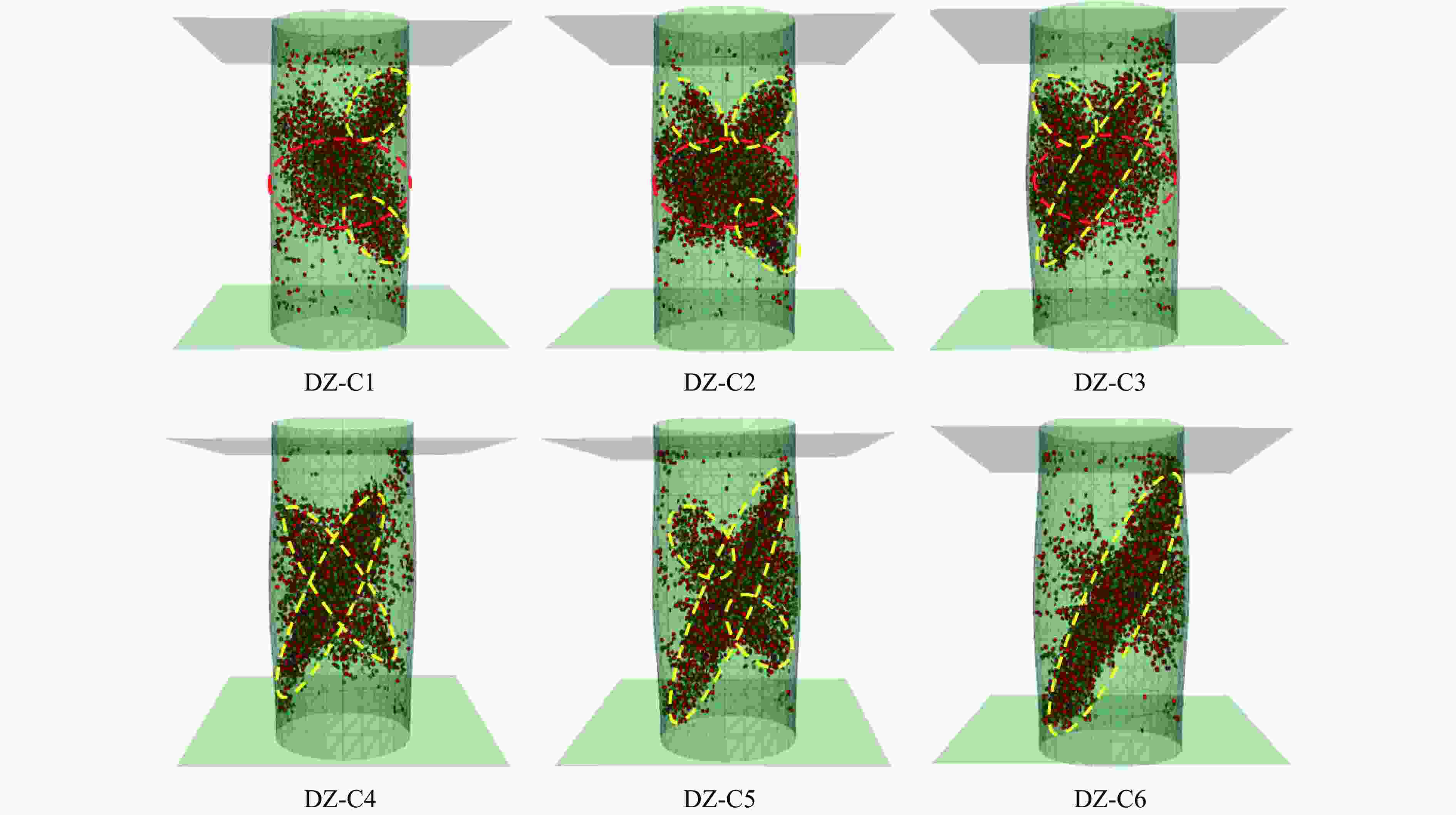 Sample Size/(mm×mm) Layer Number of particles Loading rate/(mm·min−1) DZ-C0–DZ-C6 50×100 0–6 8881 0.12 表 7 不同CFRP布层数下煤圆柱的力学参数