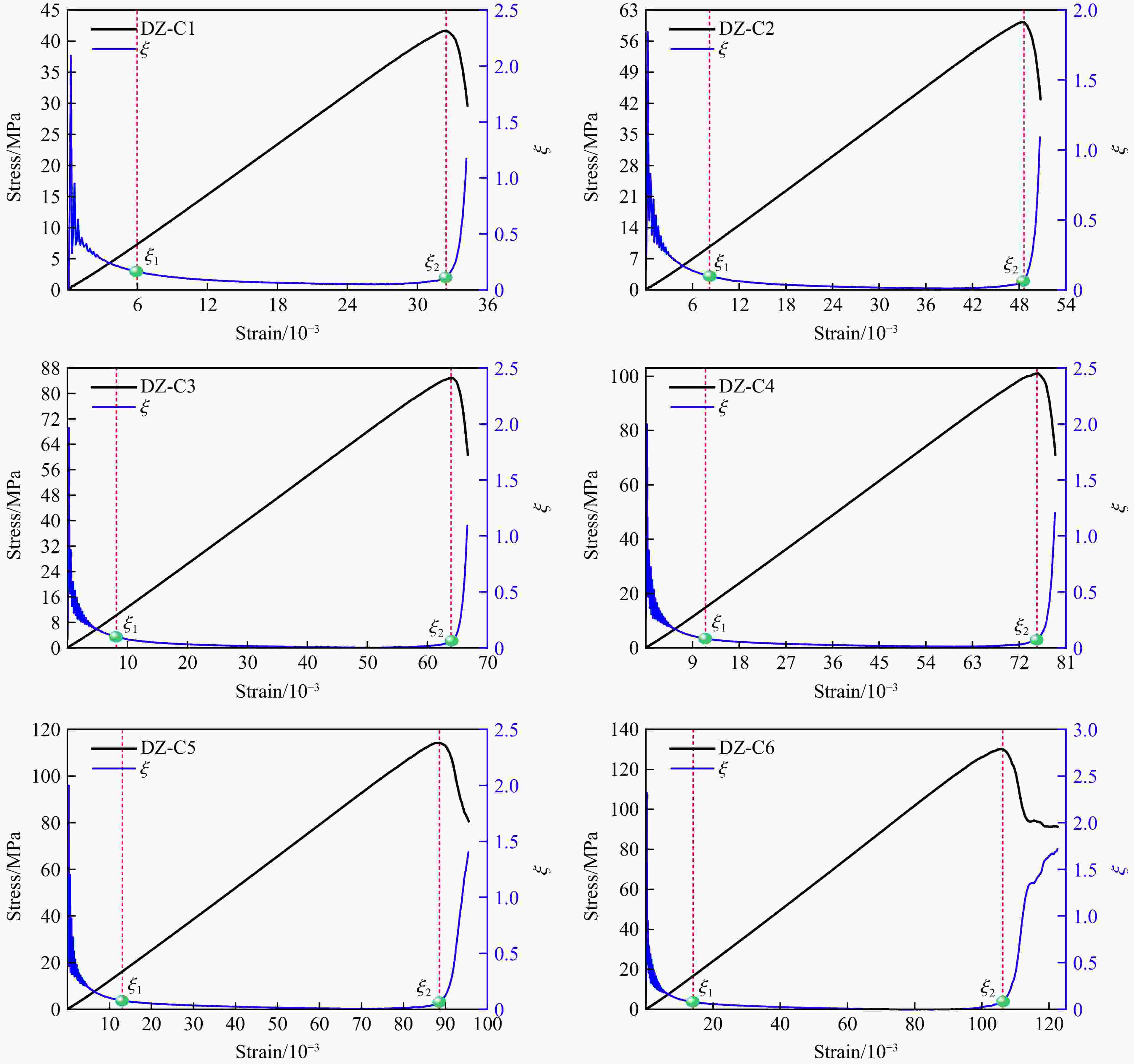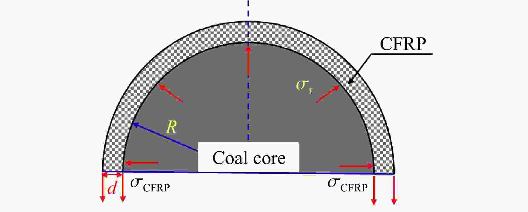 Sample n εp/10−3 σp/MPa E/GPa DZ-C0 0 12.71 20.08311 1.63 DZ-C1 1 33.40 41.63361 1.48 DZ-C2 2 48.31 60.29511 1.30 DZ-C3 3 63.95 84.83669 1.38 DZ-C4 4 75.46 101.03746 1.41 DZ-C5 5 88.68 114.25265 1.35 DZ-C6 6 105.91 130.26486 1.29 表 8 不同CFRP层数煤圆柱的约束刚度及等效厚度