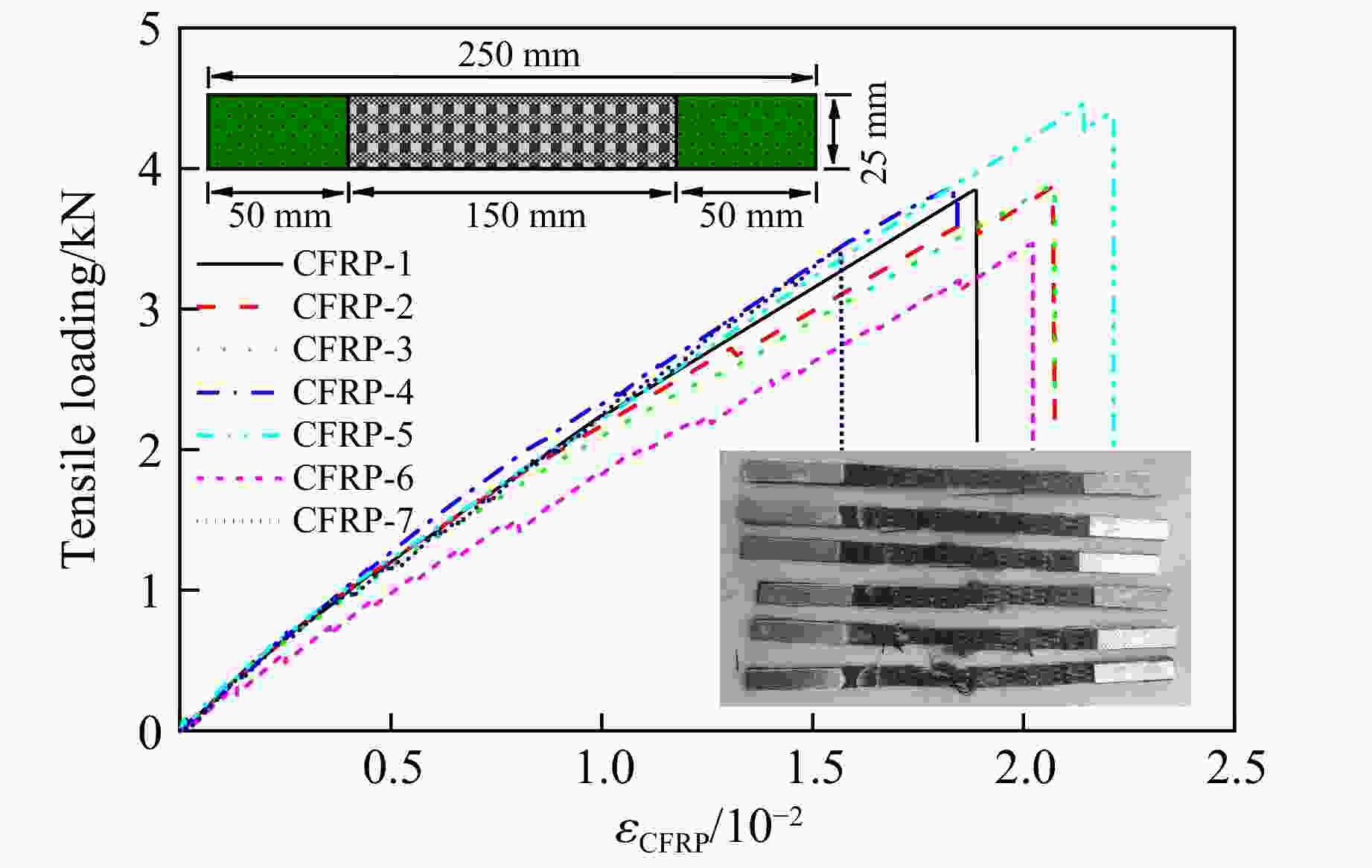CFRP No. FCFRP/N x/mm εCFRP/% TCFRP/MPa CFRP-1 3846.0 4.71 1.88 921.2 CFRP-2 3880.5 5.19 2.07 929.5 CFRP-3 3889.5 5.18 2.07 931.6 CFRP-4 3877.5 4.57 1.83 928.7 CFRP-5 4462.5 5.35 2.14 1068.9 CFRP-6 3466.5 5.05 2.02 830.3 CFRP-7 3408.0 3.91 1.56 816.3 Average value 3832.9 4.85 1.94 918.1 表 2 单轴压缩试验方案