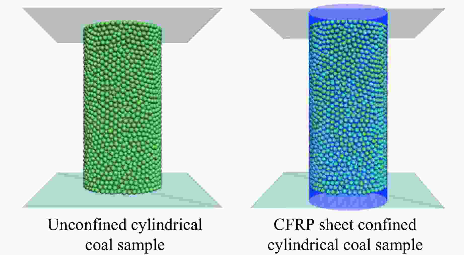 Sample σp εp E Test/MPa Sim./MPa Error/% Test/10−3 Sim./10−3 Error/% Test/GPa Sim./GPa Error/% Unconfined 19.50 20.08 3.0 13.53 12.71 6.1 1.72 1.63 5.2 CFRP confined 42.14 41.63 1.2 37.04 33.40 9.8 1.61 1.48 8.10 表 5 煤圆柱和CFRP布的细观参数