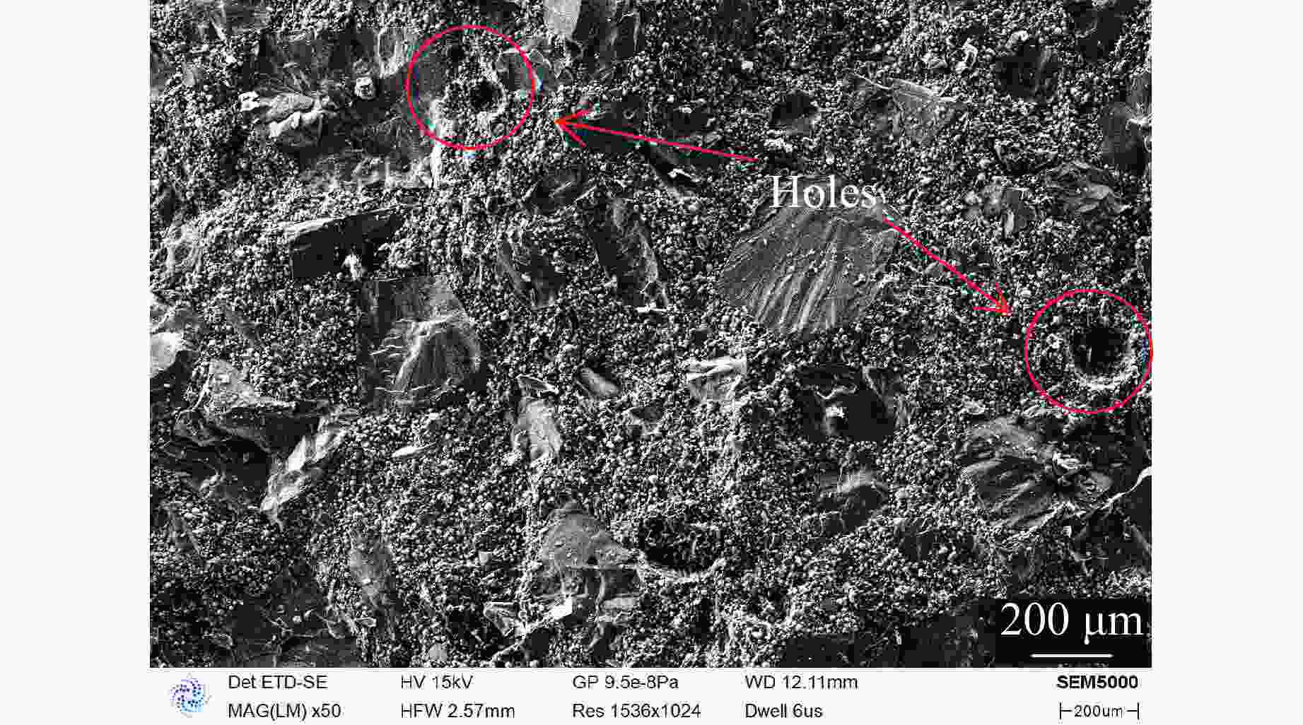 摘要: 为研究某2,4-二硝基苯甲醚(2,4-dinitroanisole,DNAN)基熔铸炸药的动态力学行为和点火特性,基于万能材料试验机和分离式霍普金森压杆(split Hopkinson pressure bar,SHPB)分别开展准静态/动态压缩试验和被动围压试验,并开展落锤冲击点火试验,结合扫描电镜和工业计算机断层扫描观察加载前、后试样的形貌特征,获得了不同加载条件下DNAN基熔铸炸药的应力-应变曲线、点火阈值和损伤特征,揭示了炸药在不同条件下的动态力学行为、点火特性和损伤机制。结果表明:DNAN基熔铸炸药的动态力学行为具有应变率相关性,相较于典型压装炸药,脆性特征更明显,在单轴压缩状态下强度更低,多轴压缩状态下峰值应力接近;孔洞为该炸药的主要初始损伤形式,压缩加载下孔洞被填充压实,主要损伤机制为穿晶断裂、界面脱粘,压剪耦合加载下装药内发生剪切流动,颗粒重新排布,随着加载强度的增大,主要损伤机制由沿晶断裂转向穿晶断裂;落锤冲击点火试验中DNAN基熔铸炸药对压缩加载更敏感,压缩和压剪加载下的最大未反应落高和峰值应力分别为500 mm、556 MPa和600 mm、622 MPa,主要点火机制可能是由孔洞损伤受压缩引起的气泡绝热压缩或孔洞冲击塌缩生热。Abstract: In order to study the dynamic mechanical behavior and ignition characteristics of a DNAN-based melt-cast explosive, quasi-static and dynamic compression tests, as well as passive confining pressure tests were carried out using a universal material testing machine and a split Hopkinson pressure bar (SHPB). Impact ignition test was carried out using a drop hammer. Scanning electron microscope (SEM) and industrial computed tomography (CT) were used to examine the morphology changes in the samples before and after loading. The stress-strain curves, ignition thresholds and damage characteristics of DNAN-based melt-cast explosive under different loading conditions were obtained. The dynamic mechanical behavior, ignition characteristics and damage mechanism of the explosive under different loading conditions were obtained. The results show that the dynamic mechanical behavior of the DNAN-based melt-cast explosive exhibits a strain-rate dependence, demonstrating more pronounced brittleness compared to typical press-loaded explosives, lower strength under uniaxial compression, and peak stresses comparable to those observed in multi-axial compression. The holes are the main initial damage form of the explosive. The holes are filled and compacted under compressive loading. The main damage mechanisms are transgranular fracture and interfacial debonding. Under coupled compress-shear loading, shear flow occurs in the charge and the particles are rearranged. With the increase of loading strength, the main damage mechanism changes from intergranular fracture to transgranular fracture. In the drop-weight impact ignition test, DNAN-based melt-cast explosives are more sensitive to compression loading. The maximum unreacted drop heights and peak stresses under compress and compress-shear loading are 500 mm, 556 MPa and 600 mm, 622 MPa, respectively. The primary ignition mechanism is likely attributable to either the adiabatic compression of bubbles or the thermal energy generated by the impact collapse of voids resulting from compressive damage.