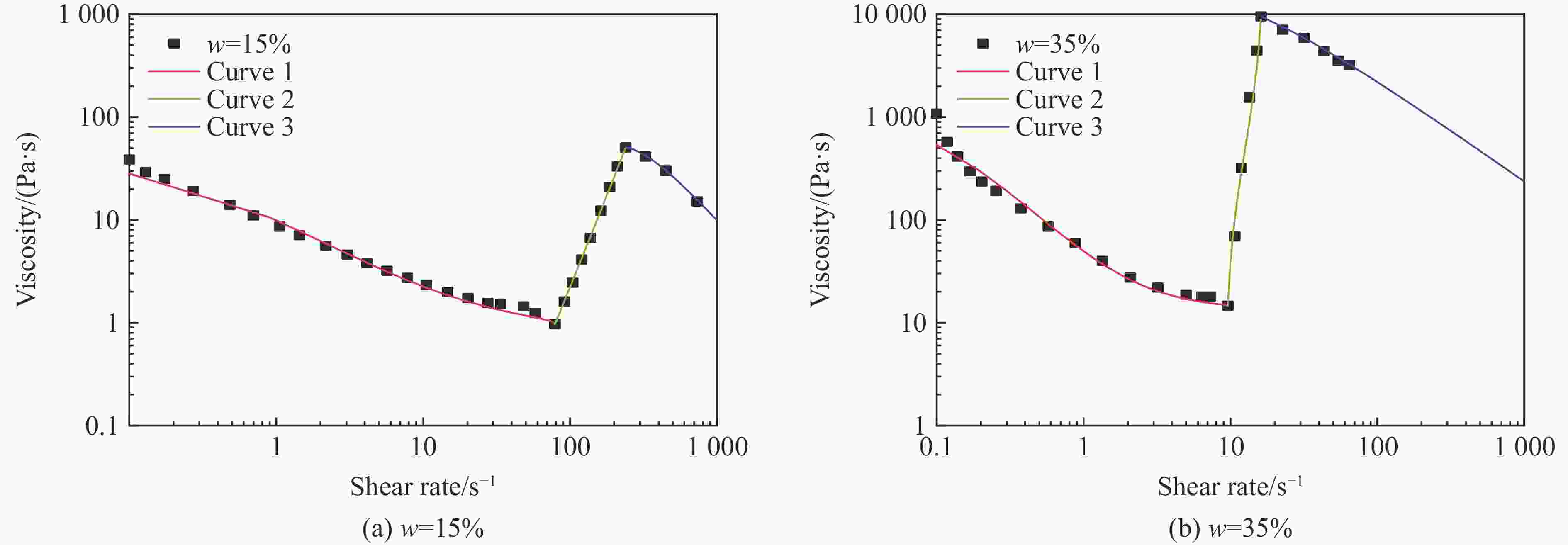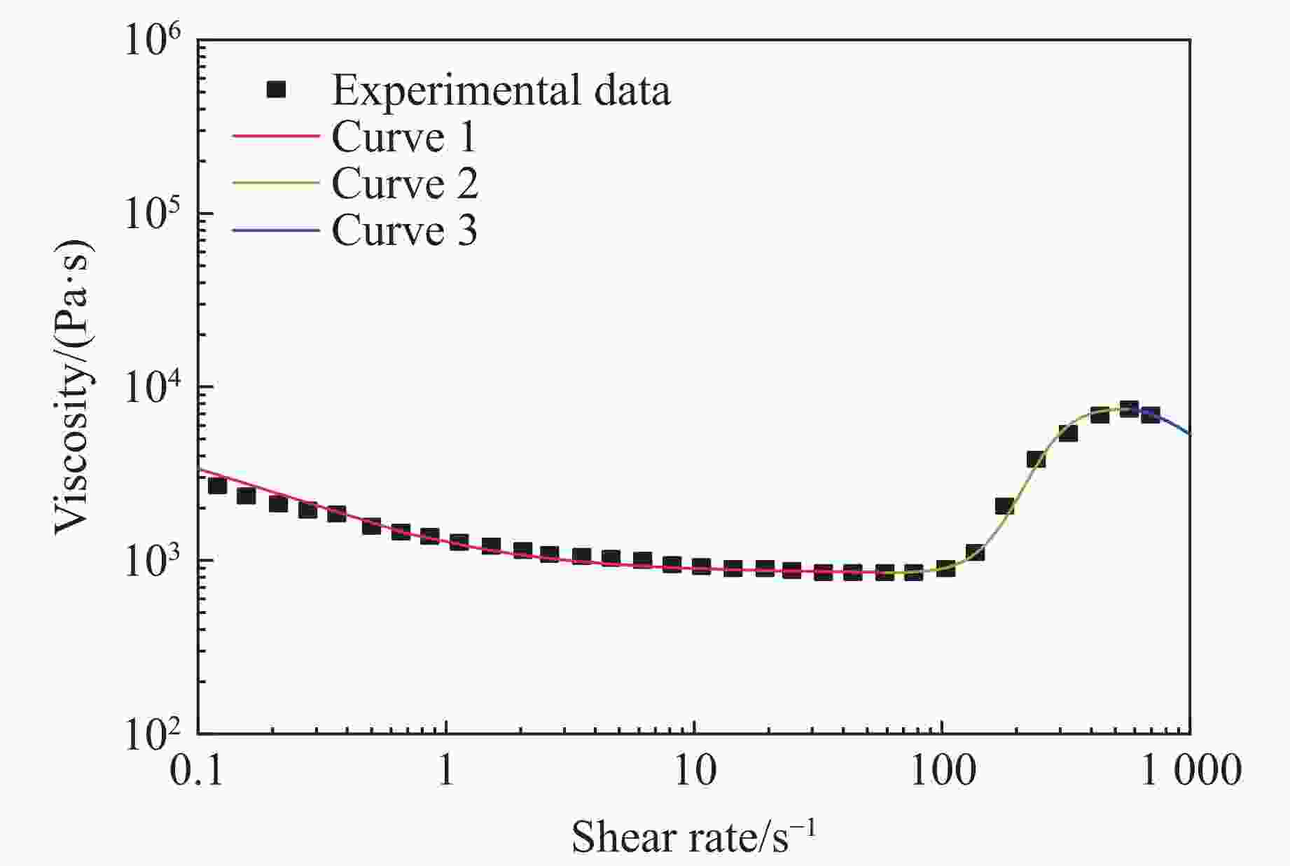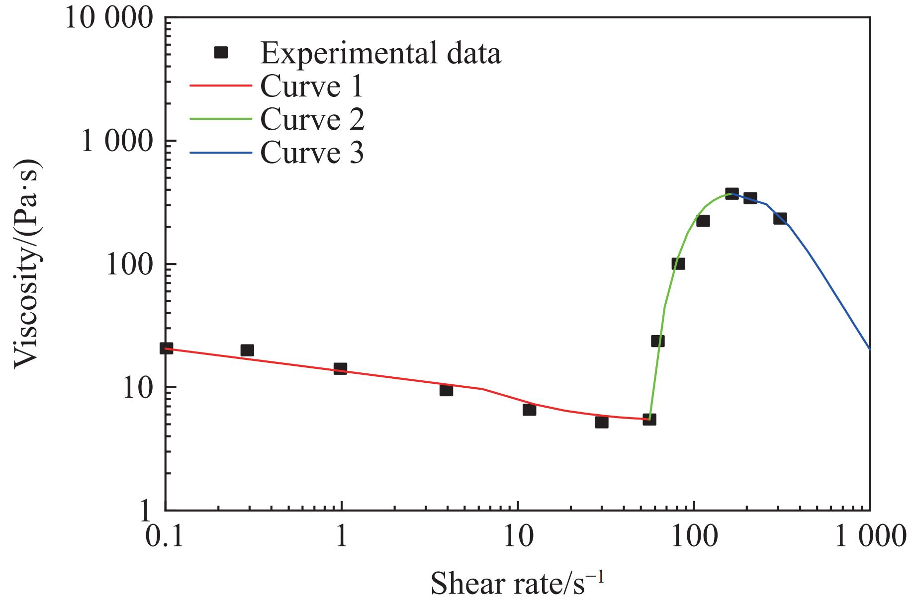 ${\eta _0}/({\rm{Pa}} \cdot {\rm{s}})$ ${\eta _{\rm{c}}}/({\rm{Pa}} \cdot{\rm{ s}})$ ${\eta _{\rm{max}}}/({\rm{Pa}} \cdot{\rm{ s}})$ ${\dot \gamma _{\rm{c}}}$/s−1 ${\dot \gamma _{\rm{max}}}$/s−1 KⅠ KⅡ KⅢ nⅠ nⅡ nⅢ 2845 852 7449 58.808 570.207 − 20000 −0.006 0.0012 0.47 1.7 1.4 -