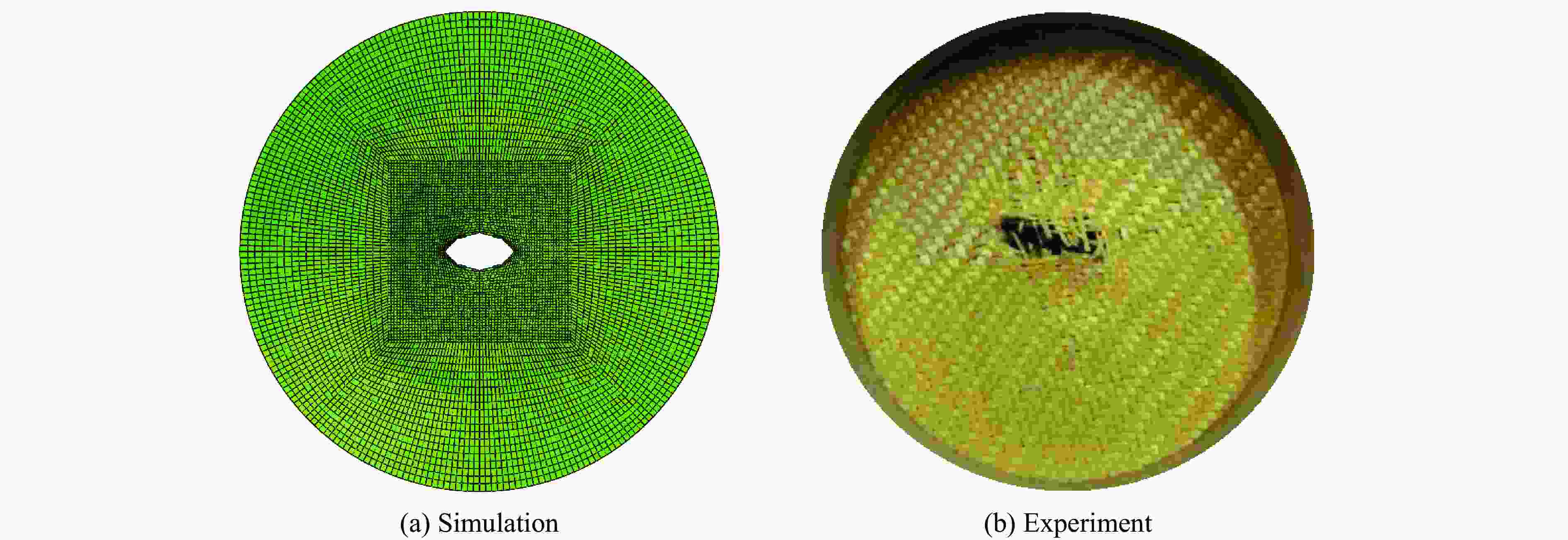 摘要: 剪切增稠液(shear thickening fluid, STF)浸渍凯夫拉(Kevlar)织物是一种新型复合材料,相比纯Kevlar织物,具有更好的抗冲击性能,研究其动态本构模型具有重要的理论意义和应用价值。首先,通过引入动态增强因子(应变率效应)和残余强度因子,结合STF的流变特性和纱线拔出实验结果,发展了STF浸渍Kevlar织物的连续介质损伤力学本构模型;然后,利用提出的本构模型,开展了不同冲击速度下STF浸渍Kevlar织物侵彻的数值模拟;最后,将模拟结果与文献中的相关实验结果进行对比分析。结果表明:所建立的本构模型能够预测STF浸渍Kevlar织物在冲击载荷作用下的力学响应和破坏形貌,并且能够描述STF浸渍后Kevlar织物抗冲击性能的增强效应。
