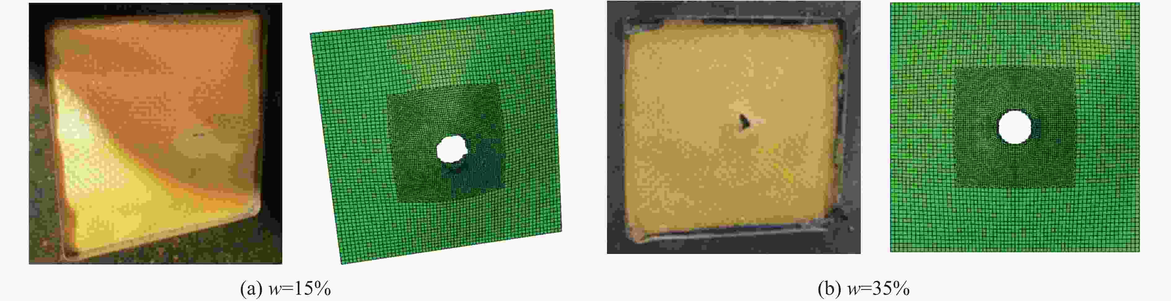 w/% ${\eta _0}/({\rm{Pa}} \cdot{\rm{ s}})$ ${\eta _{\rm{c}}}/({\rm{Pa}} \cdot{\rm{ s}})$ ${\eta _{\rm{max}}}/({\rm{Pa}} \cdot{\rm{ s}})$ ${\dot \gamma _{\rm{c}}}$/s−1 ${\dot \gamma _{\rm{max}}}$/s−1 KⅠ KⅡ KⅢ nⅠ nⅡ nⅢ 15 38.775 0.972 50.624 78.952 238.946 −1 000 −0.001 7 0.003 6 0.46 1.0 1.4 35 1 078.201 14.663 9 540.340 9.603 16.151 −1 000 −0.006 5 0.040 0 0.71 1.1 1.0 表 4 弹道冲击实验中数值模拟的材料参数[26]