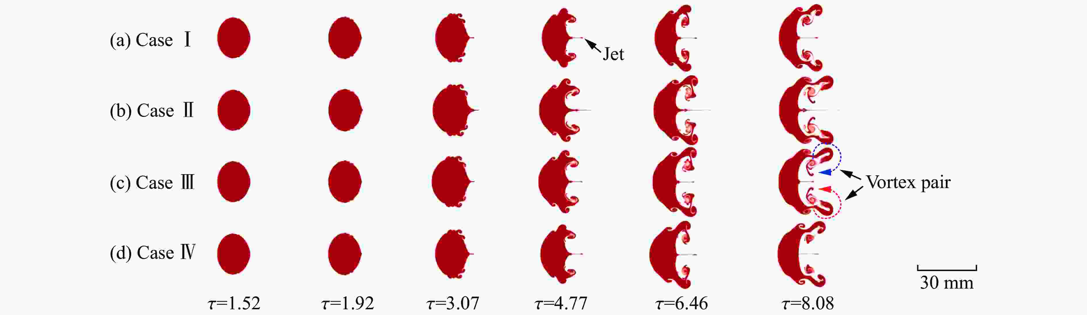 Case Gas combinations of downstream planar heavy-light interfaces Ms L/mm Ⅰ Air-He 1.22 ∞ Ⅱ Air-He 1.22 0.6D0 Ⅲ Air-He 1.22 0.7D0 Ⅳ Air-He 1.22 2.0D0 -