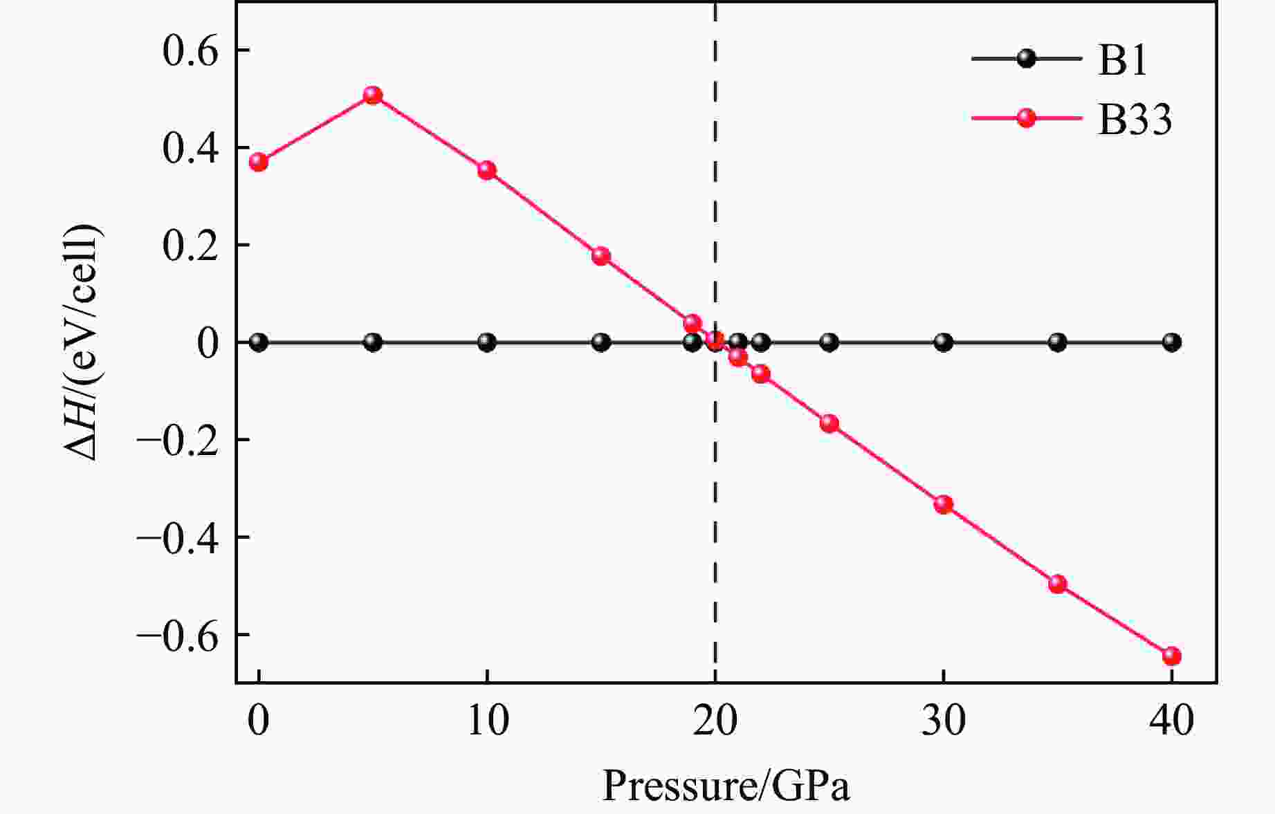 图  高压下NaI的B1相与B33相的焓差