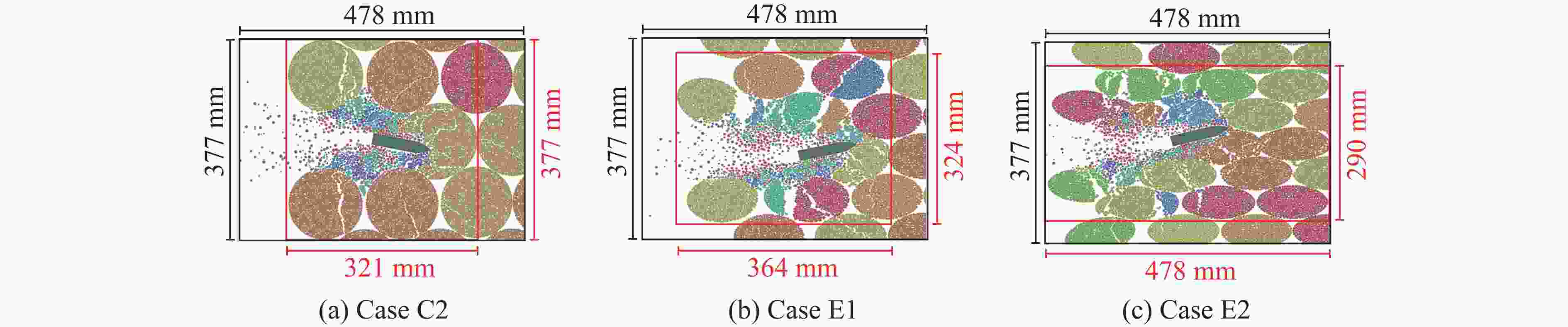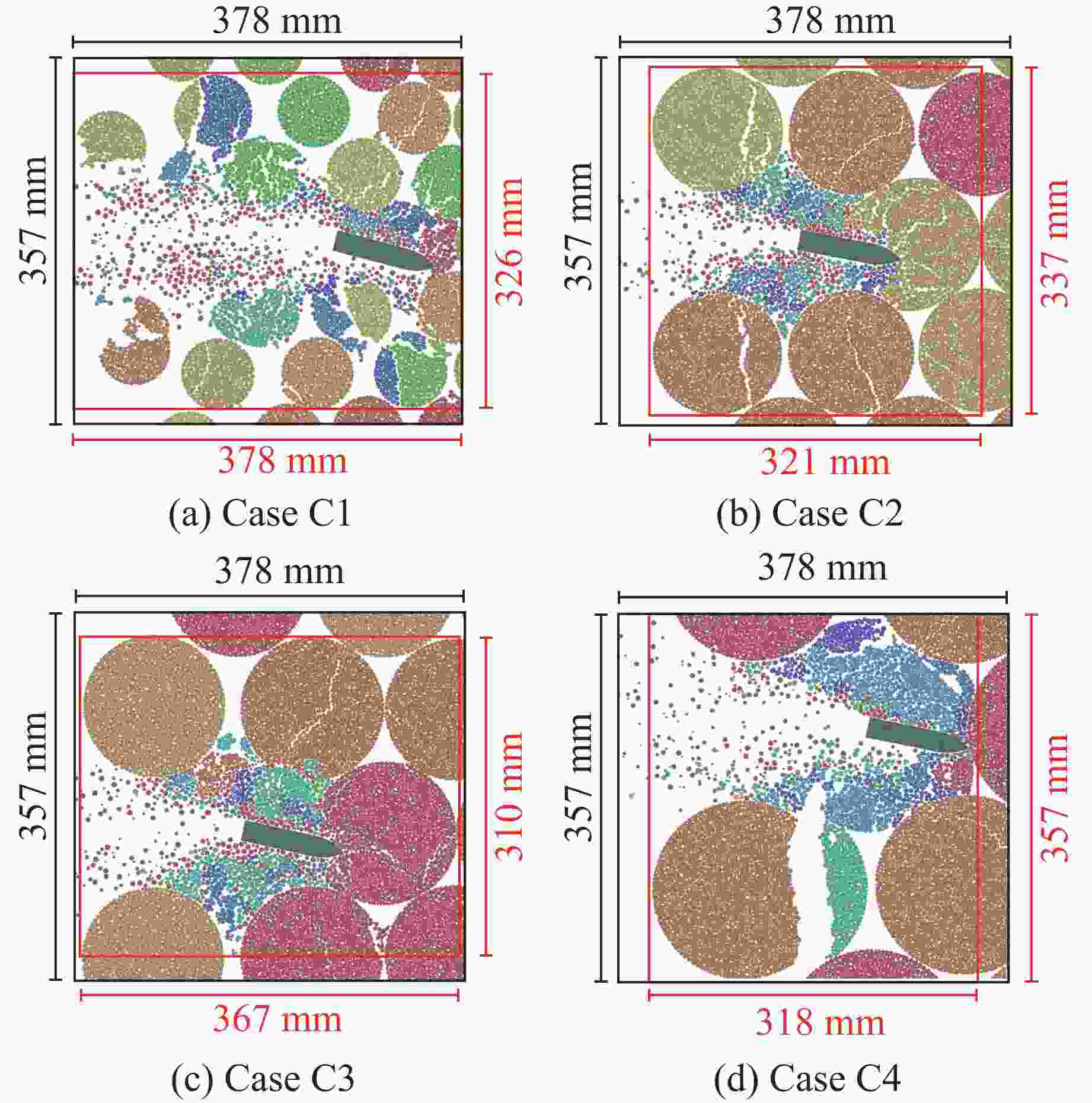 • 摘要: 遮弹层作为现代军事防御体系的关键组成部分,可为后方重要目标提供防护。块石作为遮弹层的常用堆筑材料,其遮弹机理及性能优化研究具有重要意义。采用离散元球体单元和黏结破碎模型,模拟了块石在弹体冲击载荷下的破碎现象,并对刚性弹正侵彻密实堆积的块石结构进行了数值模拟,探讨了块石粒径、形状及空间排布特性对其抗侵彻性能的影响。结果表明:在侵彻过程中,块石通过碰撞和滑移耗散了90%以上的弹体动能;块石破碎数量与块石粒径呈负相关,与块石长短轴比呈正相关;采用单粒径块石多层位错排布时,弹体侵彻深度主要取决于侵彻阻力峰值,粒径为120 mm的圆形块石工况的侵彻阻力最大且侵彻深度最小;采用块石粒径沿迎弹面方向梯度递减的分层排布时,不能有效提高结构体的遮弹效果。研究结果可为理解块石遮弹机理提供参考。
