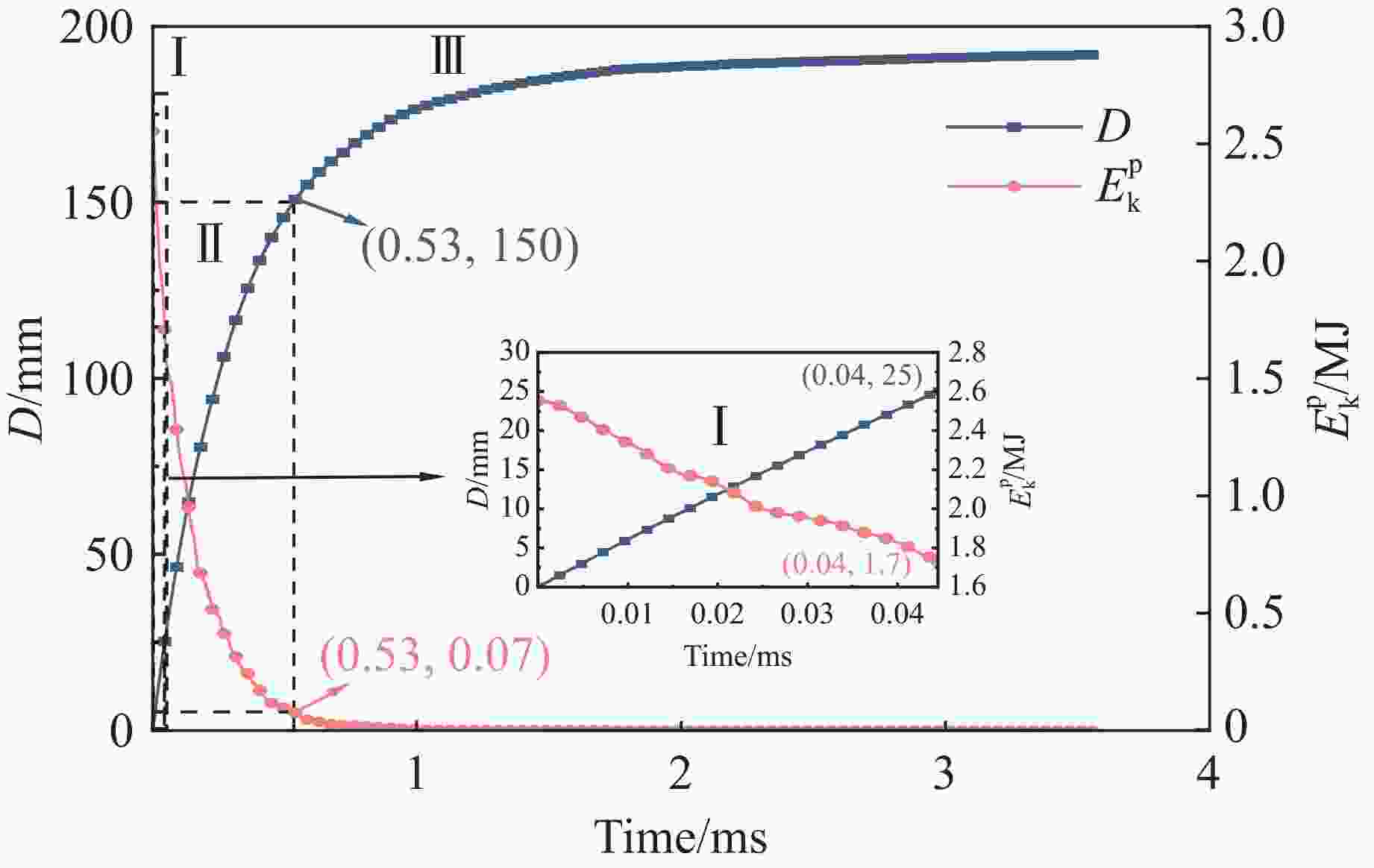 图  工况C1的侵彻深度和弹体动能时程曲线