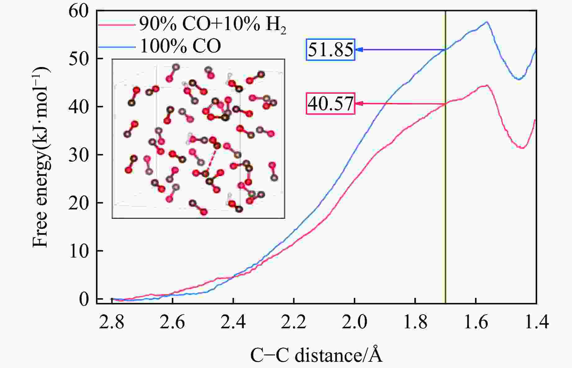 摘要: 一氧化碳(CO)是典型的低原子序数(Z)体系,能够在高压下通过聚合反应形成聚一氧化碳(p-CO),其高压聚合机理与结构对于理解压力诱导成键机制和探索新型功能材料具有重要价值,但是相关研究受到CO聚合压力偏高和产物p-CO在常压下具有亚稳态特性两方面阻碍。目前,人们发现氢气(H2)掺杂有助于CO聚合,但是对相应的聚合机理和产物结构缺乏认知,为此,利用分子动力学方法研究了H2掺杂对CO高压聚合机理的影响规律。结果表明,摩尔分数为10%的H2掺杂具有降低CO聚合压力的最优效果。当压力为3~4 GPa时,H2通过物理作用促进了CO的二聚化;当压力提高到5 GPa时,H2由于化学惰性阻碍了体系的进一步聚合;当压力提高到10 GPa时,H2能够参与聚合反应,产生C―H键和O―H键。最终,聚合反应会形成一个无序、以C―C键和C=O键为主的三维网状结构p-CO/H。Abstract: Carbon monoxide (CO), as a prototypical low-Z molecular system, can polymerize under high pressure to form polymeric carbon monoxide (p-CO). The polymerization mechanisms and structures are of fundamental importance for understanding pressure-induced bonding and exploring novel functional materials. However, progress in this field has been hindered by two major challenges: the high-pressure requirements for CO and the metastable property of p-CO at ambient pressure. Recent studies have shown that hydrogen (H2) doping can facilitate the polymerization of CO, but the polymerization mechanisms and structures are still poorly understood. In this work, molecular dynamics simulations were performed to investigate the influence of H2 on the polymerization progress of CO. The results reveal that a doping ratio of 10% can optimally reduce the polymerization pressure of CO. At 3–4 GPa, H2 physically induces the dimerization reaction of CO. At 5 GPa, the chemical inertness of H2 inhibits further polymerization of CO. When the pressure reaches 10 GPa, H2 participates in the polymerization reaction, forming C―H and O―H bonds. Finally, the polymerization produces a disordered three-dimensional network structure (p-CO/H) dominated by C―C and C=O bonds.