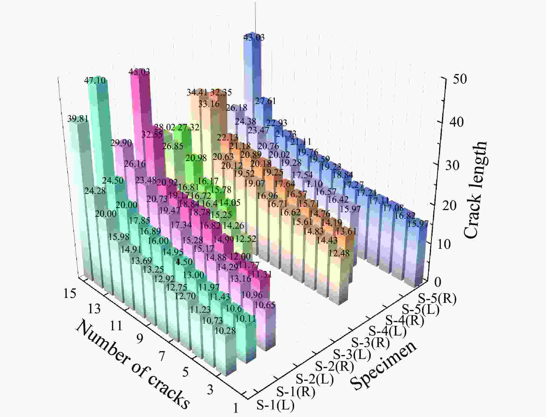 Figure  5.  Statistical results length of each crack in the specimen