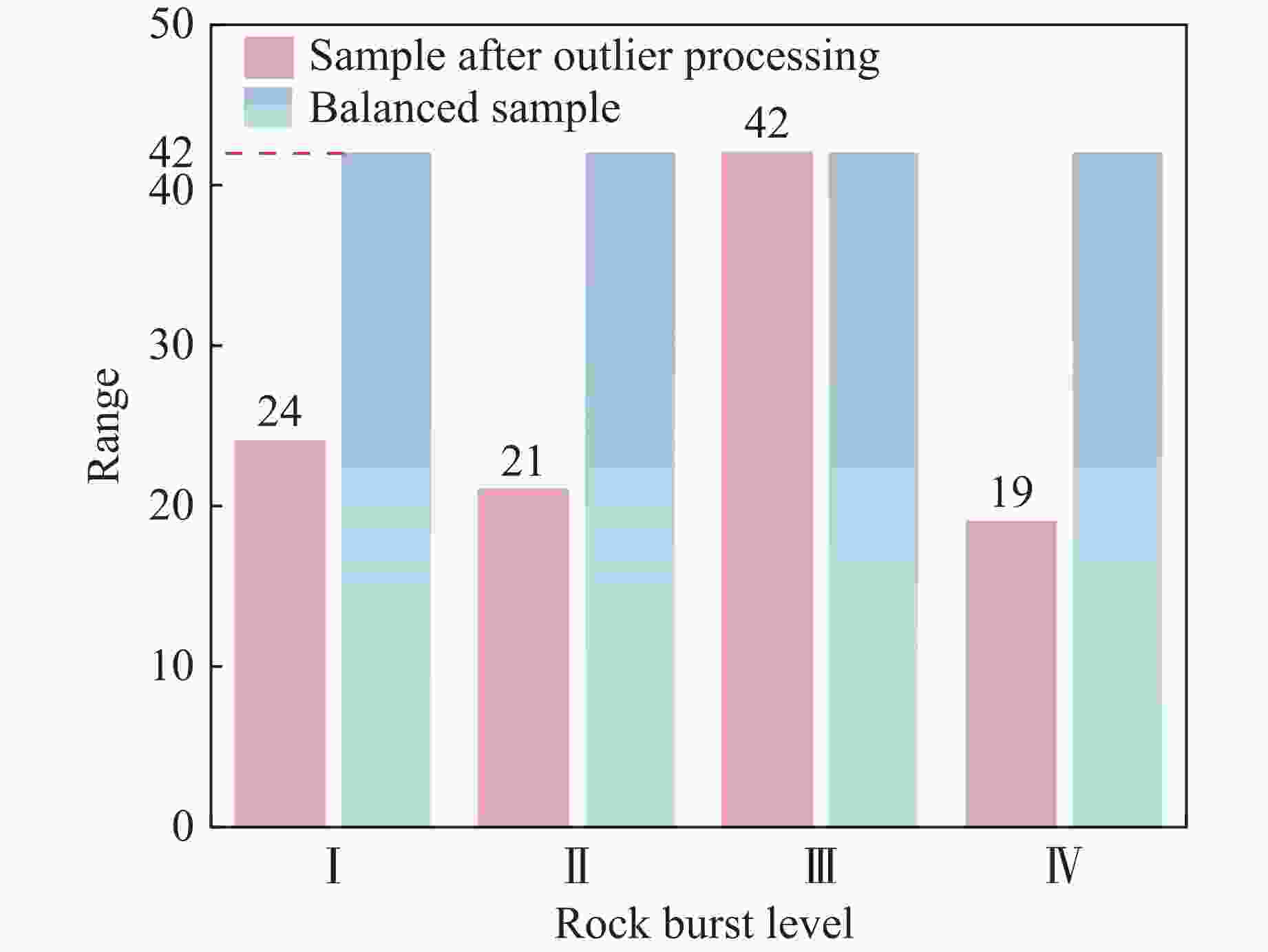 Rock burst level Actual quantity Predicted quantity WOA-XGBoost DBO-XGBoost SSA-XGBoost RF BPNN SVM Ⅰ 8 7 7 6 6 6 5 Ⅱ 8 7 7 7 7 6 7 Ⅲ 8 8 6 7 6 7 7 Ⅳ 8 8 8 7 7 6 6 Total 32 30 28 27 26 25 25 表 9 原始及特征提取后岩爆工程实例样本