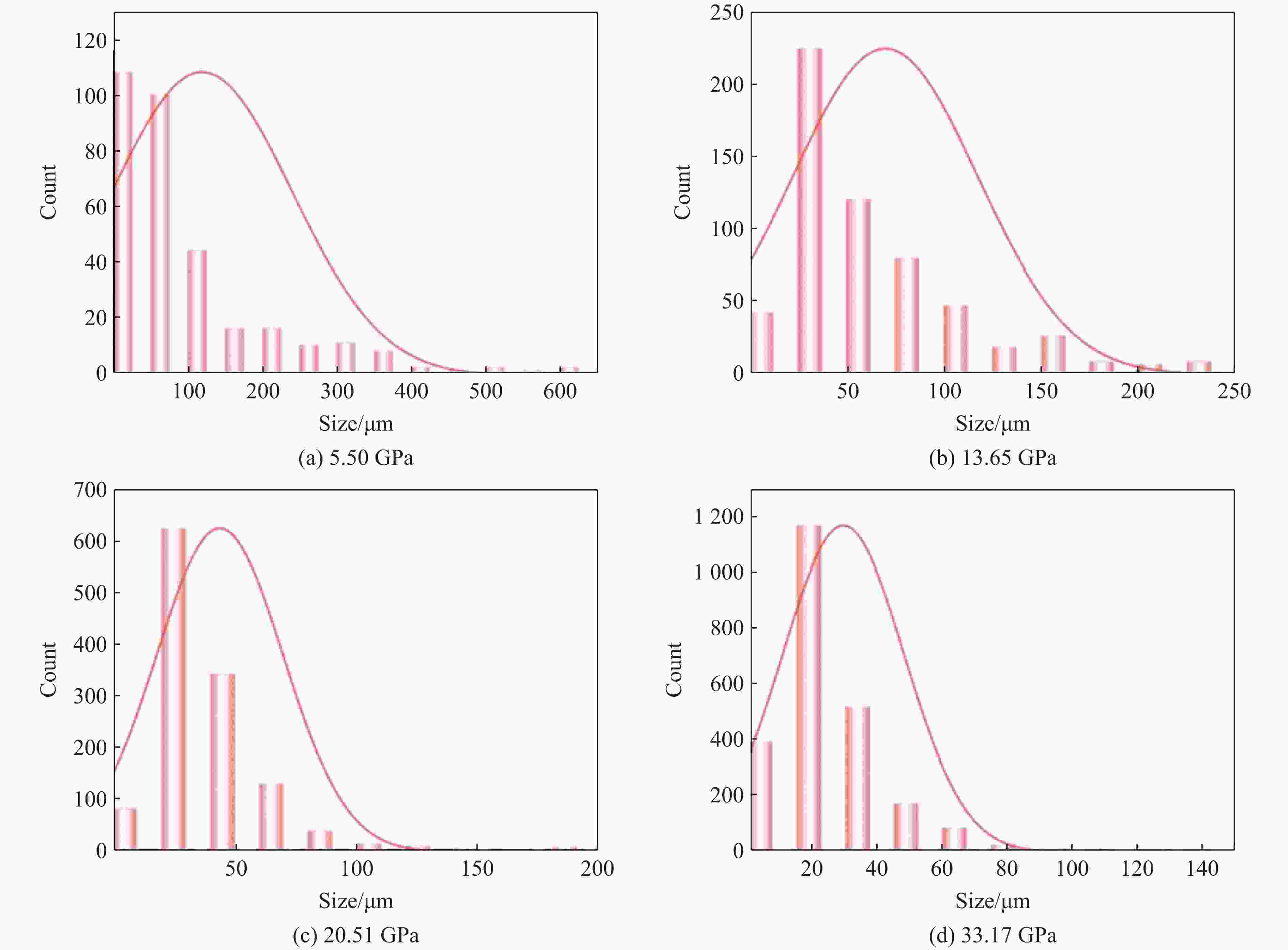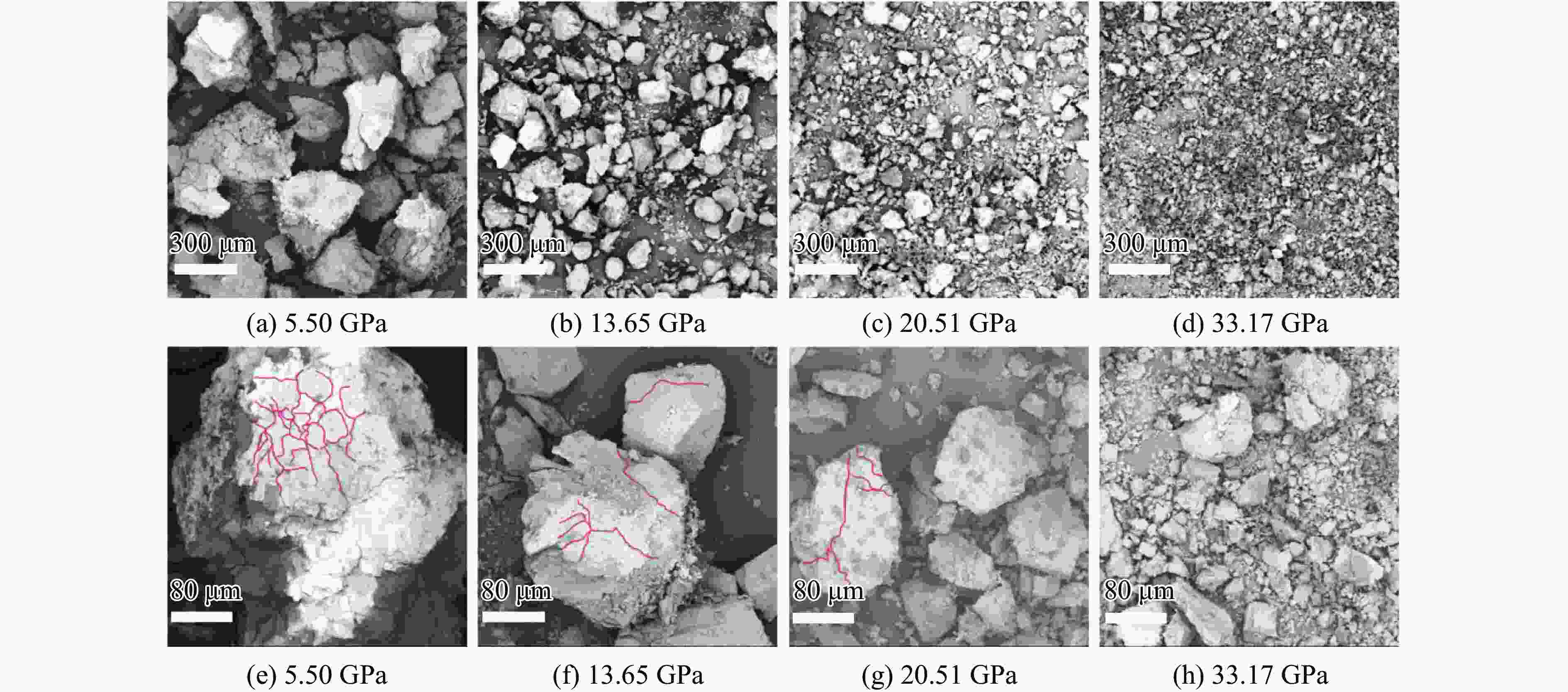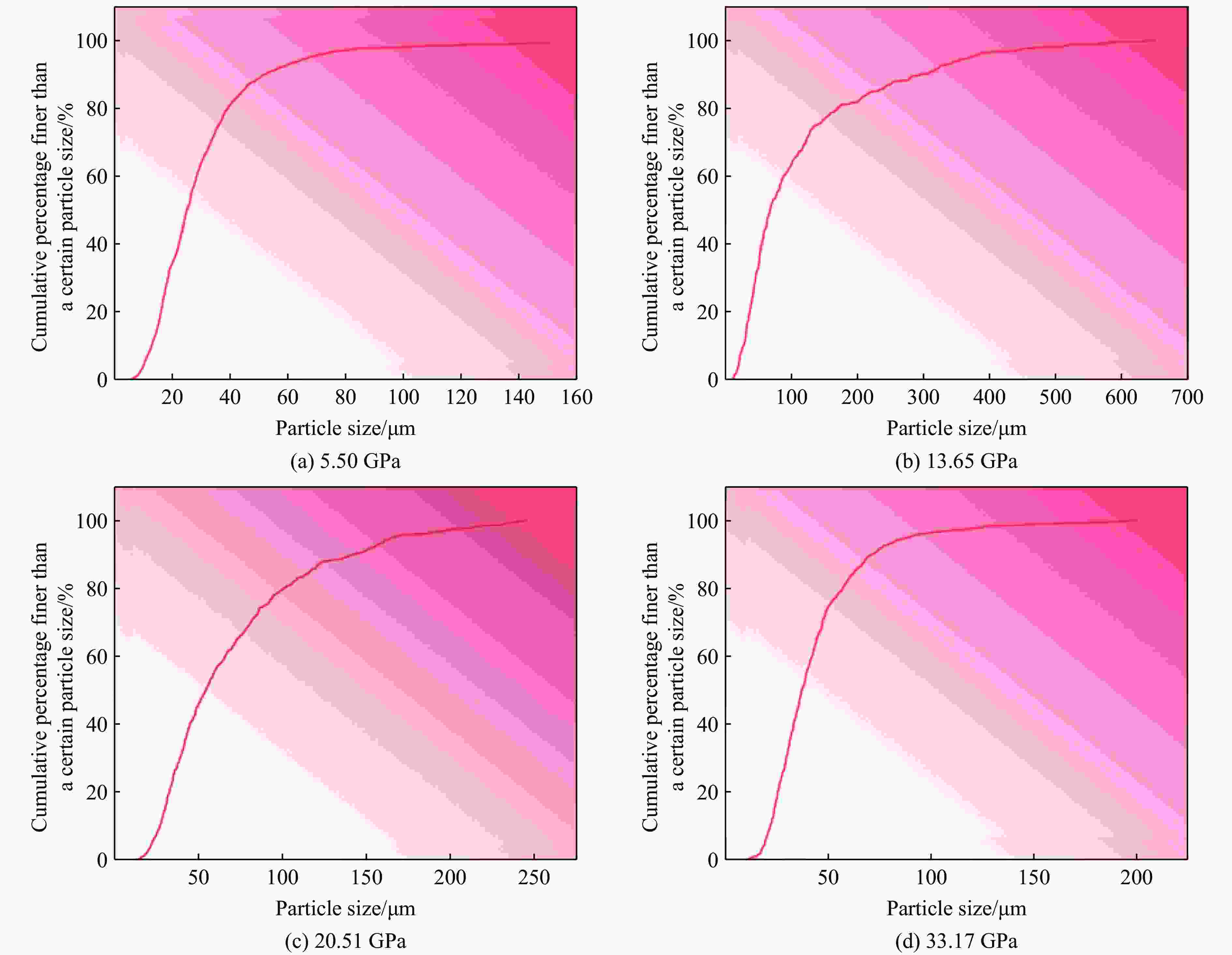表  3  不同冲击压力下花岗岩破碎回收试验颗粒粒径分布