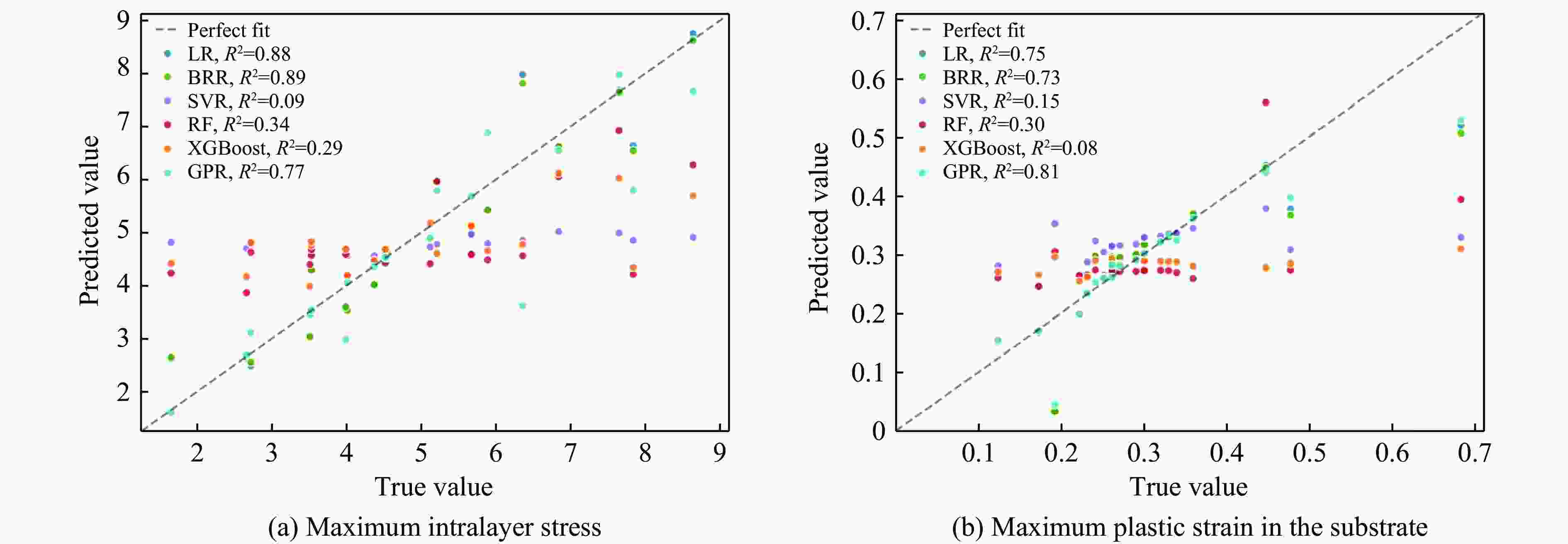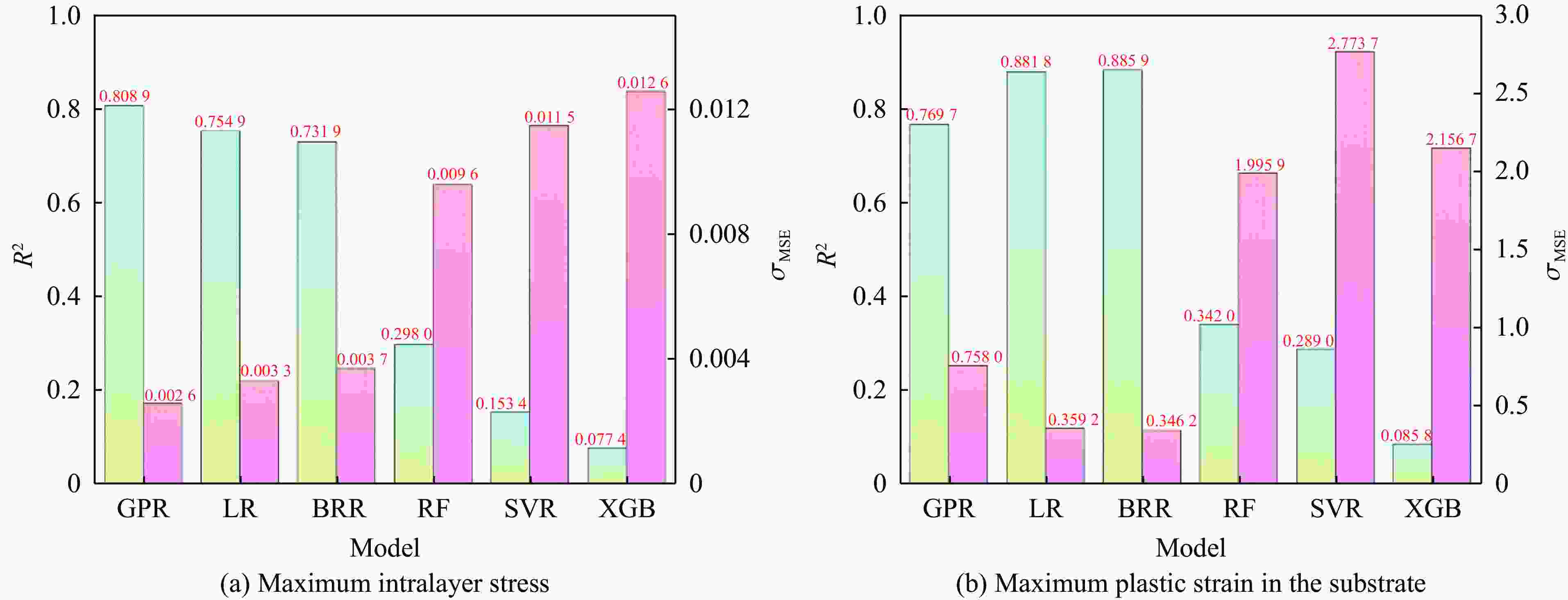 Table 5. Comparison between the predicted and actual values of the maximum intralayer stress and the maximum plastic strain in the substrate for eight coating groups