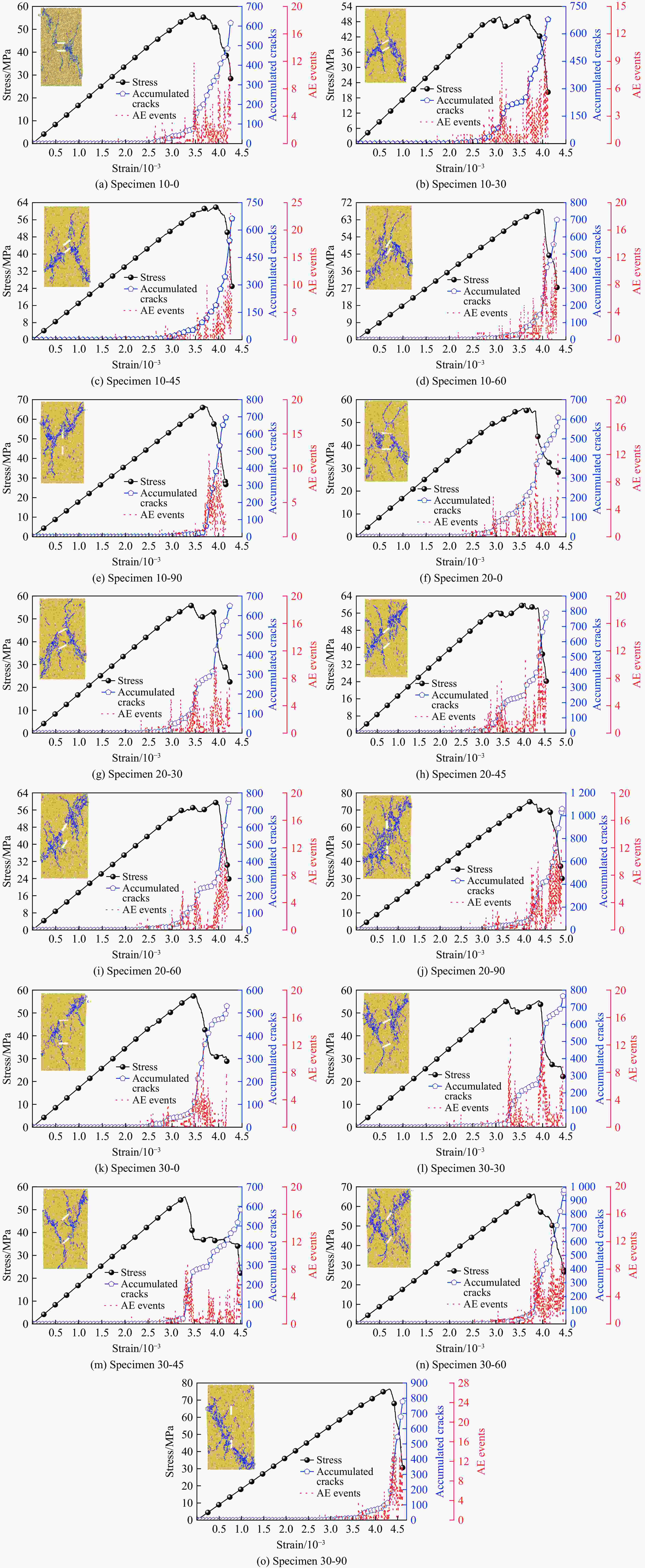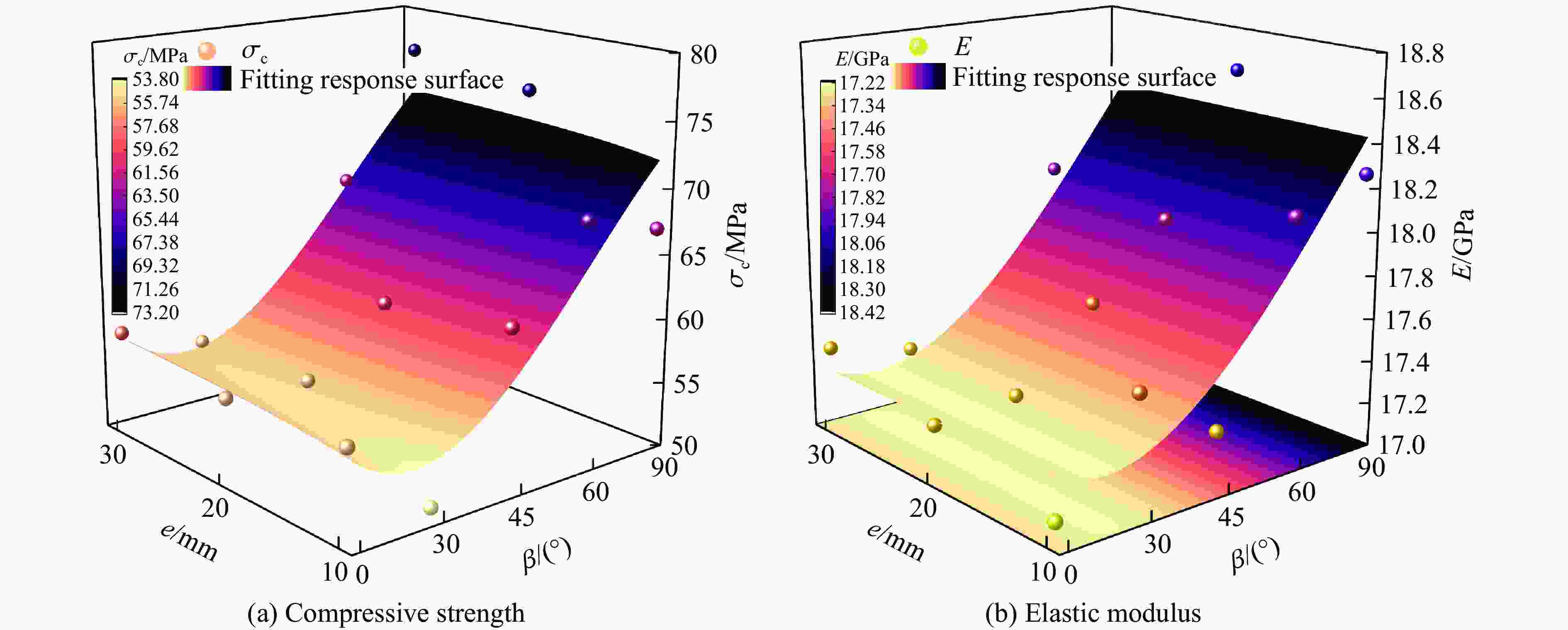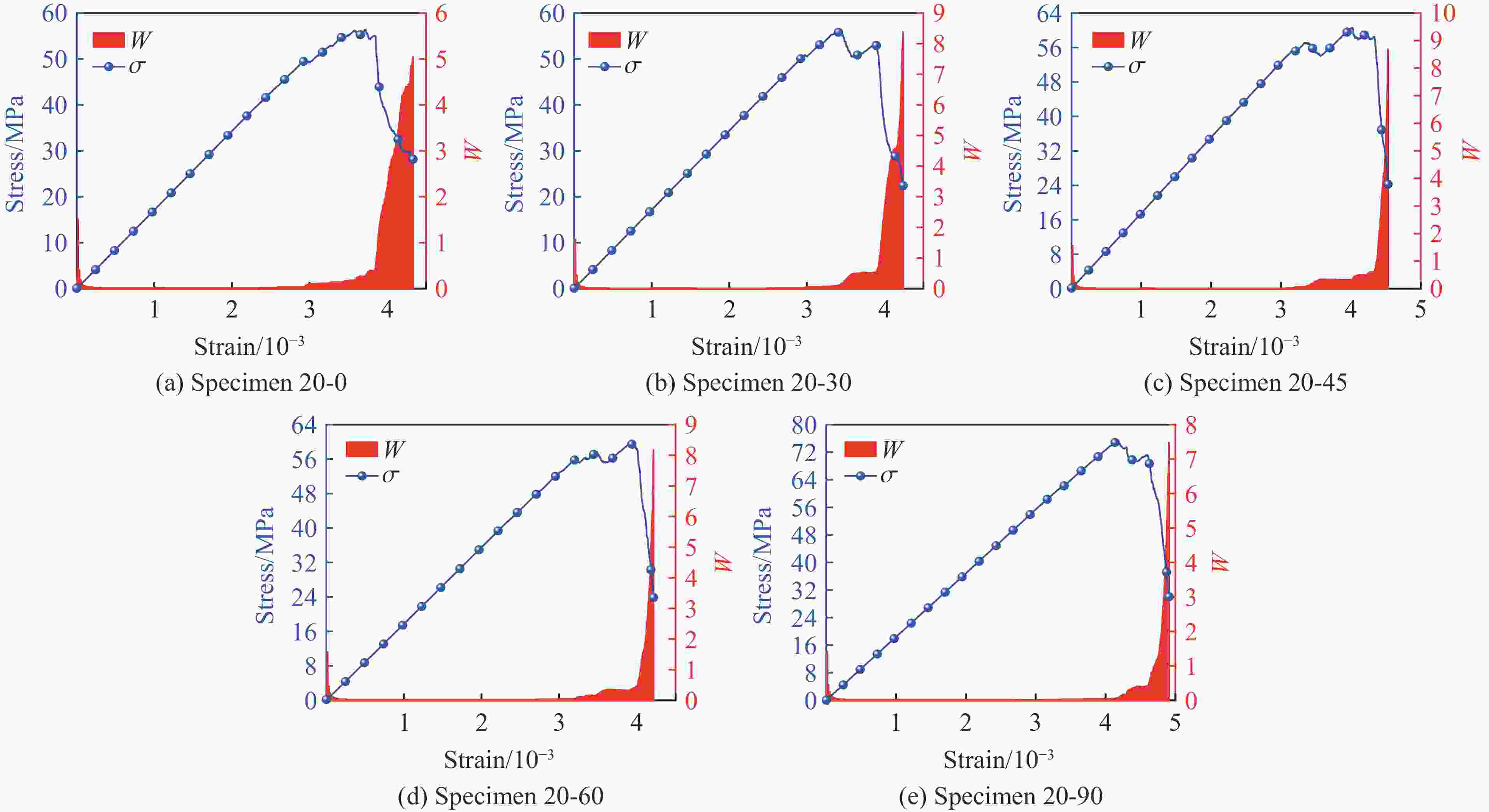 Specimen No. β/(°) σc/MPa E/GPa Specimen No. β/(°) σc/MPa E/GPa 10-0 0 56.9959 17.10 20-60 60 59.6775 17.95 10-30 30 50.6317 17.54 20-90 90 75.0862 18.60 10-45 45 62.1072 17.26 30-0 0 57.7452 17.39 10-60 60 68.5561 18.13 30-30 30 55.4792 17.29 10-90 90 66.7174 18.25 30-45 45 55.6131 17.06 20-0 0 56.3965 17.26 30-60 60 66.3709 18.04 20-30 30 56.0322 17.29 30-90 90 76.4695 18.31 20-45 45 60.5541 17.63 表 5 本构方程参数及拟合精度