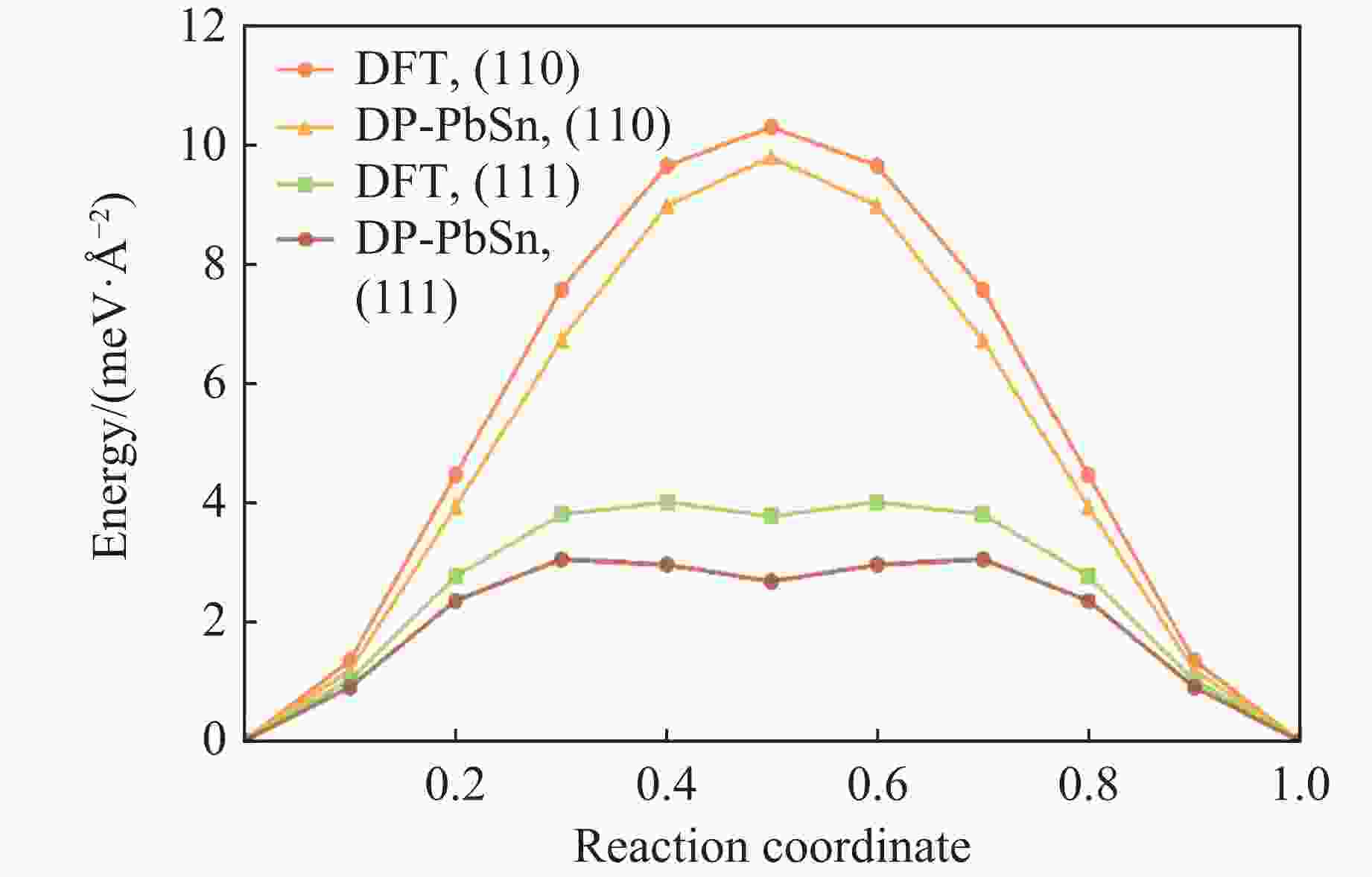 Figure  2.  Generalized stacking fault energy predicted by DP-PbSn along $ \langle 1\overline{1}0\rangle $ on various slip planes