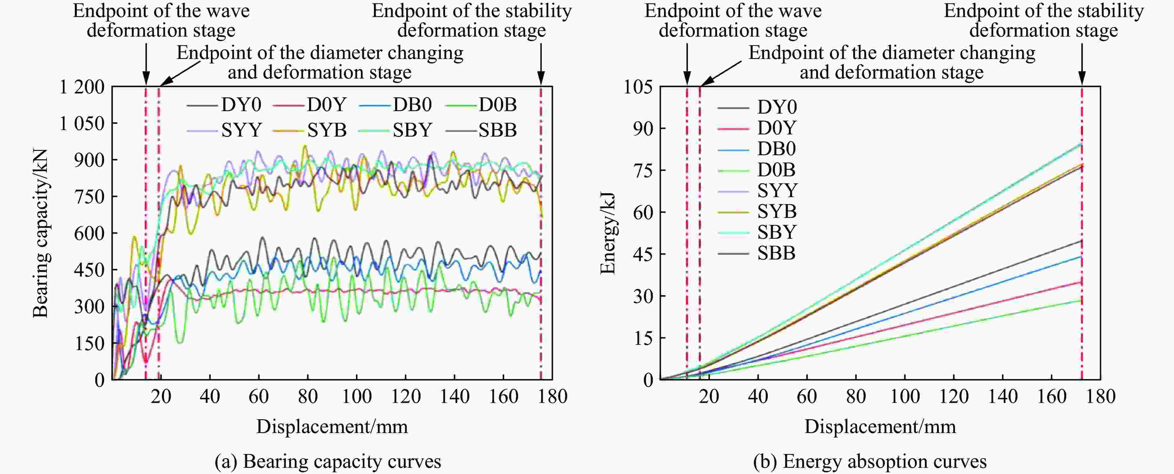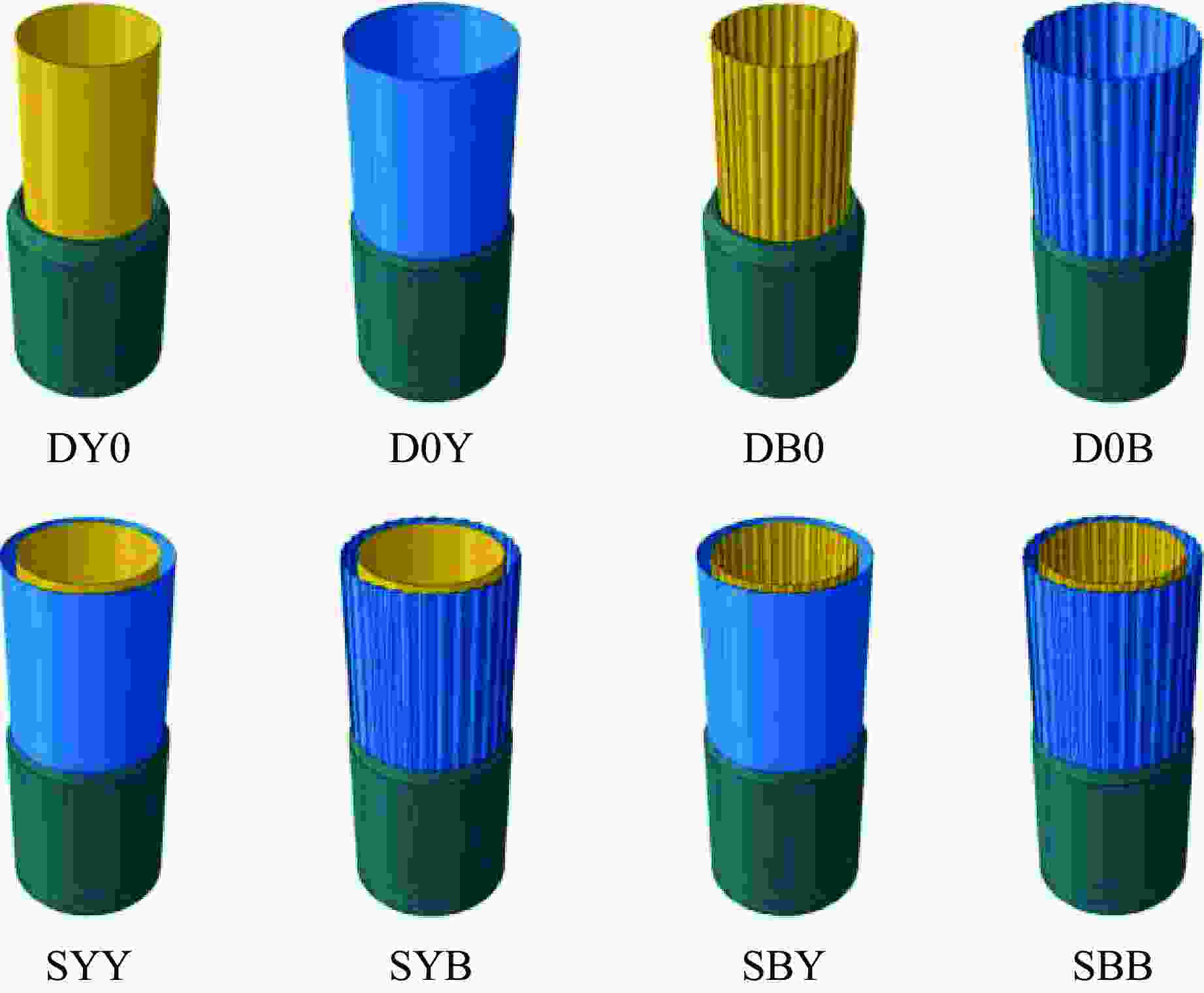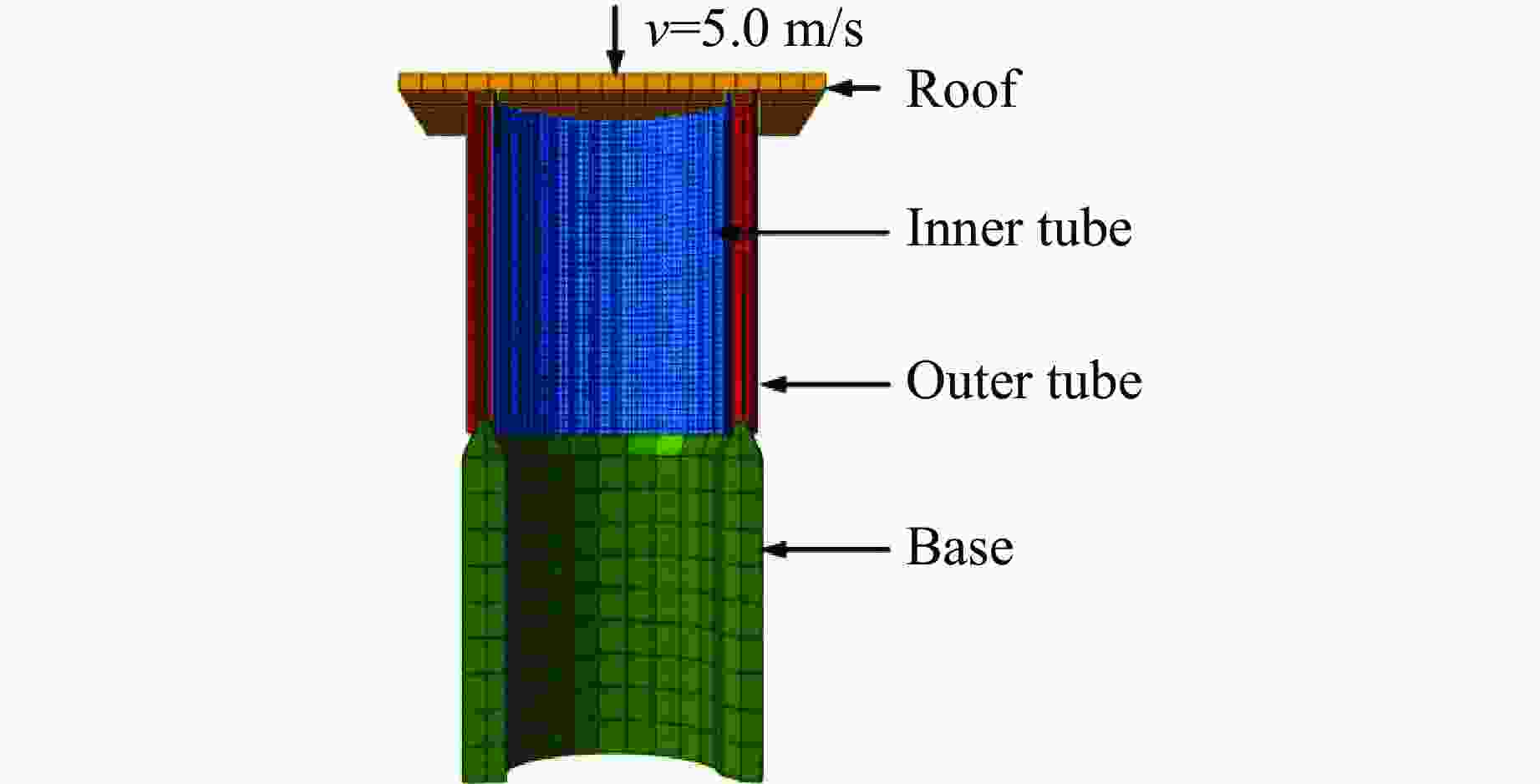 No. H/mm Di,t/mm Do,t/mm t/mm Rp/mm Np θb/(º) Lr/mm Di,b/mm Do,b/mm h/mm DY0 200 140 4 25 10 130 180 210 D0Y 200 170 4 25 10 130 180 210 DB0 200 140 4 6 32 25 10 130 180 210 D0B 200 170 4 6 32 25 10 130 180 210 SYY 200 140 170 4 25 10 130 180 210 SYB 200 140 170 4 6 32 25 10 130 180 210 SBY 200 140 170 4 6 32 25 10 130 180 210 SBB 200 140 170 4 6 32 25 10 130 180 210 ρ/(kg·m−3) E/GPa $\nu $ A0/MPa B0/MPa C n m $ \dot{{\varepsilon }}_{0}$/s−1 7 800 210 0.3 507 320 0.064 0.28 1.06 1 表 3 吸能构件结构参数设置