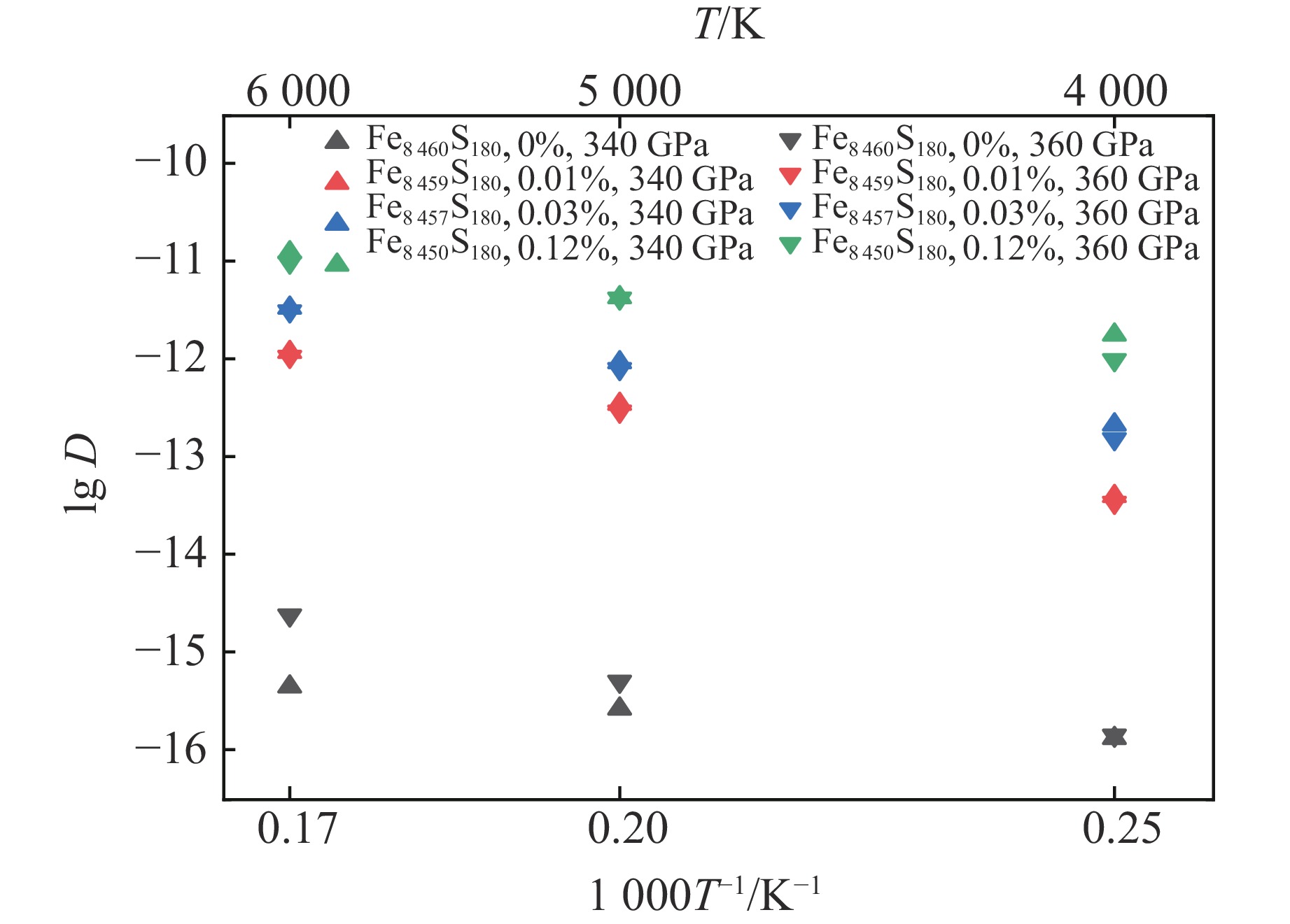 摘要: 地球内核的密度较纯铁低,表明其中存在轻元素。碳、氢、氧、硫、硅被认为是最可能存在于内核的轻元素。黏度是反映地球内核动力学和演化历史的关键物理量,对于地球内核波速各向异性的成因具有重要影响。前人已对内核条件下纯铁的六方密堆积(hexagonal close-packed, HCP)相和体心立方(body-centered cubic, BCC)相的黏度进行了模拟计算。然而,目前仍然缺乏针对地球内核中轻元素对地球内核黏度影响的系统性研究。为此,构建了内核条件下铁-硫合金的神经网络势函数,利用该方法实现了对铁-硫体系的大规模分子动力学模拟,研究了空位浓度低至0.01%时对该合金离子输运性质的影响。利用晶格中铁的自扩散系数研究了内核铁-硫合金的蠕变机制和黏度,将地球内核条件下铁-硫合金的黏度限定为1×1014~2×1016 Pa·s,与自由核章动以及地震波观测结果一致。Abstract: The density of the Earth’s inner core is lower than that of pure iron, indicating the presence of light elements. Among the candidate elements, carbon, hydrogen, oxygen, sulfur, and silicon are considered the most likely. Viscosity is a key physical property controlling the dynamics and evolutionary history of the inner core, and it has significant implications for the origin of seismic anisotropy. Previous studies have investigated the viscosity of pure iron in its hexagonal close-packed (HCP) and body-centered cubic (BCC) phases under inner-core conditions through computational simulations. However, the influence of light elements on the viscosity of the inner core remains insufficiently constrained. In this study, we constructed a neural network potential (NNP) for Fe-S alloy under inner-core conditions and employed it to perform large-scale molecular dynamics simulations. We systematically examined the impact of vacancy concentrations as low as 0.01% on the ionic transport properties of Fe-S alloy. Based on the self-diffusion coefficients of Fe in the lattice, we further explored the creep mechanisms and viscosity of Fe-S alloy under core conditions. Our results indicate that dislocation creep dominates the rheological behavior, yielding viscosities of 1×1014–2×1016 Pa·s, consistent with constraints from free-core nutation and seismic observations.
