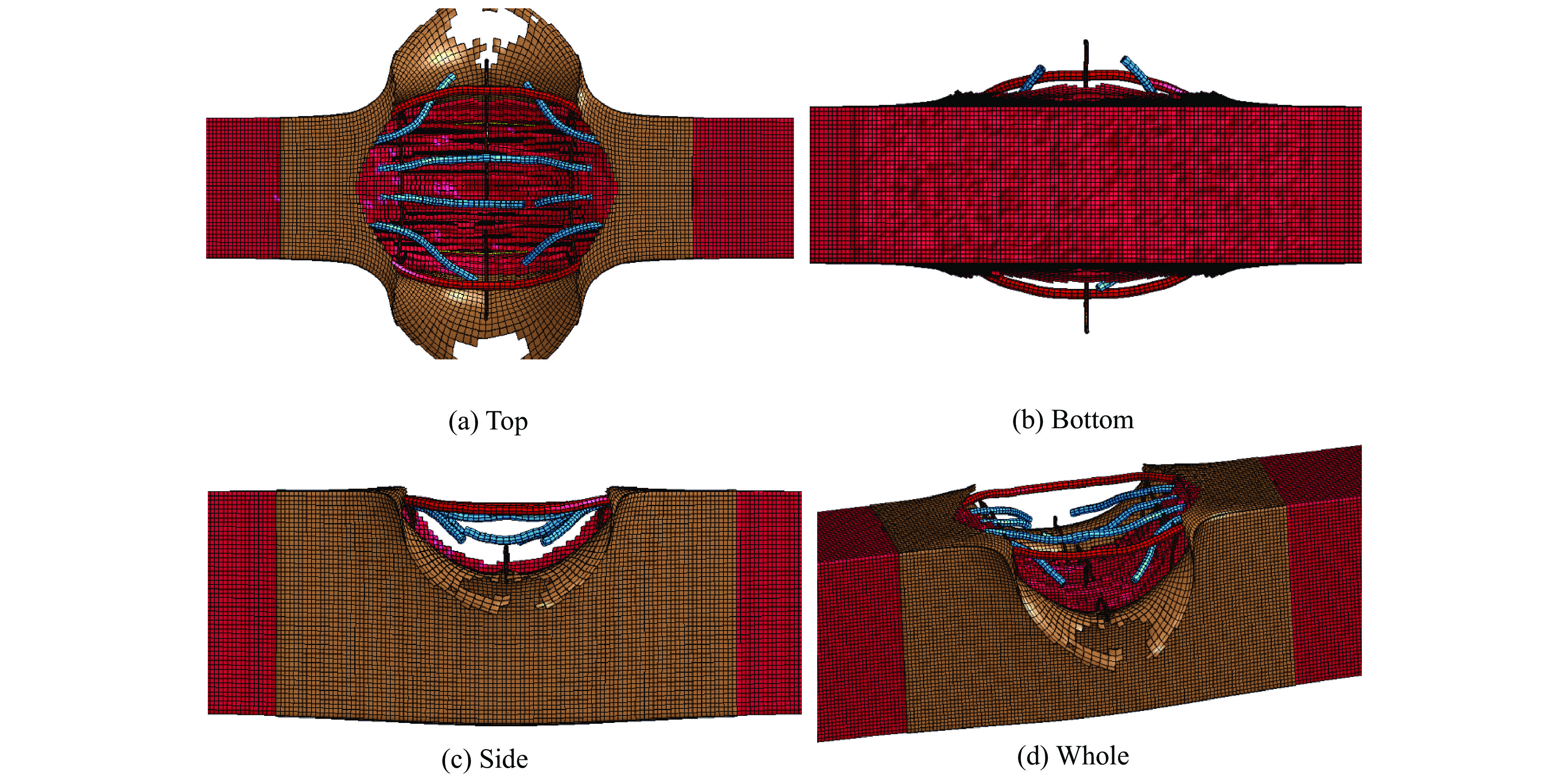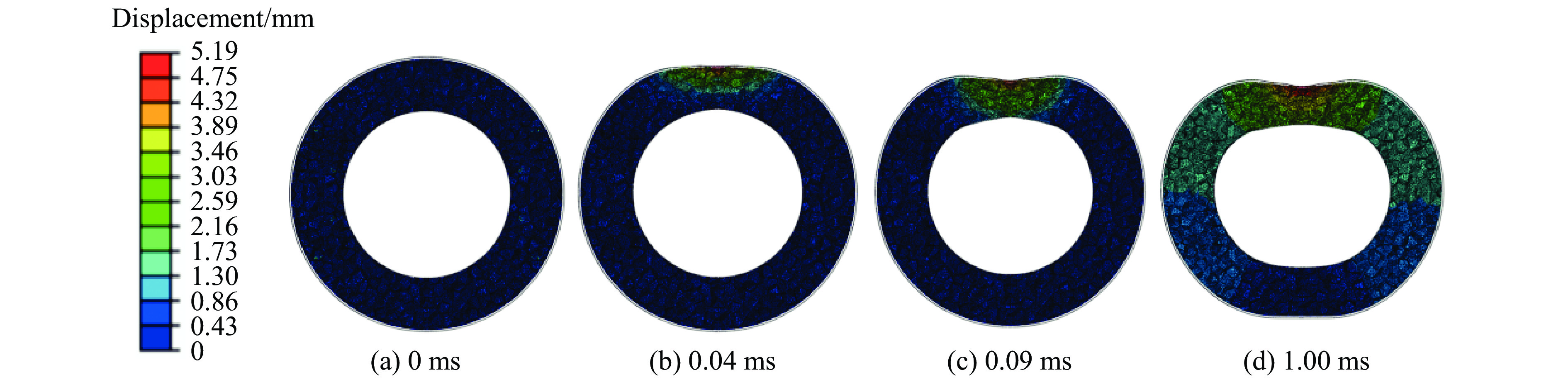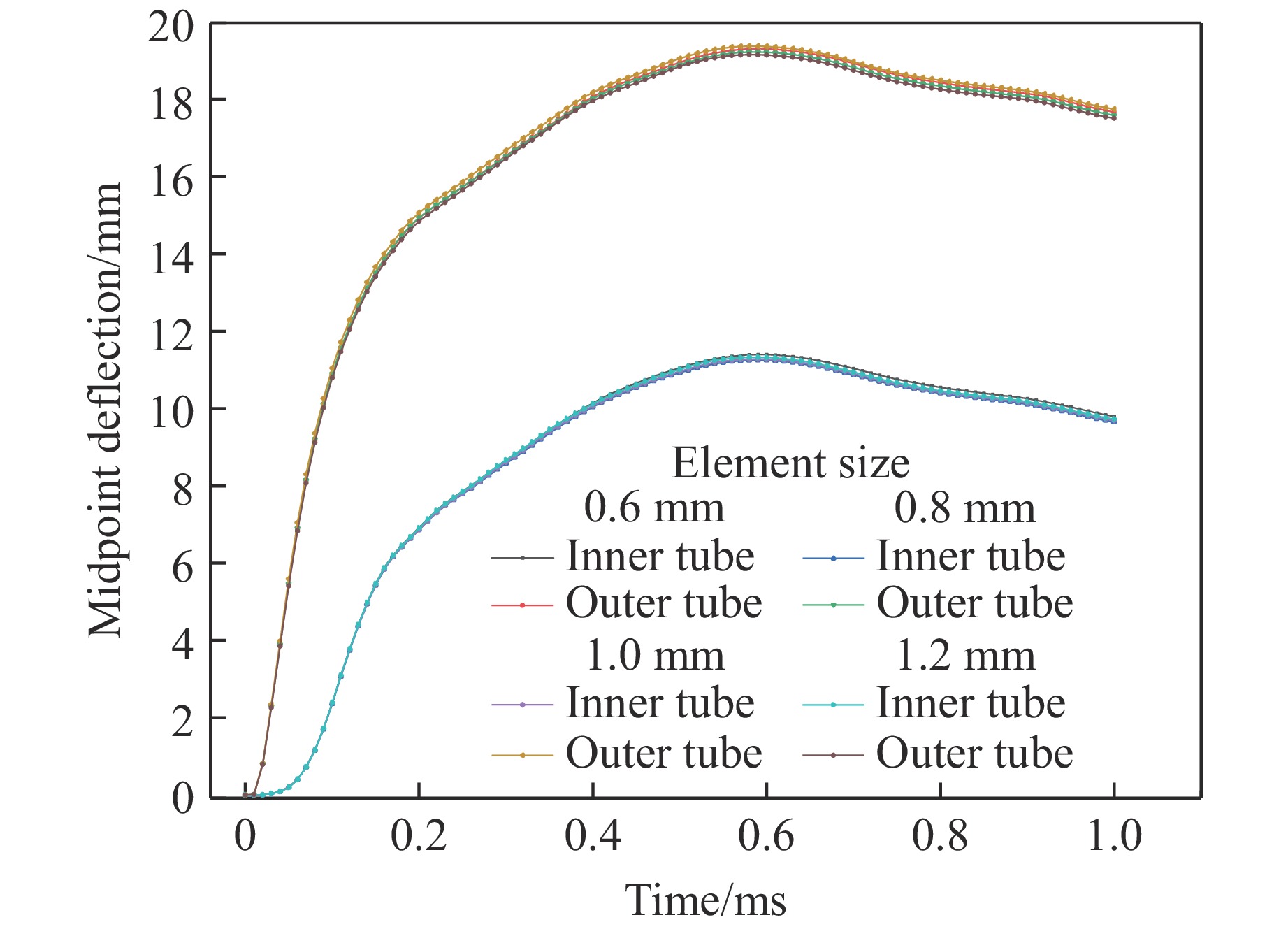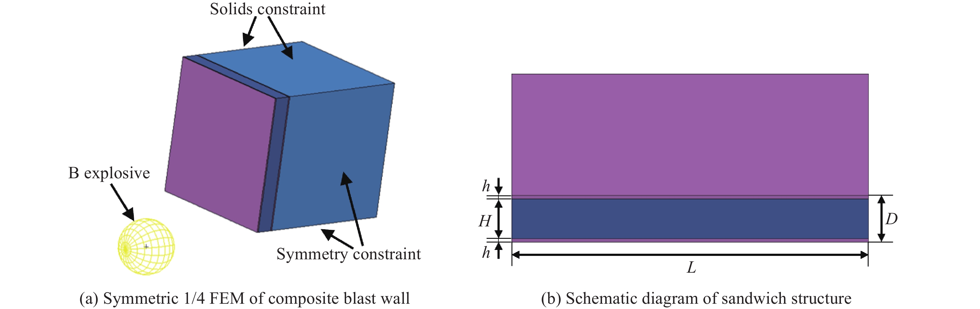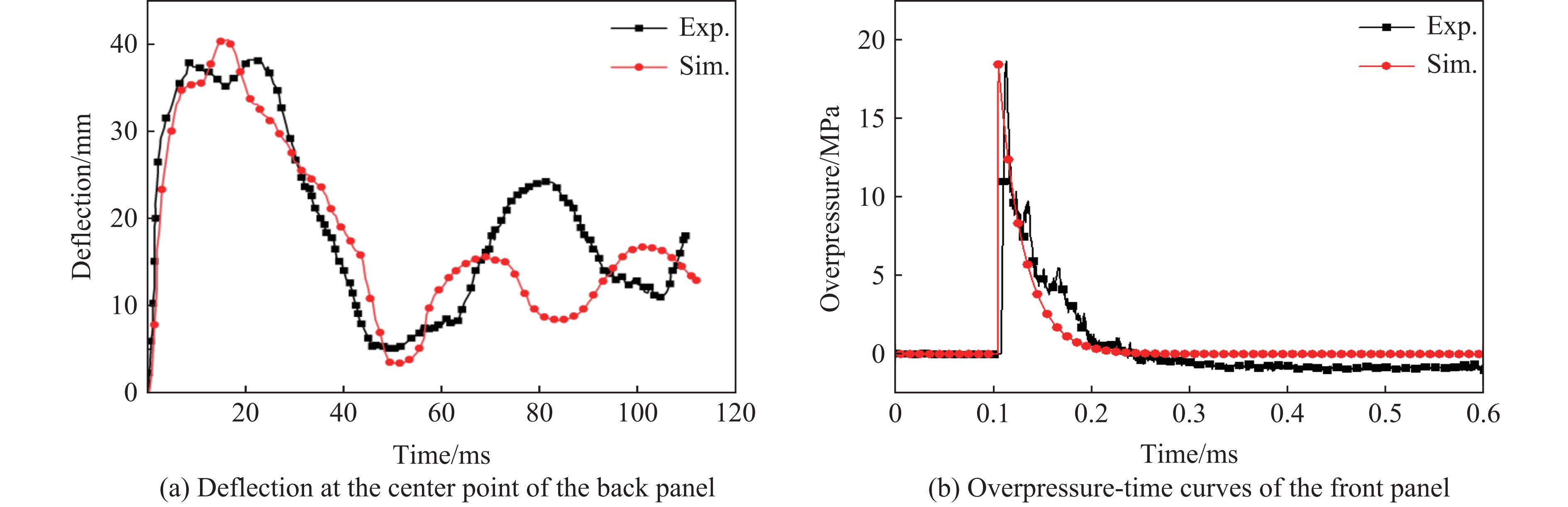爆炸近场是弹药爆炸毁伤的核心区域,涉及强冲击波与爆轰产物的耦合载荷作用。目前,扩胀管结构(expansion tube structure, ETS)在此类极端载荷下的力学响应及能量转化机制尚不明确。为此,将ETS作为典型吸能结构,研究其在近场强冲击波与爆轰产物耦合作用下的能量转化机制。在实验验证的基础上,通过数值模拟方法研究近场爆炸载荷特性及ETS的动态响应特性;进一步建立了近场爆炸载荷的理论预测公式,并在强冲击假设的基础上构建了能量转化效率的理论预测模型。结果表明:能量转化效率随着比例距离增加而显著下降,当比例距离超过0.8 m/kg1/3时,效率低于10%;能量转化效率与反射波比冲量呈显著正相关,说明比冲量是决定能量传递的关键因素。研究结果揭示了ETS在近场爆炸载荷作用下能量转化的内在机制,所建立的理论模型为近场防护结构的设计与性能评估提供了有力的理论支撑。