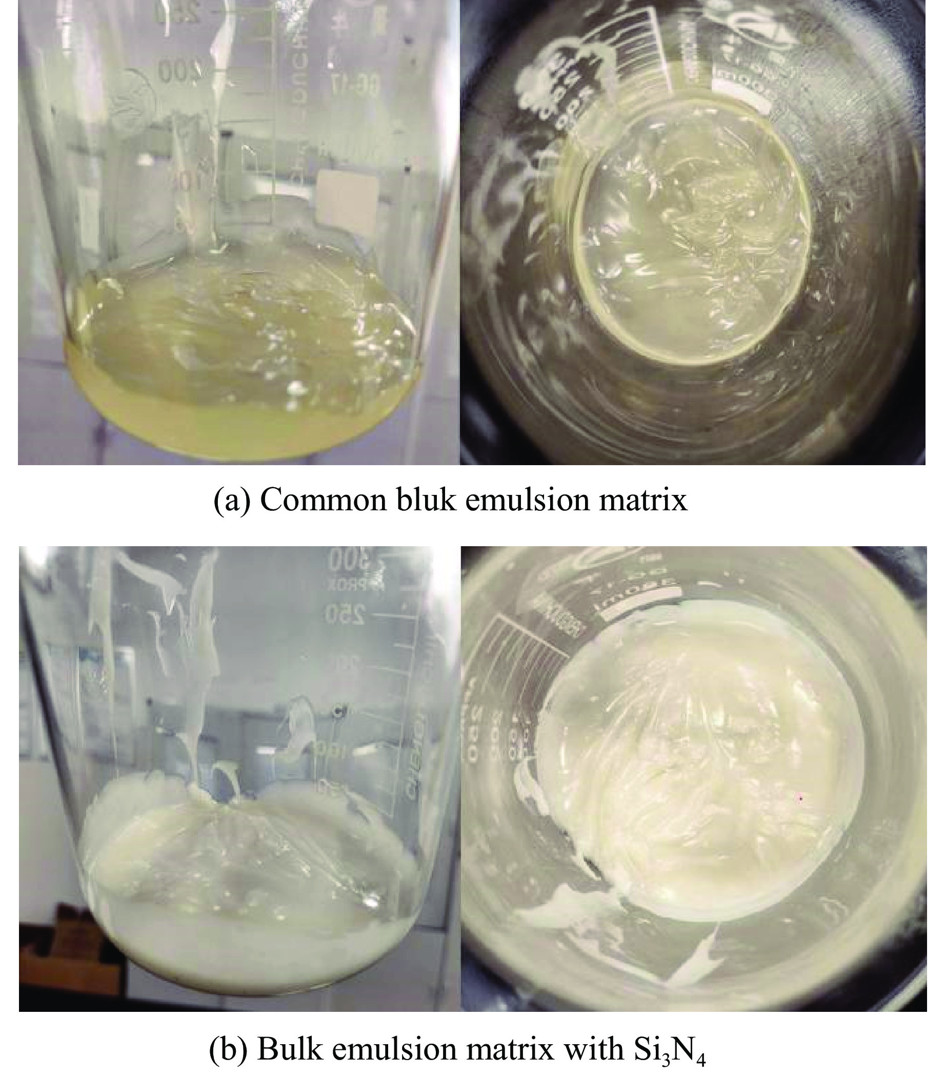 为了探究棉籽油含量对现场混装乳胶基质的流变特性及抗振动性能的影响,制备了不同含量棉籽油的现场混装乳胶基质样品。采用旋转流变仪、HY-5A型回旋调速振动器、水溶法研究了现场混装乳胶基质的流变特性以及抗振动性能。结果表明:当棉籽油的质量分数不大于2.5%时,随着棉籽油质量分数的增大,现场混装乳胶基质的黏度逐渐增大,在现场混装车管道的温度环境下,乳胶基质的黏度均能满足泵送要求,弹性模量和内聚力逐渐变大后基本不变,抗振动性能先增大后变小;当棉籽油的质量分数为2.0%时,抗振动性能最佳。
