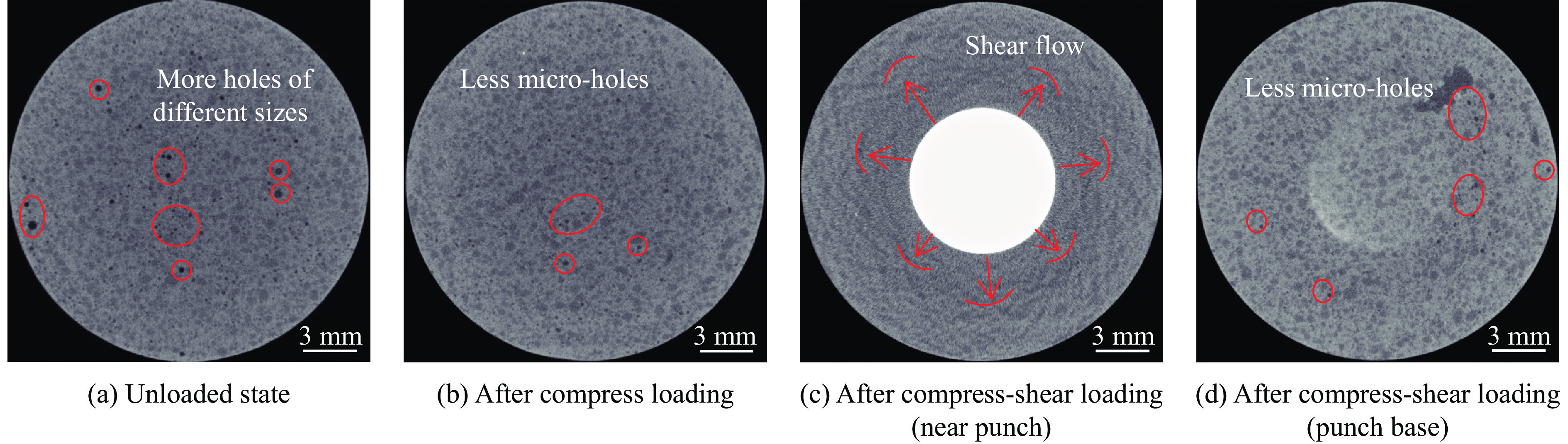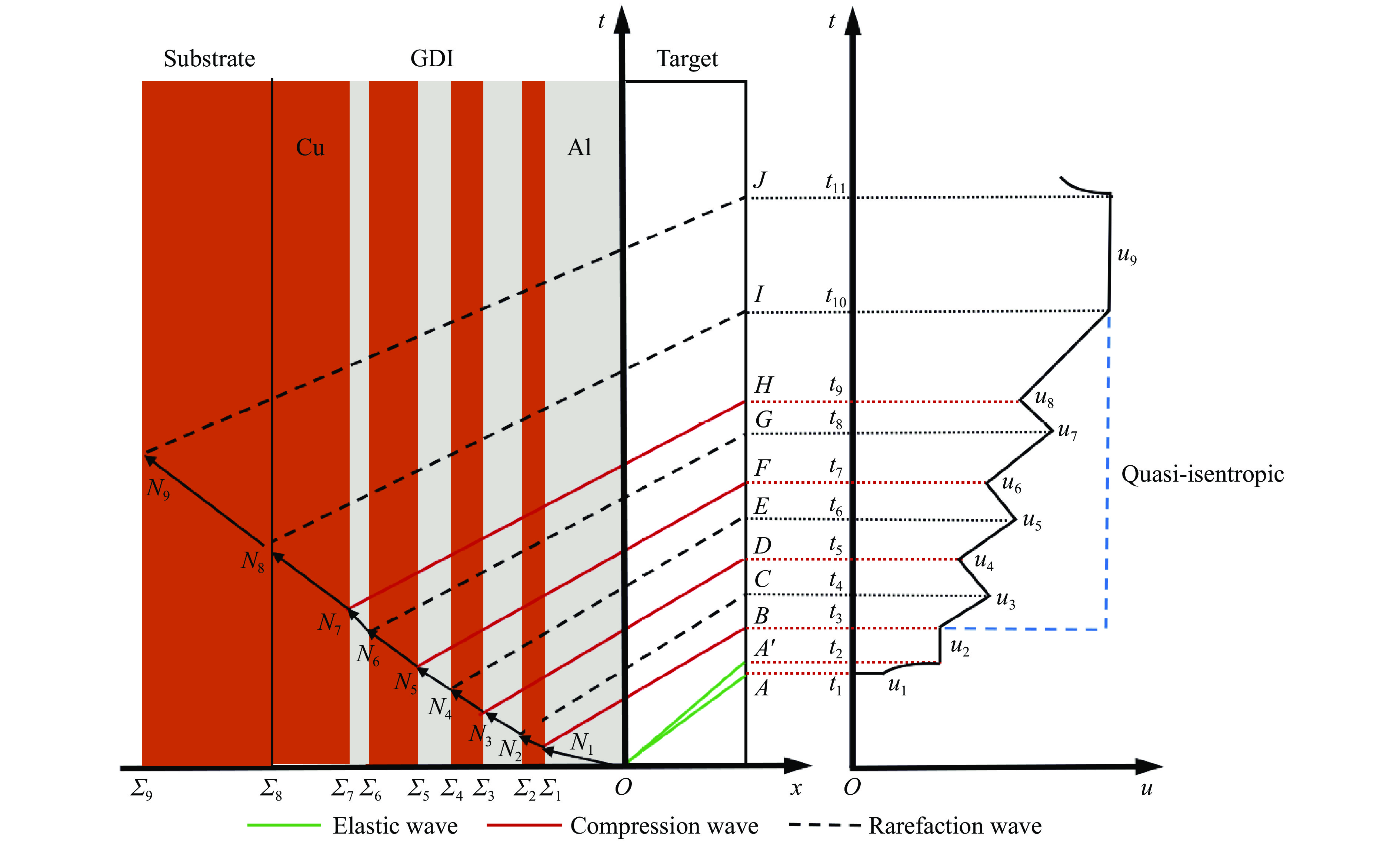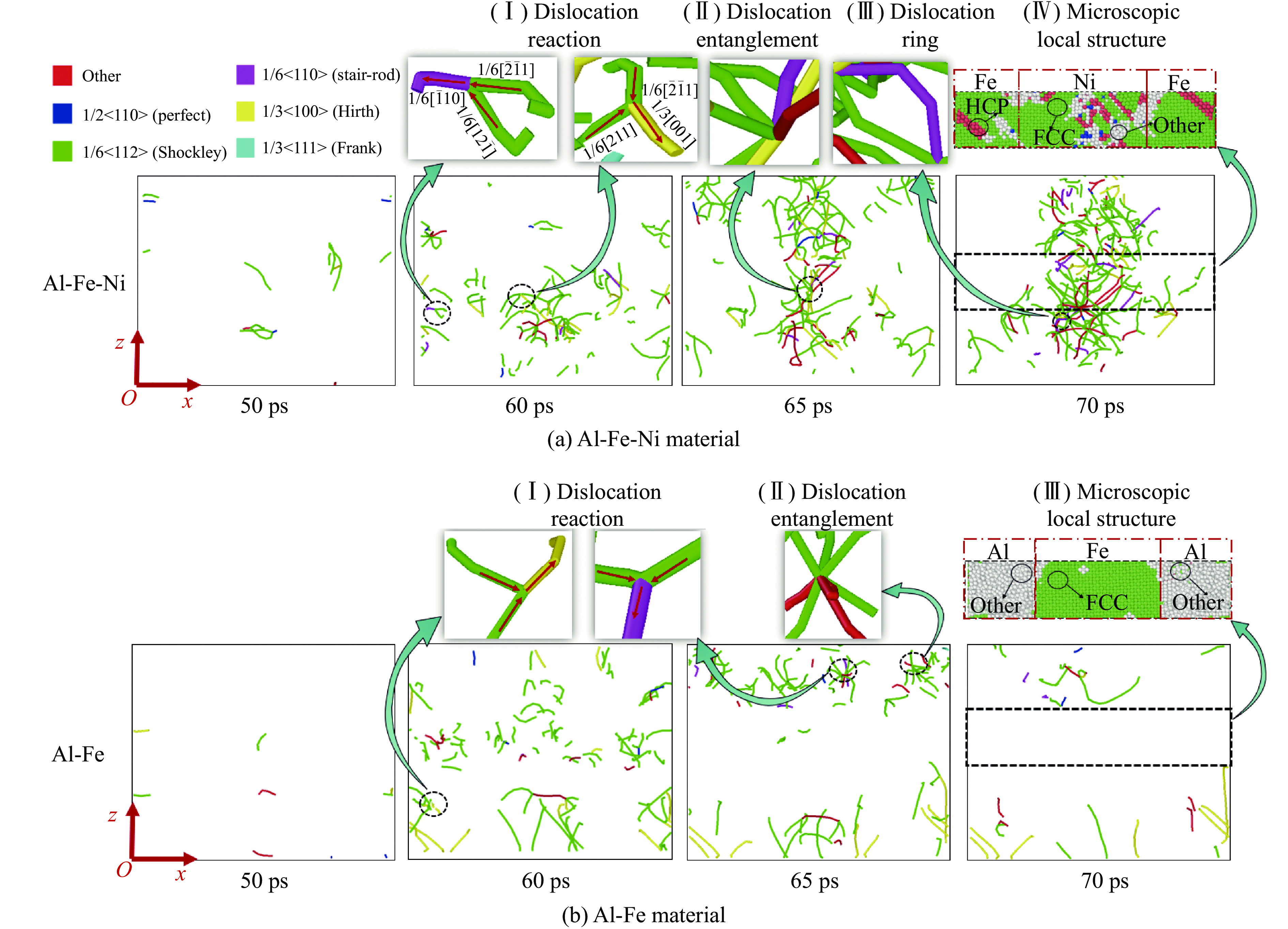采用分子动力学方法,研究了含氦泡铜在两次稳态波加卸载作用下的微射流增长与损伤演化过程,对比了含氦泡与不含氦泡金属的损伤特征、激活应力阈值、微射流形态和速度分布以及不同区域氦泡的变形特征。结果表明:二次冲击后,氦泡膨胀的临界激活应力阈值低于孔洞形核的应力阈值,且与氦泡分布及氦泡数密度密切相关。低压首次冲击下,含氦泡金属比纯金属形成更显著的微射流;二次冲击下,氦泡使微射流更易断裂,且微射流头部最大速度更高,但微射流主体速度分布相当。二次冲击波对于已经经过首次冲击压缩、由于稀疏波作用发生轻微回弹但未恢复至初始状态的体氦泡几乎不起作用。二次冲击后,近表面已破裂飞出的氦泡壁也可能贴回气泡底部,使得部分氦原子被再次封存。二次冲击卸载后,被封存的氦泡会再次发生膨胀破裂,释放氦原子。在二次冲击作用下,氦泡塌缩机制与氦泡尺寸及冲击强度紧密关联。研究结果将为后续的辐照氦泡对金属微喷-微层裂耦合演化影响的跨尺度理论研究提供物理认识和理论依据。