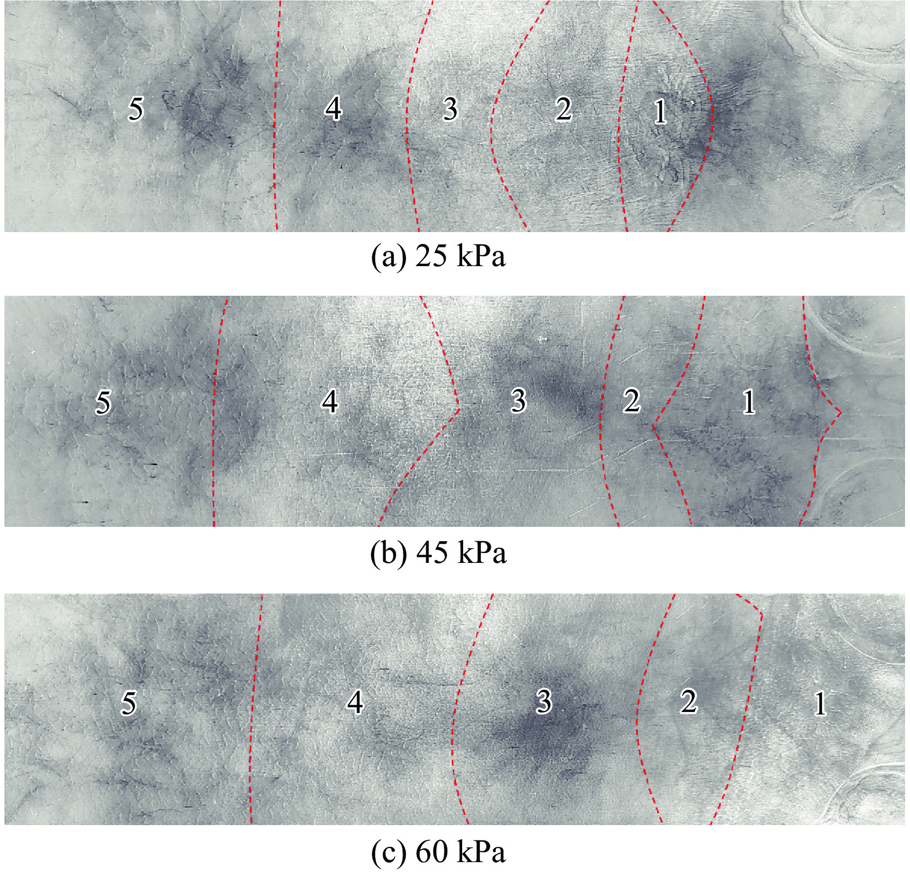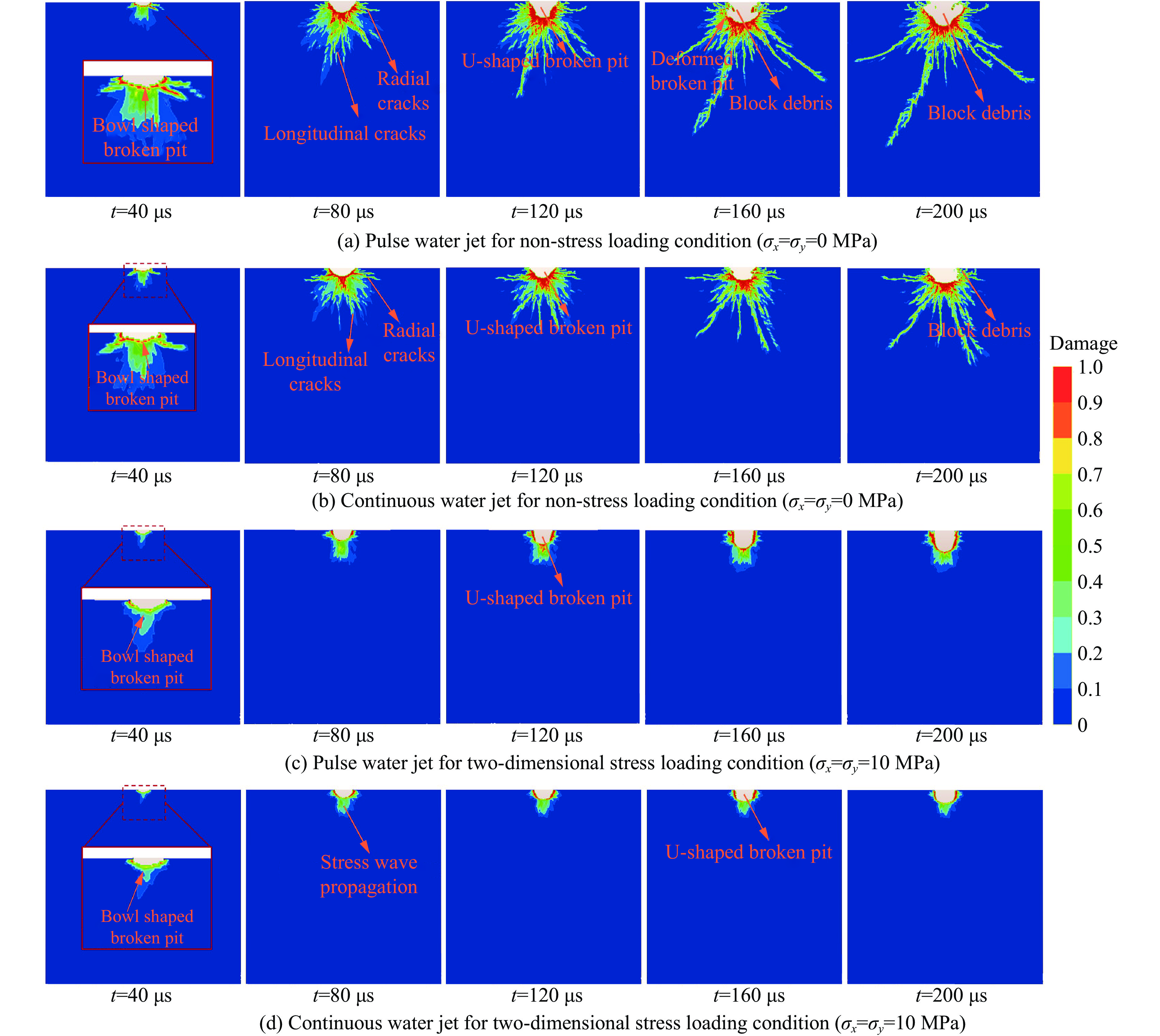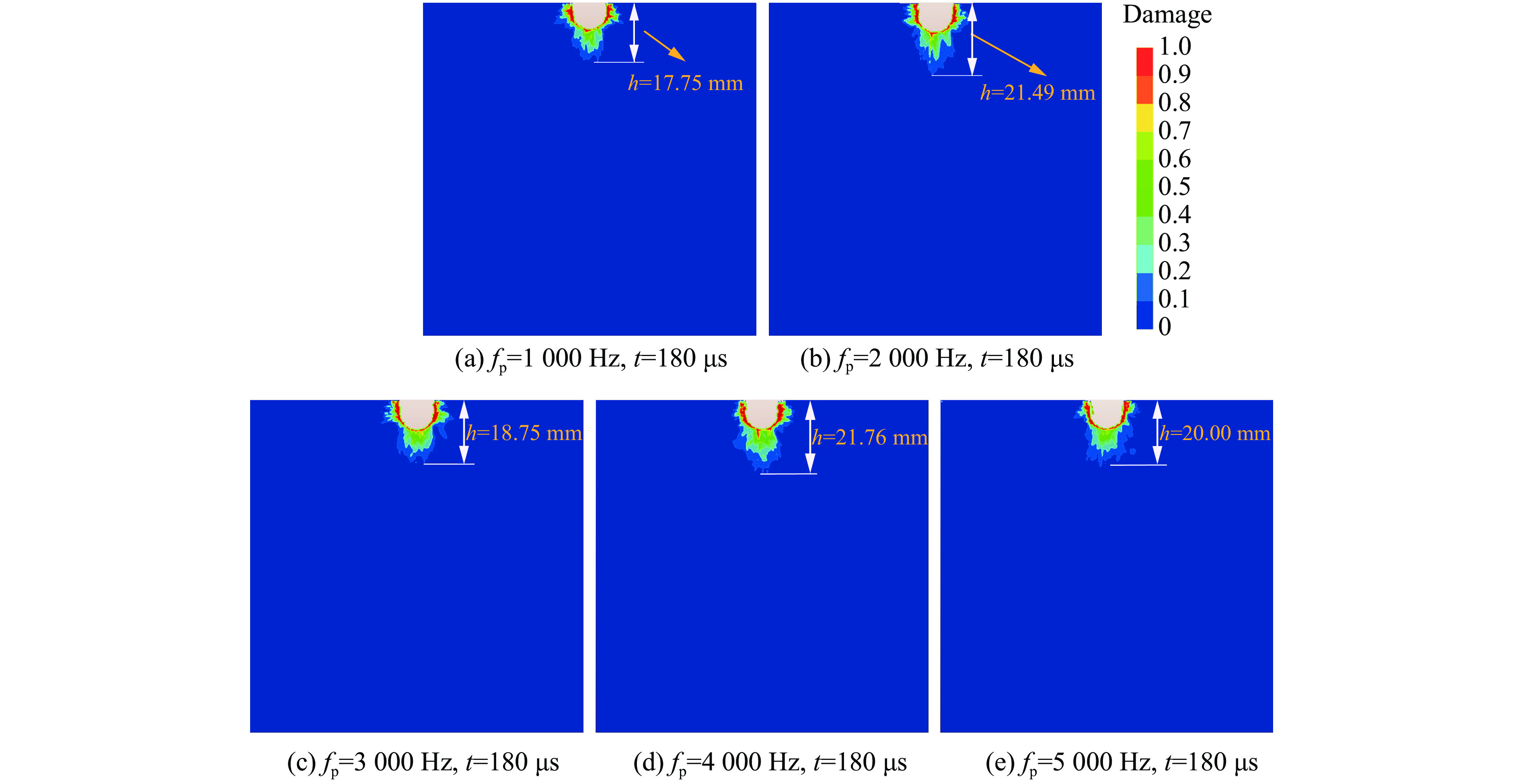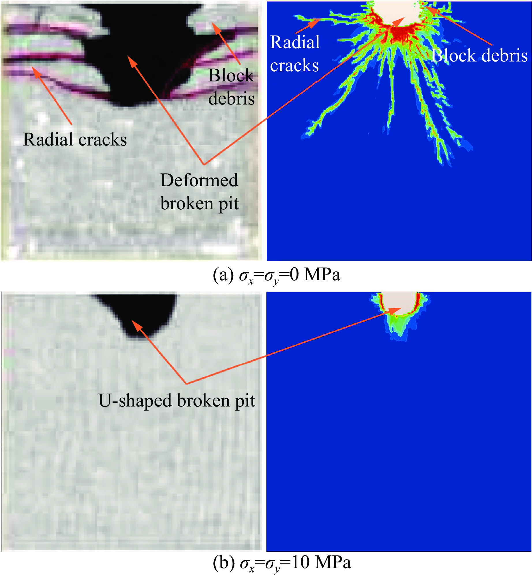 为了保证铜矿资源的高效回采,以含铜钠长岩试样为研究对象,使用分离式霍普金森压杆(SHPB)施加不同强度的冲击荷载,利用高速摄像系统记录裂纹扩展过程,并结合一维应力波传播理论和能量守恒定律,分析试样在不同冲击气压下的能量耗散规律;同时,基于有限-离散元(FDEM)耦合算法,建立含铜钠长岩冲击过程的数值模型。结果表明:入射能和应力峰值随着冲击气压的增大而增大,试样破碎程度也随之加剧;当入射能小于140 J时,随入射能的增加,能量耗散率逐渐增大;当入射能大于140 J时,能量耗散率随入射能的增加逐渐减小,能量耗散率在冲击气压为0.35 MPa时最大;在冲击过程中,拉伸破坏占主导作用,并在水平方向形成主优势区。新增裂纹面积和冲击总能量随着冲击荷载的增加而增大,冲击气压为0.30 MPa时,应变能比能量最小,在此气压下,剪切裂纹占比最小,说明0.30 MPa的冲击气压的破岩效率最高;基于FDEM构建的数值模型可以有效地预测在不同冲击荷载下含铜钠长岩的损伤破裂过程。