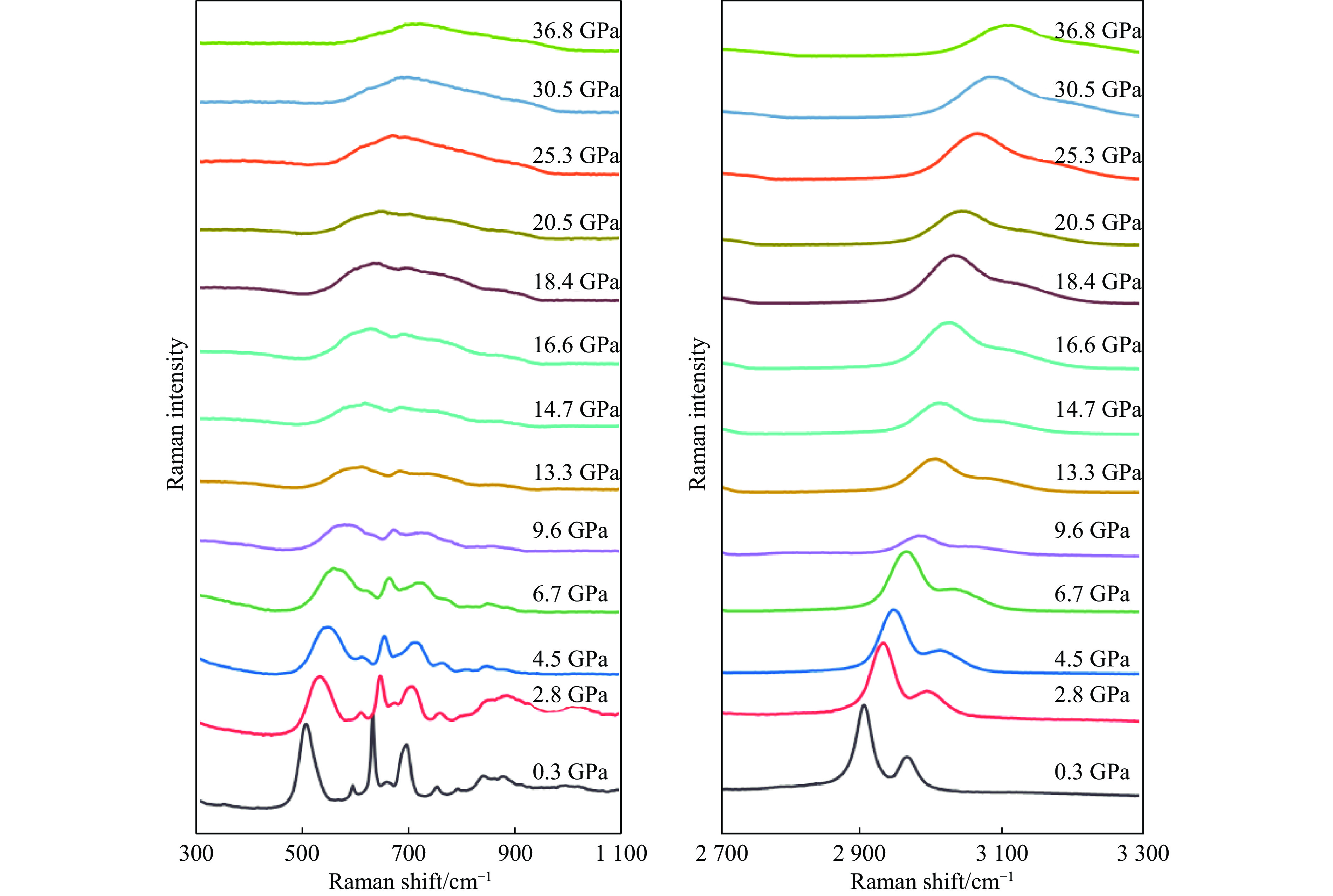聚偏二氟乙烯(PVDF)是一种多用途的半结晶聚合物,具有优异的压电、热释电和介电性能,广泛应用于传感器、能源设备和生物医学等领域。其性能受结晶度和多晶结构(α,β,γ,δ,ε)的影响,其中极性 β相比非极性α 相具有更好的机电性能。然而,α相仍然是热力学最稳定和最容易获得的形式。利用原位X射线衍射和傅里叶红外光谱技术研究了 PVDF 在高压下的结构演变。在常压条件下,PVDF粉体主要以α相存在,并伴有少量β相。随着压力升高(0–20 GPa),α相逐渐减少,新的衍射峰和振动带位移表明发生了α → β和 β → γ的相变过程,β相含量显著增加,γ相亦随之生成。当压力进一步升高至20 GPa以上,晶格发生严重畸变,晶体长程有序结构被破坏,导致衍射峰展宽并最终非晶化。本研究揭示了压力诱导下 PVDF 分子链重排与多晶型转化之间的复杂相互作用,阐明了其高压相变路径与结构演化规律。研究结果不仅深化了对 PVDF 结构–性能关系的理解,也为其在极端环境下的性能调控与高压技术应用提供了理论依据。