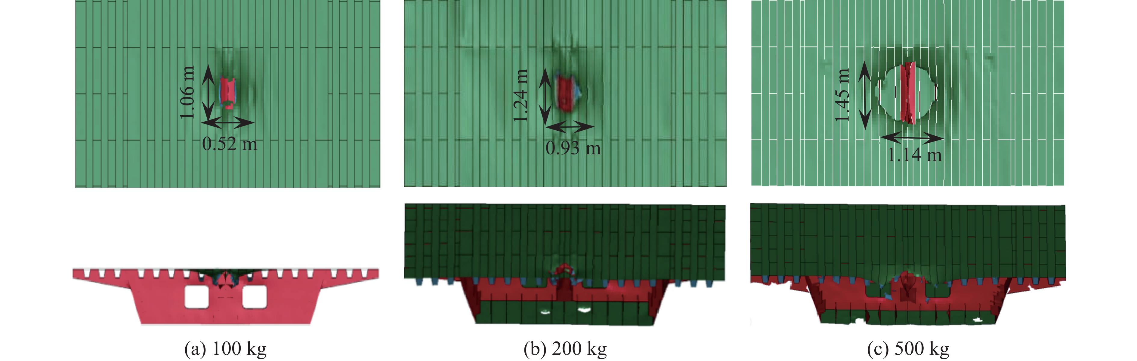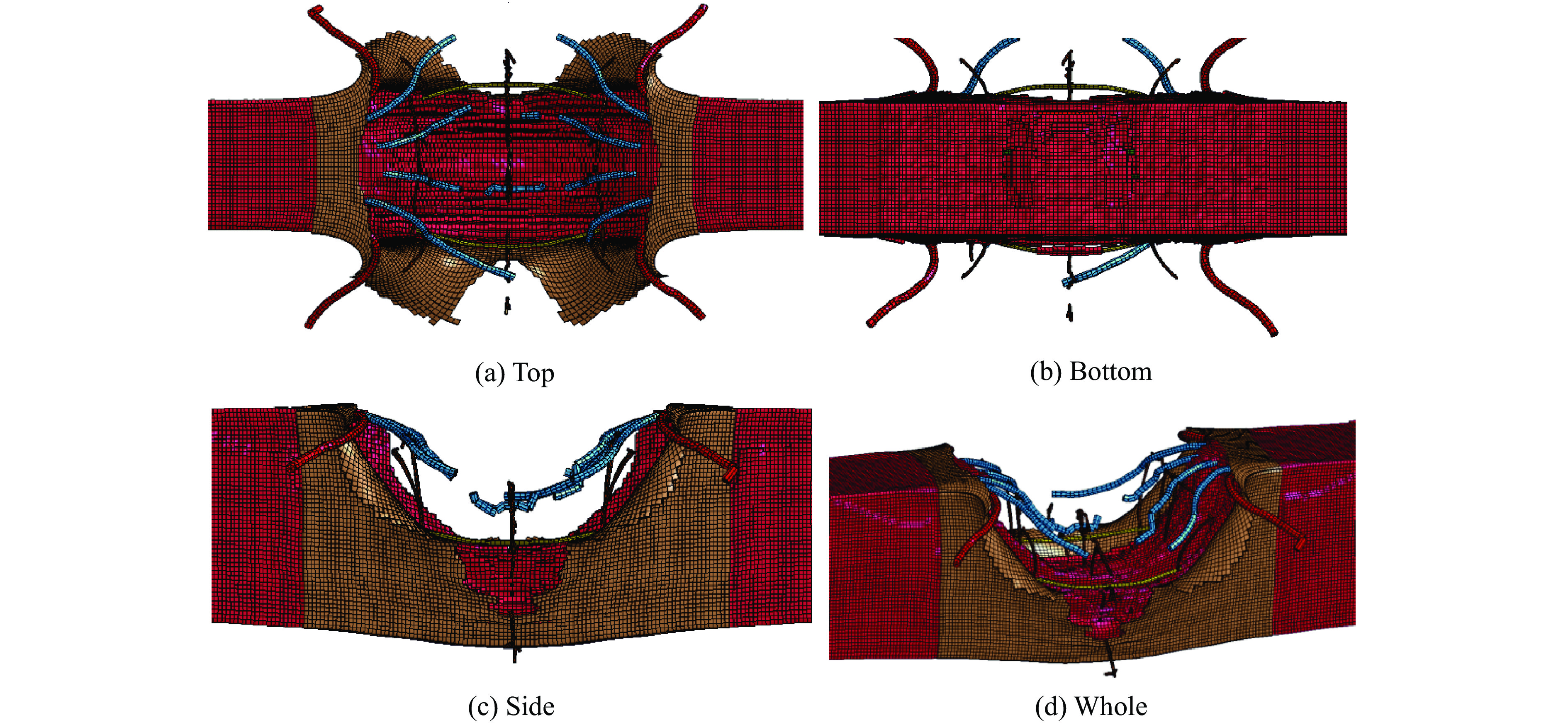 为探讨海底光电复合电缆(submarine optical-electrical composite cable,SOCC)在不同工况下的抗冲击力学性能,首先,对SOCC开展了落锤式冲击实验,揭示了不同变量下其外铠装的结构变形特征,记录其冲击演化过程和最大凹陷变形程度;其次,对SOCC展开有限元模拟,并与试验结果进行对比分析;最后,探讨了SOCC在不同参数影响下的变形特征。结果表明,内外铠装均发生了凹陷变形,而铜铠装、铜导体以及光缆铠装则主要表现为弯曲变形,同时耦合局部凹陷变形。随着冲击能量的增大,金属构件达到最大变形所需时间缩短,回弹加快;冲击角度对内外铠装凹陷变形的影响不明显,对内部其他构件产生了显著破坏,其中上方构件的变形破坏最为严重。研究结果有利于对SOCC的动力学性能评估,并为工程中SOCC保护措施设计提供参考。