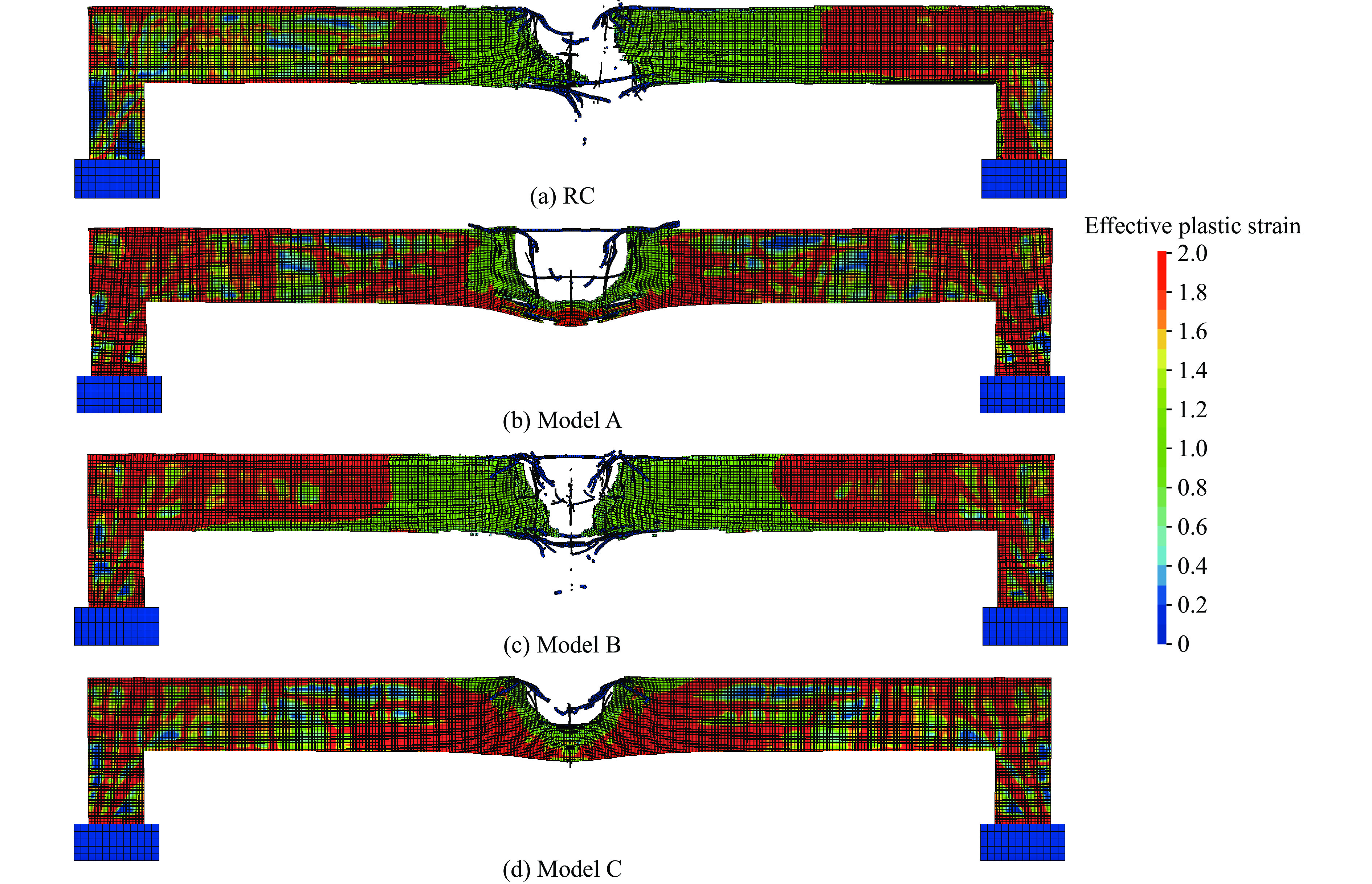 为探究混凝土的拉伸断裂特性和裂纹演化规律,开展了巴西圆盘的准静态劈裂试验和落锤冲击动态劈裂试验,结合有限元-黏聚单元耦合法(FCEM),对裂纹扩展过程及力学响应进行了数值模拟分析。试验结果表明:准静态加载时,混凝土圆盘试件发生拉伸断裂,圆盘中心形成一条沿加载方向贯穿的主裂纹和少量与其平行的次裂纹,裂纹主要在砂浆内部及骨料-砂浆界面扩展;三维圆盘试件的拉伸性能随厚径比的增大而增强。在动态冲击载荷作用下,试件仍为中心起裂模式,在圆盘中心形成一条沿加载方向的主裂纹,但其与试验装置接触的边缘会产生三角状的破碎区域。伴随落锤释放高度的增加,试件依次表现出未起裂、起裂未贯穿、起裂贯穿、严重破碎4种破坏形态。通过高速摄影获得了不同时刻的裂纹长度,结果表明,随着落锤释放高度的降低,裂纹扩展时间延长。数值模拟结果显示,试件的起裂时间随落锤释放高度的增加呈非线性递减,并给出了起裂时间与落锤释放高度关系的经验公式。