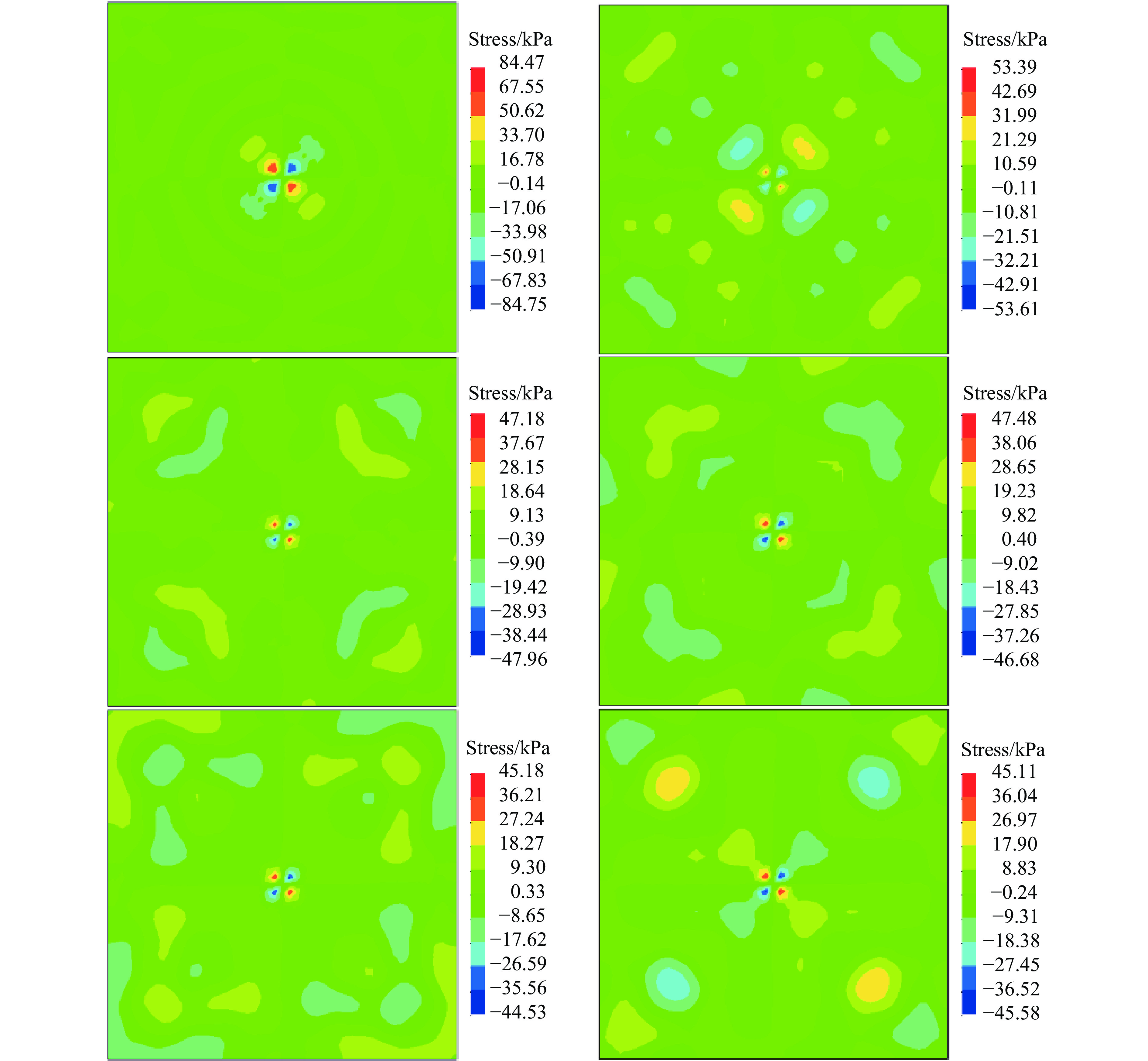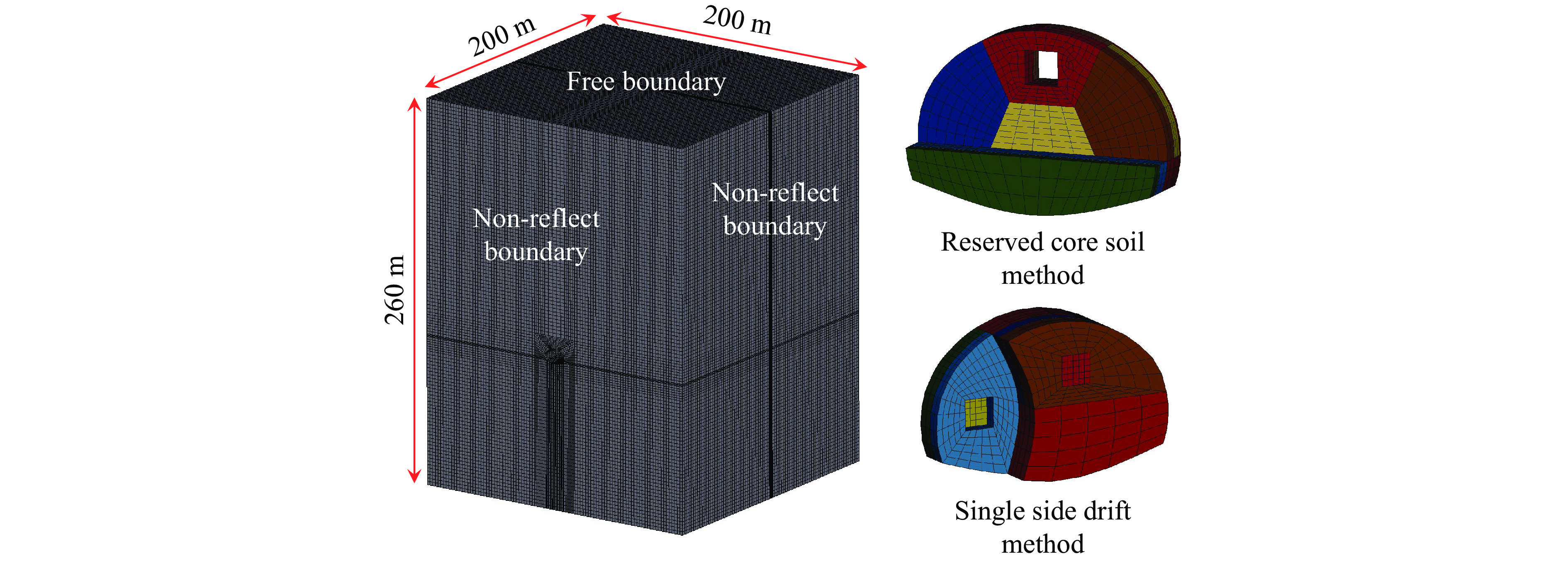 针对传统周边爆破易诱发随机裂纹损伤围岩的问题,结合弹性力学理论与基于ANSYS/LS-DYNA的数值模拟,深入研究了空孔定向爆破的损伤演化与动力响应特性。首先,基于弹性力学理论,阐释了控制定向裂纹扩展的力学机制,揭示了在爆炸荷载作用下空孔通过应力波反射产生拉应力集中的机理;接着,通过建立平面双孔不耦合装药数值模型,系统研究了炮孔间距和地应力场对损伤演化的影响;最后,分析了空孔附近峰值应力和质点峰值振速的动态变化规律。结果表明:空孔显著改变爆炸能量分布,将其引导至集中于炮孔连线方向,有效抑制了非预期裂纹的萌生与扩展;空孔定向效果受地应力调控,高地应力削弱空孔水平方向的拉应力集中,抑制炮孔间裂纹扩展,因此,炮孔布置宜平行于岩体最大主应力方向,以最大化定向效果并减弱地应力抑制;炮孔间距为11~14倍炮孔直径时,可促进主裂纹稳定定向扩展,抑制非预期裂纹发育,显著改善围岩损伤控制效果。高地应力工况下,需将孔距参考值缩小至8~11倍炮孔直径。