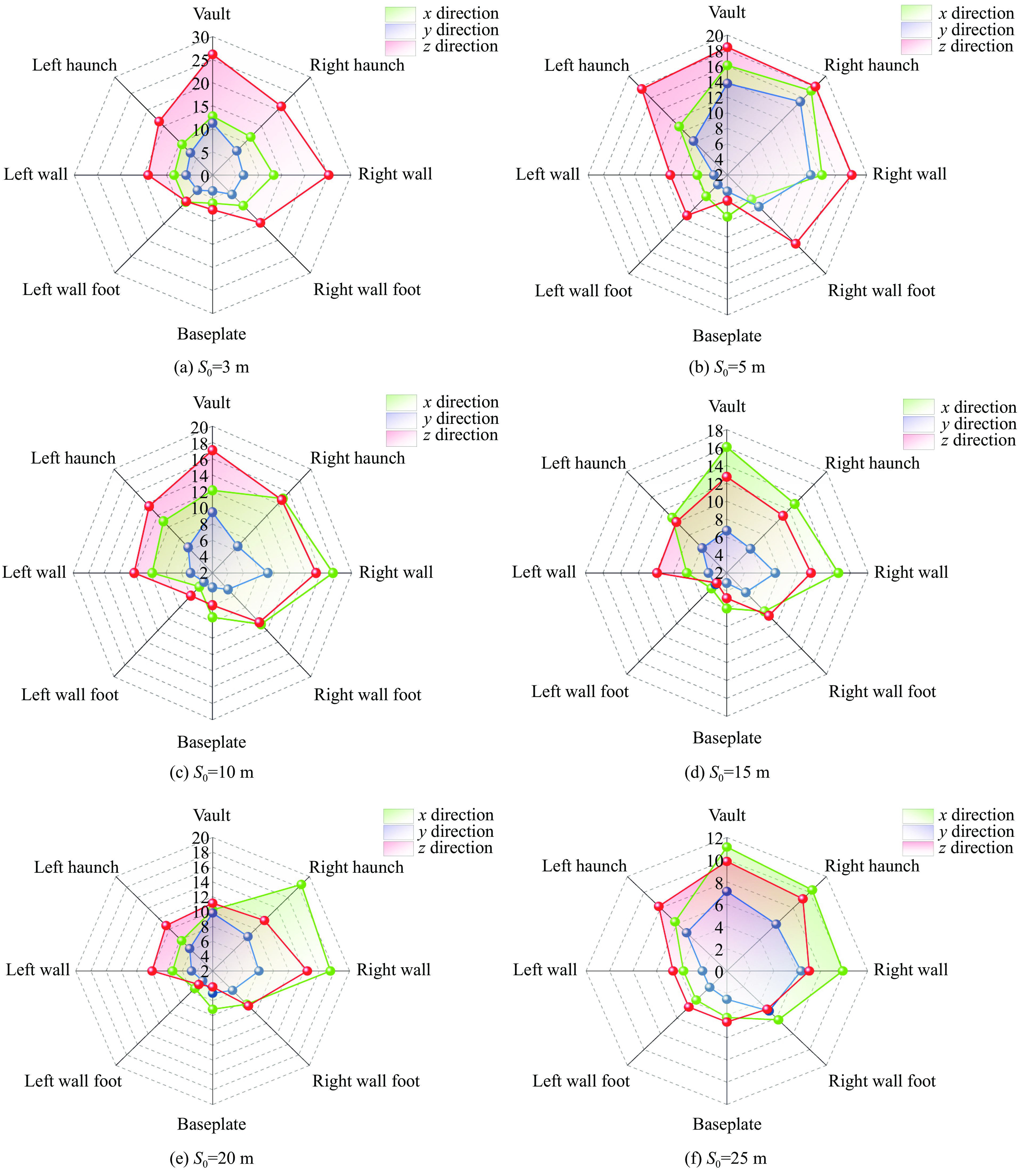 地下盐穴储气库是重要能源基础性设施,一旦发生冲击破坏将造成不可挽回的损失。因此提出评估盐穴在极端冲击载荷下安全性的关键动态稳定性指标具有重要意义。为探究高速侵彻下盐穴储气库的动力学响应,基于RHT(Rieldel-Thoma-Hiermaier)本构模型对盐岩材料进行定义,利用ANSYS/LS-DYNA软件构建了储气库的有限元模型,分析某种钻地武器对盐穴结构的损伤效应。在此基础上开展三种不同盖层厚度工况数值模拟,考虑垂直位移、竖向应力、有效塑性应变、剪切应力四个参数,揭示盐穴溶腔在动态冲击下顶板及围岩结构的破坏机制,形成关键稳定性指标的变化规律。模拟结果表明:盖层厚度减少导致围岩动态响应加剧,塑性变形区域扩大;顶板与围岩的位移呈先上升后下降趋势;低竖向应力区的盐岩会受到较大的剪切应力,更容易发生破坏;围岩积累塑性应变且更大,其塑性变化受侵彻扰动更敏感。