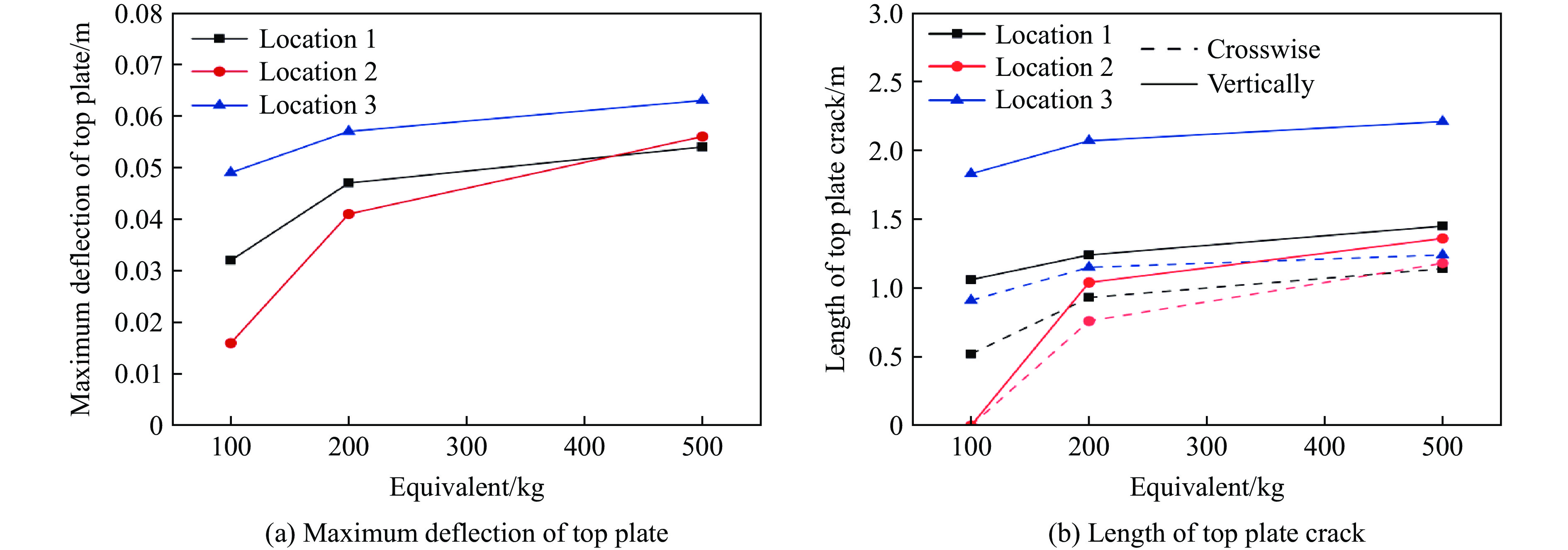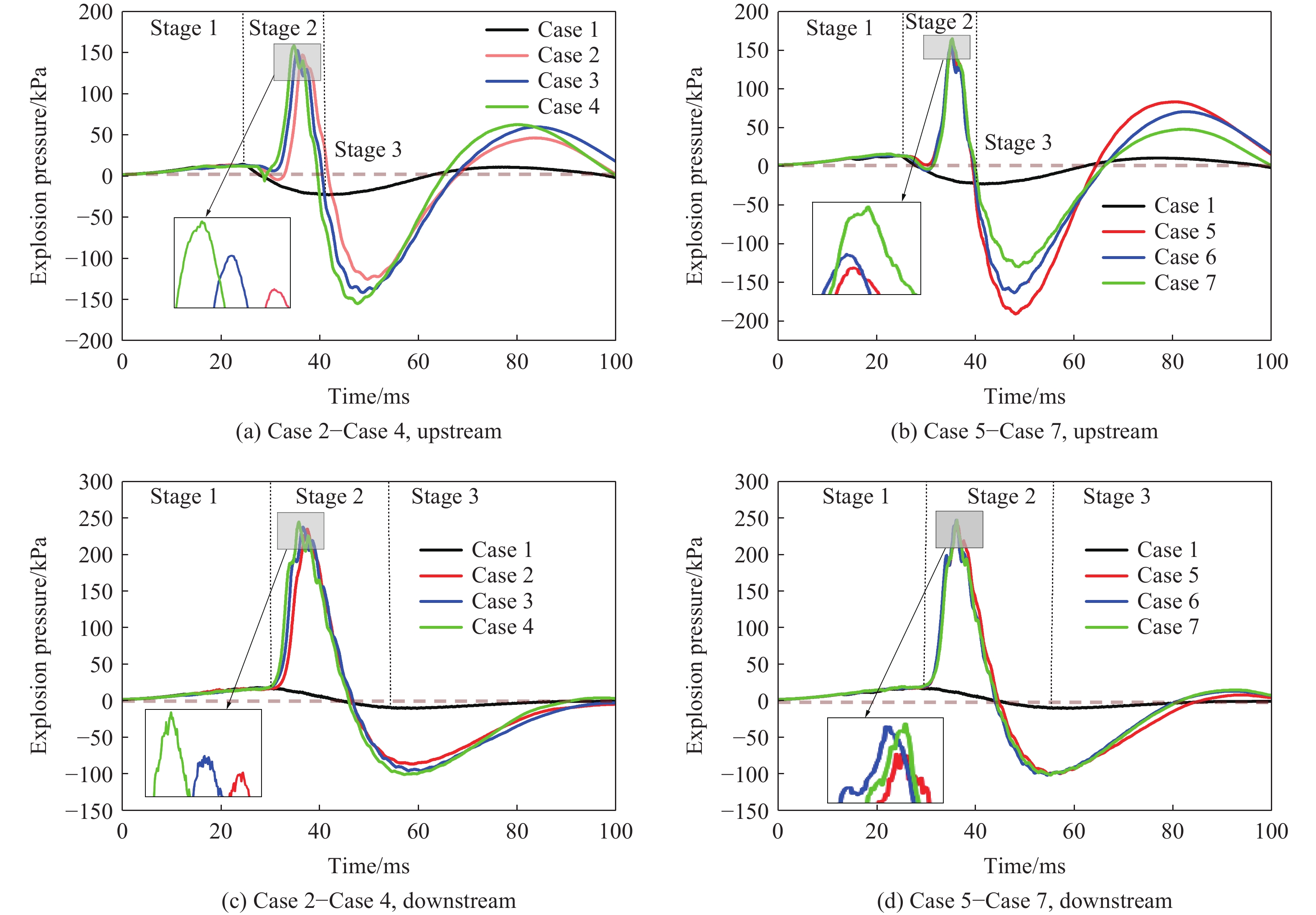 针对弧形拐弯坑道内冲击波衰减规律不清的问题,研究了半径和拐弯角度对弧形坑道中冲击波传播的影响,发现半径和拐弯角度对消波效率的影响有限,且弧形坑道与同角度直接拐弯坑道的消波效率相近,基本小于7.2%。为提高拐弯坑道对冲击波的衰减效率,提出以弧形坑道为基础设置扩散室构建成弧形扩散坑道的防护新思想,并探讨了扩散比、扩散形式(外侧扩撒、内侧扩散和两侧扩散)和冲击波特征参数对弧形扩散坑道消波效率的影响规律。计算表明,弧形扩散坑道可大幅提高冲击波衰减效率,衰减率可达55.9%,其中,外侧扩散型弧形坑道的消波效率最高,内侧扩散型和两侧扩散型的消波效率次之,且消波效率随扩散比的提升而不断增大。随着冲击波压力峰值的变大,弧形扩散坑道的消波效率有所提高,可以达到64.4%,继续提升压力峰值时,弧形扩散坑道的消波效率略有下降但基本保持不变;弧形扩散坑道的消波效率随冲击波正压时间的变大而降低,在正压持续时间为100 ms时,消波效率降至25.4%,但随着正压时间的进一步变大,弧形扩散坑道的消波效率几乎保持不变。