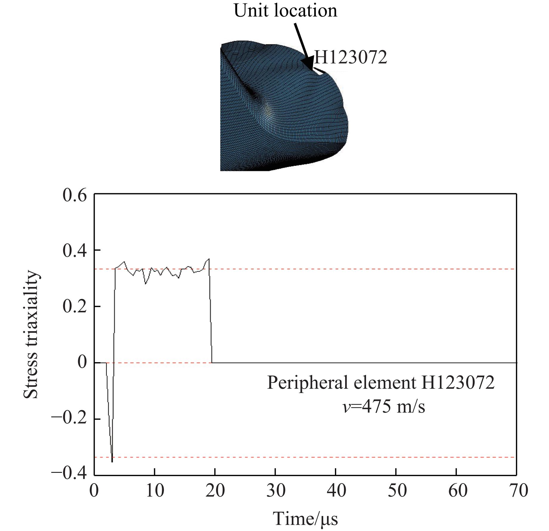 为提高国内现役38 mm防暴枪用非致命动能弹的安全性,采用有限元-离散元法,对填充铅砂的38 mm球形动能弹丸冲击人体仿生靶标过程进行了数值模拟,利用刚性壁实验进行了建模方法和参数选取的间接验证,获得了弹丸冲击仿生靶标过程的形变过程、动能、速度、位移、能量传递率等变化数据。在此基础上,对不同弹体速度和壁厚进行了对比分析,提出了安全射击建议。结果表明:弹丸冲击仿生靶标时产生较大形变,弹丸形变至圆饼状,靶标产生圆形凹陷,两者形变均可在一定程度恢复;弹丸致伤威力随着速度的增加而增加,随着壁厚的增加而减小;当弹丸壁厚为5、7、9 mm时不造成腹部皮肤穿透损伤的最小射击安全距离分别122.40、64.62、31.26 m。