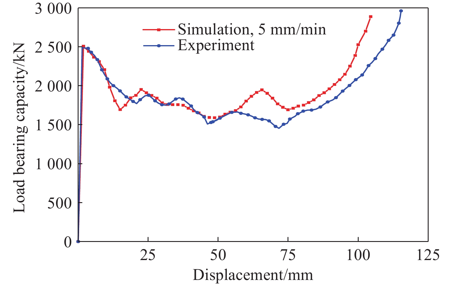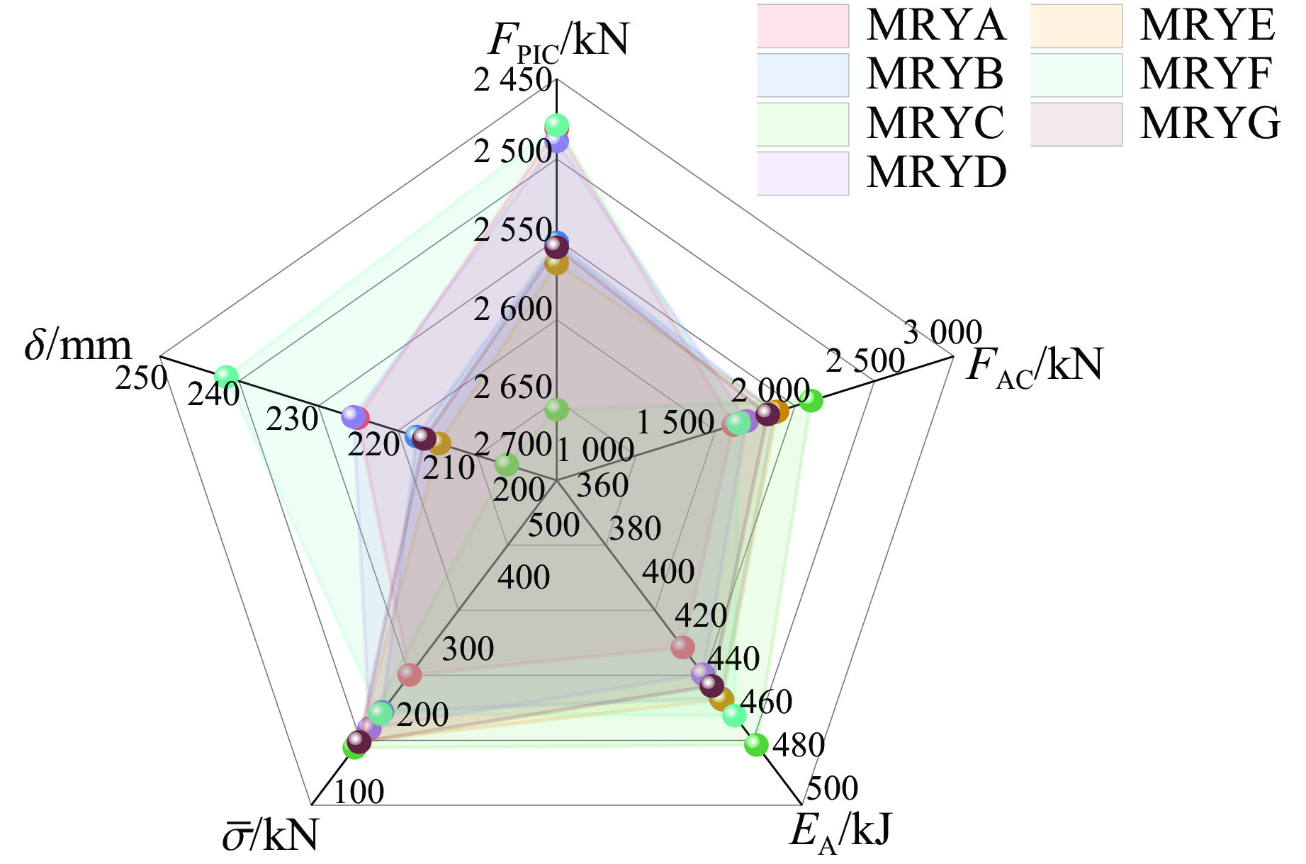 为有效缓解冲击地压对液压支架的破坏作用,基于单层变径式吸能构件研究基础,提出一种具有更高吸能量的双层变径式吸能构件。基于能量法剖析不同截面管件扩径与缩径变形的能量耗散理论,推导波纹管与圆管不同组合形式下构件稳定变径过程承载力计算公式;通过数值模拟分析得到8种不同类型吸能构件吸能量曲线、承载力曲线及变形规律,对比发现内层波纹管、外层圆管的双层变径式吸能构件结构(SBY类型)具备较优吸能性能;探究不同结构参数对吸能效果的影响规律,其中内管壁厚、外管壁厚、波纹半径和底座内倒角度数4种结构参数对吸能特性参数影响显著。根据拉丁超立方取样方法设计试验方案,利用Kriging代理模型结合多目标粒子群优化算法对结构参数进行优化,最终选择优化后的结构参数组合为:内管壁厚6mm,外管壁厚2.9mm,波纹半径6.9mm,底座内倒角度数40°。制作吸能构件进行轴向准静态加压实验,验证仿真分析及优化结果的准确性和有效性。结果表明:经参数优化后的双层变径式吸能构件总吸能提高54.2%、比吸能提高55.6%、平均承载力提高43.2%、载荷标准差提高59.5%。所设计的构件具有更好的吸能性能,可使让位防冲过程更加可靠,为深部巷道支护液压支架的吸能构件设计提供理论依据和参考。