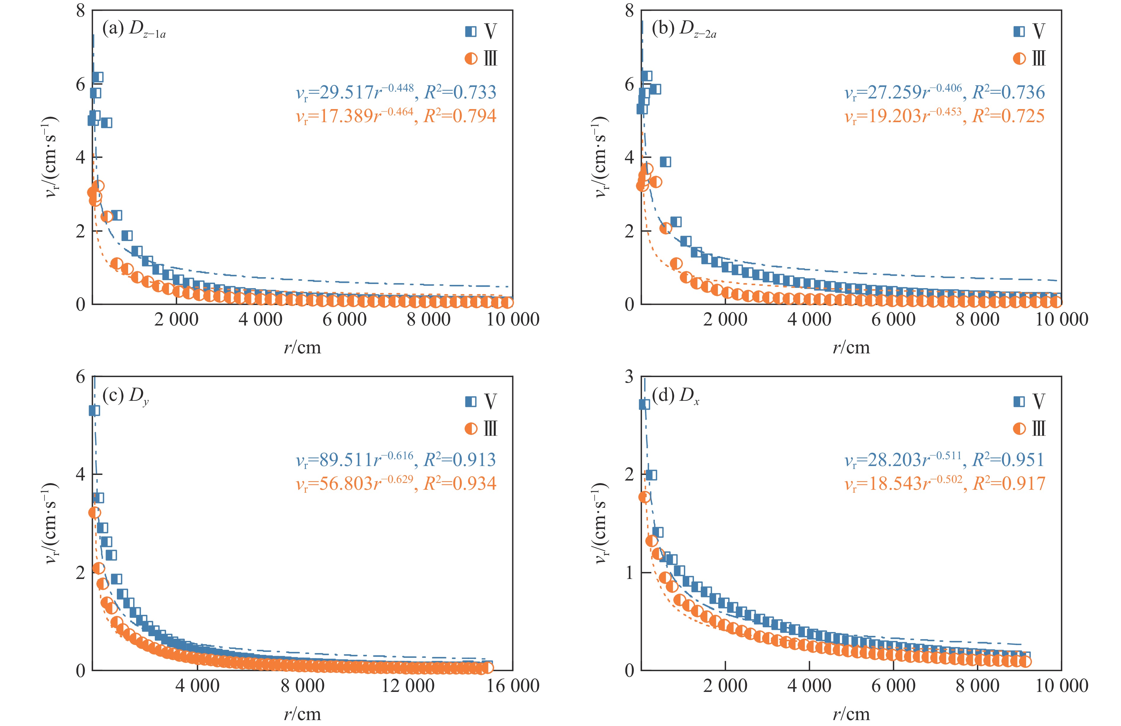采用理论分析和模型试验研究双孔爆破介质的损伤破坏特征,基于双孔爆破模型的弹性力学平面应变问题解析,建立了双孔爆破动态应力场演化的理论模型。通过模型试验研究了不同炮孔间距下双孔爆破的损伤特征,通过分区和分形维数定量表征了炮孔周围不同区域的损伤特征。结果表明:随着炮孔间距的增大,应力波叠加作用降低,压碎区半径增大,裂纹数先减少后增多,主裂纹的平均长度逐渐增大;炮孔连线方向的损伤逐渐减小,垂直于炮孔连线方向的损伤逐渐增大;小孔距有利于裂纹孔间贯穿和沿炮孔连线方向扩展;试件左部和右部区域的损伤变量逐渐增大,中部区域的损伤变量在炮孔间距为50 mm时出现最小值;区域Ⅰ和区域Ⅱ的损伤变量先减小后增大,区域Ⅲ的损伤变量逐渐减小;在极坐标系下,区域Ⅰ的损伤均匀分布,区域Ⅱ的损伤由椭圆形分布逐渐向圆形分布转变。根据损伤区域分形维数与损伤变量的关系,构建了聚甲基丙烯酸甲酯材料双孔爆破分形损伤模型。