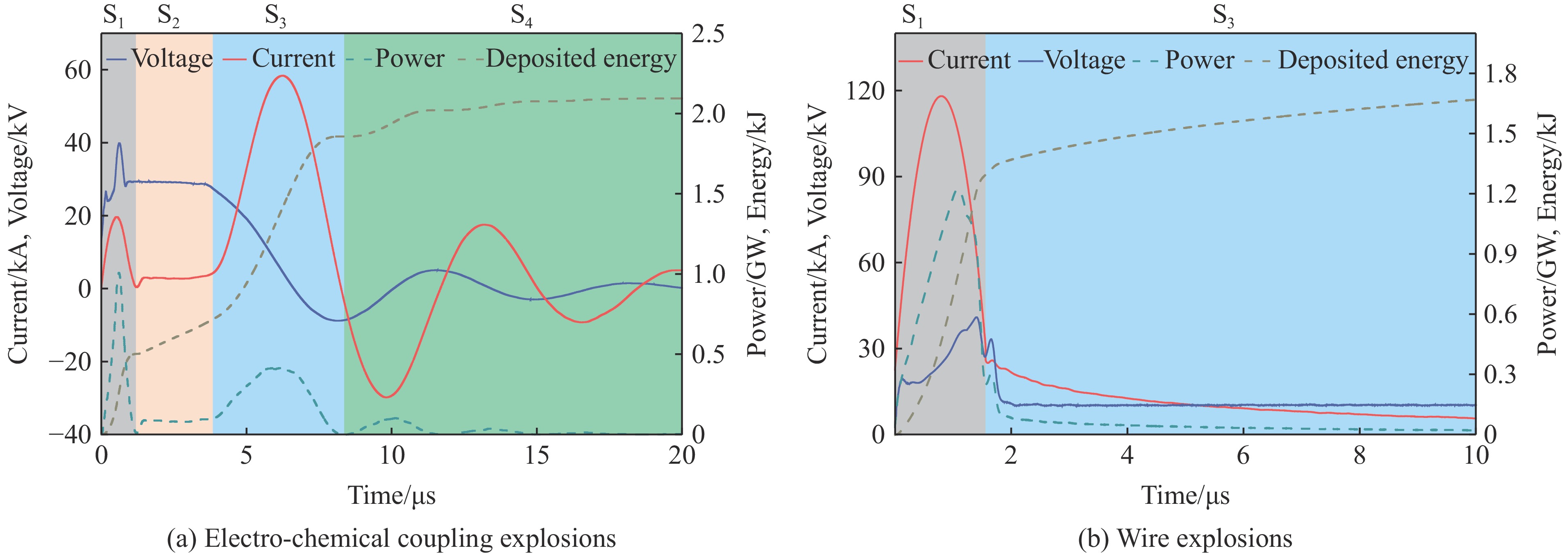 为提高含能材料爆炸能量的输出总量和功率,本研究通过金属丝电爆炸产生的等离子体驱动含能材料环四亚甲基四硝胺(HMX)起爆,实现电能与化学能的耦合释放。通过搭建的电-化耦合爆炸实验系统,在常温常压空气中测量了爆炸过程的电压、电流曲线,将电-化耦合爆炸划分为了四个典型阶段:金属丝相变、电流暂停、等离子体放电和振荡放电。研究表明不同材质金属的主要能量沉积发生在不同阶段:镍和铜等凭借中等沸点与高电阻温度系数在金属丝相变和电流暂停阶段实现了高效的相变能量沉积;在等离子体放电阶段,铝因氧化层破裂发生爆发式汽化,并凭借低电离能形成高导等离子体,沉积能量显著跃升;钨通过液态显热蓄积和电阻急剧上升,在等离子体放电阶段的沉积能量占比超过80%。研究还发现电流暂停现象受到金属材质(电阻温度系数、沸点及汽化潜热等)的影响,其中铜表现出最长的电流暂停时间,而钨则未出现该现象。本文系统研究了电-化耦合爆炸过程中的功率与能量沉积特性,揭示了金属材质对能量沉积过程的影响机制,为提升含能材料能量输出总量、功率提供了实验依据与技术支撑。