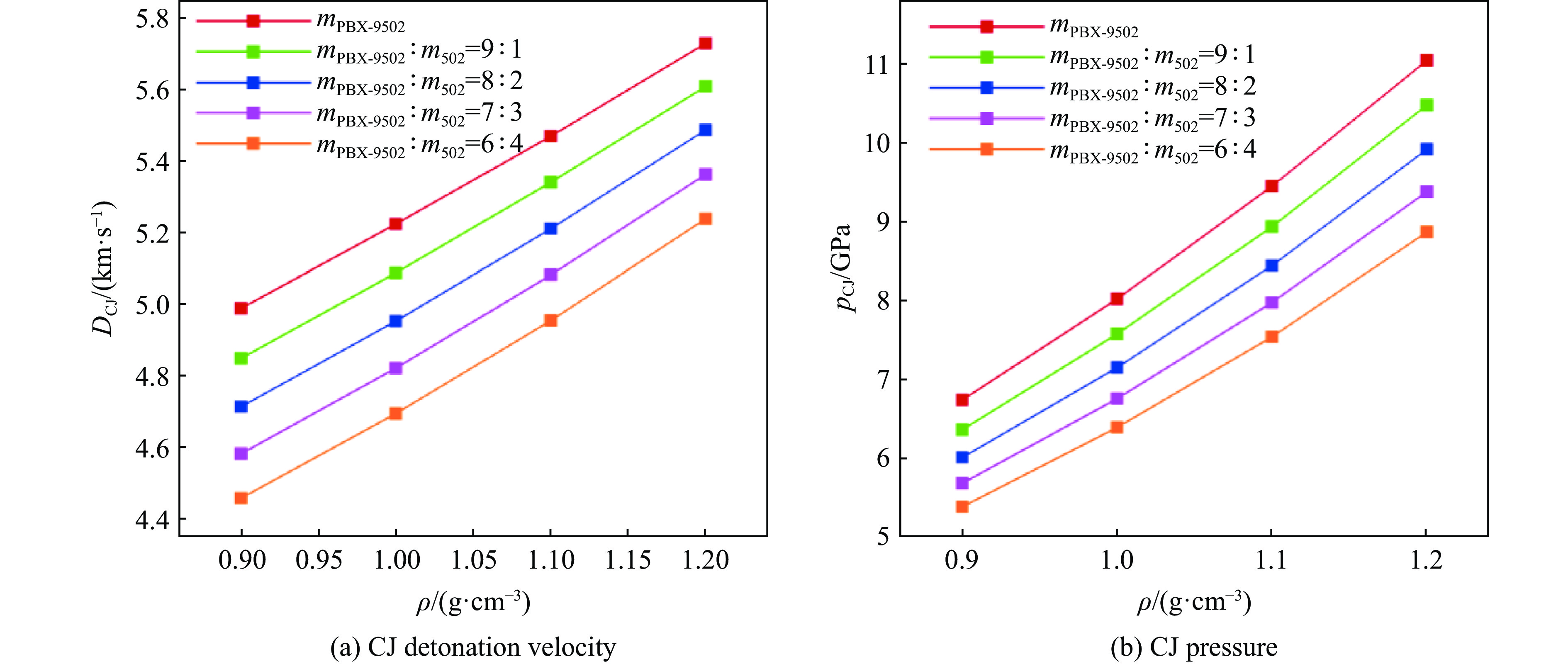 针对PBX-9502粉末和502胶按一定比例混合的低密度炸药,基于BKW程序,采用理论分析方法,对其爆轰性能和状态方程进行了研究。采用基团贡献法,计算了Kel-F(PBX-9502黏结剂)和氰基丙烯酸乙酯(502胶主要成份)生成热,确定了18种含F、Cl元素产物气体的标准熵温度系数和余容,在BKW程序框架下对5种配比、4种密度状态给出了爆轰产物的CJ爆速和爆压,并根据计算所得CJ等熵线拟合出相应的JWL状态方程参数。结果表明,爆速、爆压与初始密度正相关,而与502胶含量负相关。所得JWL状态方程参数可供通用爆轰计算软件使用,以实现装置爆轰性能评估,为实际应用中502胶配比和混合装药密度选择提供了理论依据,相关方法也可直接推广拓展至其他配方炸药(硫、铝)的爆轰参数研究中,具有重要的工程应用价值。