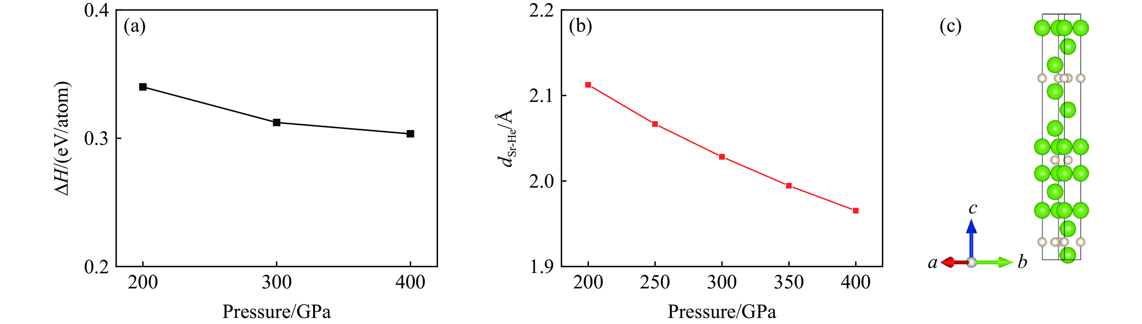 采用密度泛函理论框架下的第一性原理计算与CALYPSO晶体结构预测方法相结合,系统探究了惰性元素氦(He)与碱土金属的化合物在高压条件下的结构稳定性。研究发现,在碱土金属中,锶(Sr)与 He 形成的化合物具有相对较低的能量。为此,对400 GPa下Sr2He的晶体结构进行了预测。电子定域函数和态密度分析表明,Sr与He原子之间不存在形成共价键的趋势。此外,Bader电荷分析显示,Sr原子与He原子之间存在离子键作用,电荷从He转移至Sr,从而为阐明Sr2He的成键机制提供了关键见解。研究结果揭示了Sr2He的晶体结构、成键性质及电子特性,为理解此类亚稳材料的稳定性和物理性质提供了理论支撑,并为其实验合成提供了重要指导。
