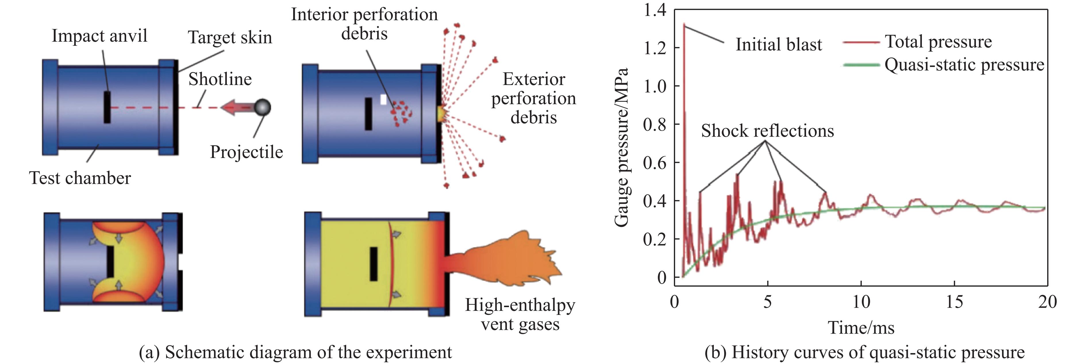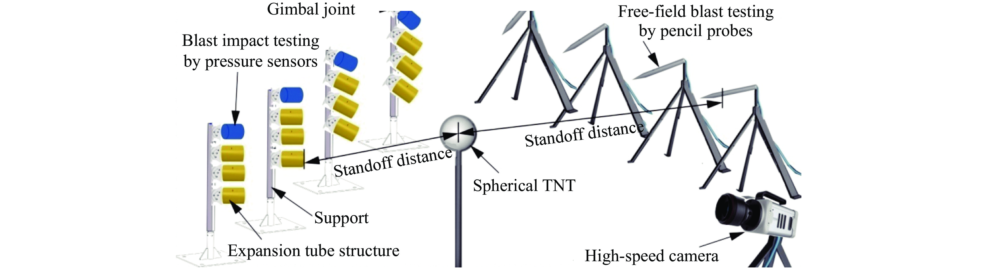 爆炸近场是弹药爆炸毁伤的核心区域,涉及强冲击波与爆轰产物的耦合载荷作用。目前,扩胀管结构(expansion tube structure, ETS)在此类极端载荷下的力学响应及能量转化机制尚不明确。为此,将ETS作为典型吸能结构,研究其在近场强冲击波与爆轰产物耦合作用下的能量转化机制。在试验验证的基础上,通过数值模拟方法研究近场爆炸载荷特性及ETS的动态响应特性,建立了近场爆炸载荷的理论预测公式,并在强冲击假设的基础上构建了能量转化效率的理论预测模型。结果表明:能量转化效率随着比例距离的增加而显著下降,当比例距离超过0.80 m/kg1/3时,能量转化效率低于10%;能量转化效率与反射波比冲量呈显著正相关,说明比冲量是决定能量传递的关键因素。研究结果揭示了ETS在近场爆炸载荷作用下能量转化的内在机制,所建立的理论模型为近场防护结构设计与性能评估提供了有力的理论支撑。
