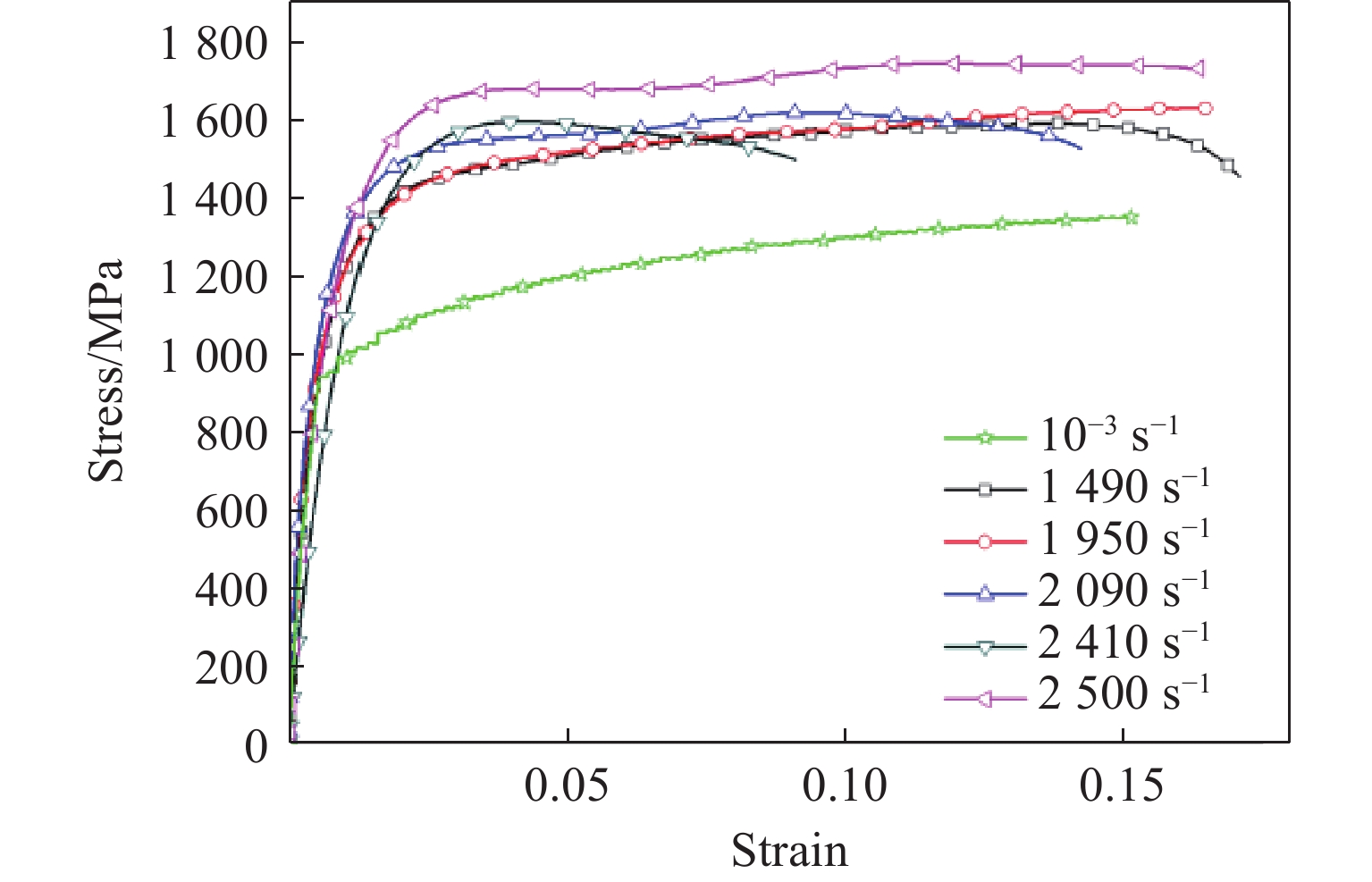 CuCrZr合金作为电磁轨道炮导轨的候选材料之一,获取其在电-磁-热-力多场耦合加载下的力学响应对于CuCrZr合金的工程应用具有重要意义。提出了一种外磁场辅助的电磁膨胀环实验技术,在不显著提升金属样品环中感应电流和焦耳热温升的情况下,稳定实现了104 s-1以上的高应变率加载。基于该技术,开展了电-磁-热-力耦合加载下CuCrZr合金的动态拉伸性能研究,获得了高电流密度、高应变率、高温升率、强磁场环境下CuCrZr合金的应力-应变曲线和断裂应变,研究成果可为CuCrZr合金在多物理场耦合工况下的应用提供重要参考。