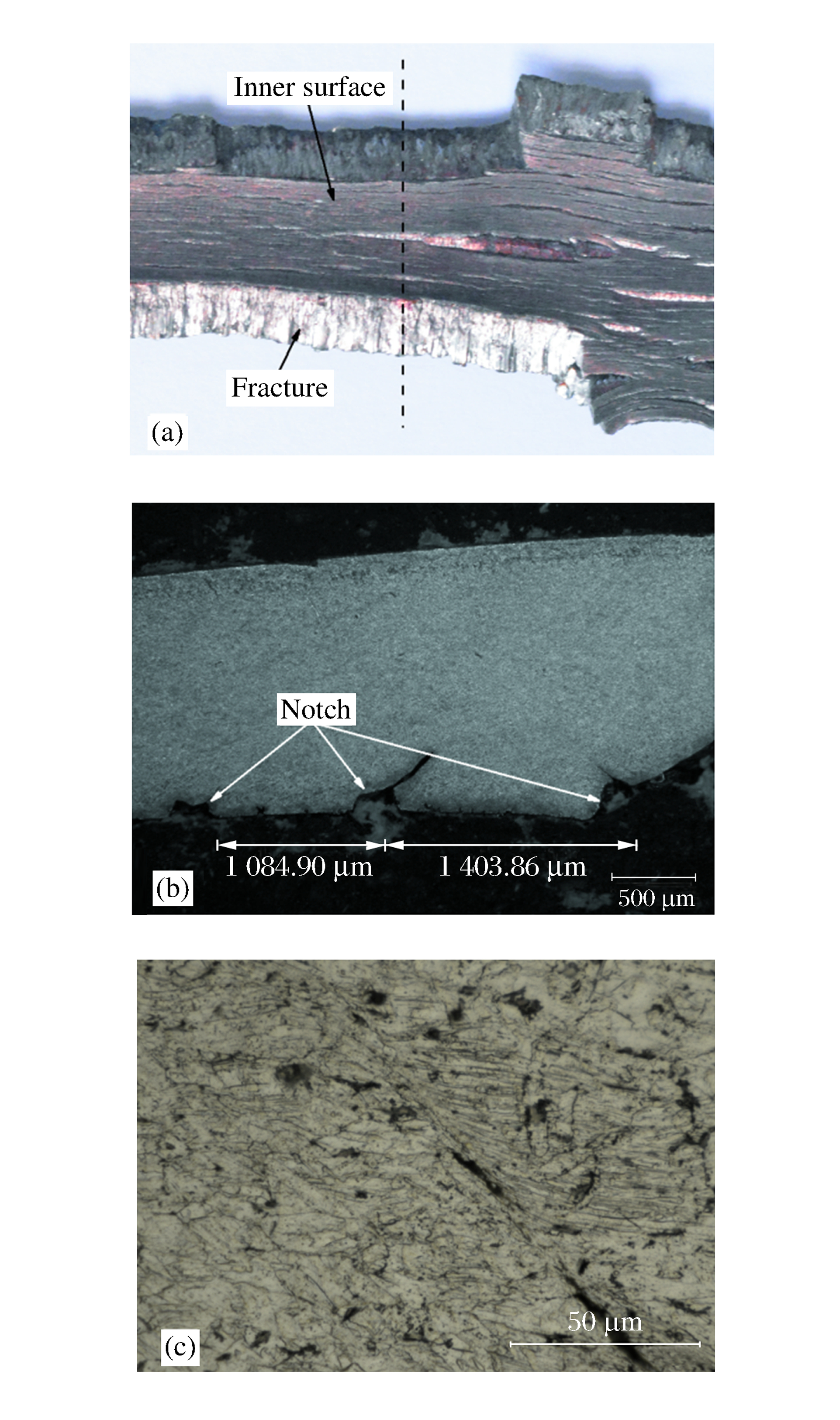 金属柱壳外爆的膨胀碎裂过程及机理十分复杂,与多个因素有关。对TA2钛合金柱壳在不同装药爆炸驱动下的膨胀碎裂开展实验研究,探讨载荷特性对金属柱壳变形、碎裂过程及碎片特征的影响。结果显示:在较高爆炸压力作用下,柱壳厚度方向的中间部位首先形成损伤带,碎裂破坏从该处起始向内、外表面扩展,且随着载荷脉宽的减小,试样厚度中部的损伤带却更趋严重,试样外表面产生层裂破坏现象;在较低爆压下,断裂裂纹从内壁起始,沿45°或135°方向剪切扩展,断裂机制与较高爆压下不同。分析认为,不同特性爆炸冲击波来回反射、相互作用会导致不同机制竞争,影响柱壳断裂起始、裂纹扩展过程及模式。
