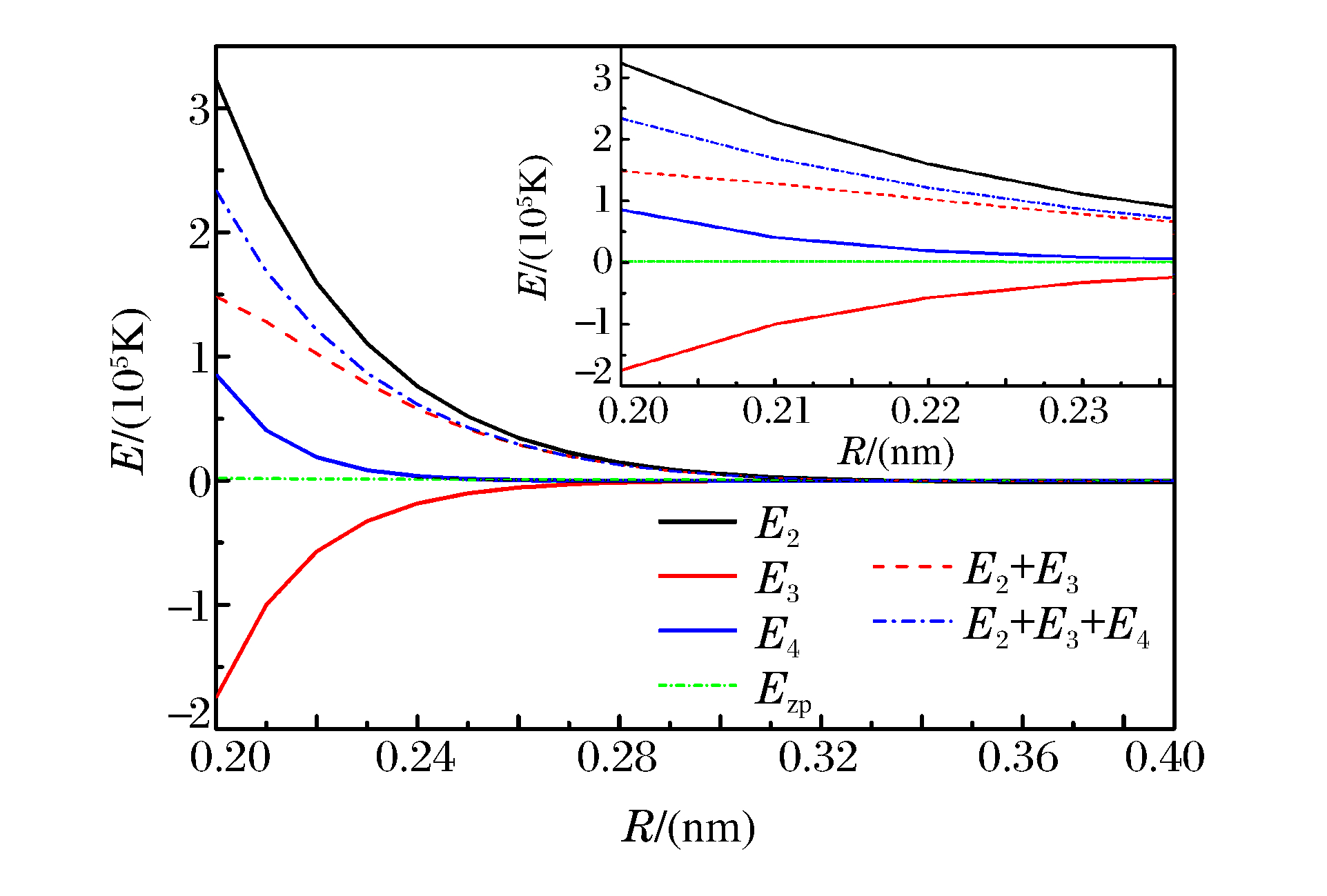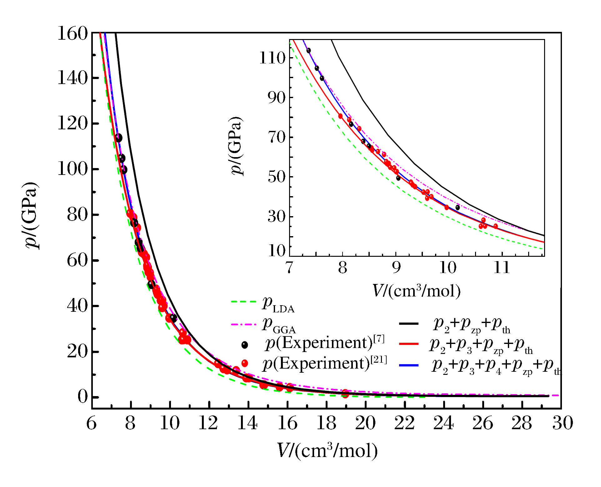 基于第一性原理,运用ab initio超分子单、双(三)重激发耦合簇理论(CCSD(T))和aug-cc-pVQZ基矢,精确计算了fcc晶体固氩在最近邻原子间距R=0.20~0.39 nm时的两体、三体和四体结合能,零点振动能及物态方程。结果表明:固氩的多体势对结合能的贡献在高压区域是一正负交叉级数;零点振动能占多体相互总能的比例较小,但不可忽略;在高压区域,只考虑两体势时对固氩的压缩特性表现过硬,加入三体势后与实验结果在60 GPa内完全吻合,考虑到四体势后对整个实验区间0~114 GPa内做出令人满意的描述,且在压强达到114 GPa时与实验值相差约3 GPa,吻合程度达到97%。最后,通过与密度泛函理论的局域密度近似和广义梯度近似方法比较发现,泛函理论(DFT)只有在50~114 GPa范围内与实验值符合较好,不如本研究所采用方法适用的压强范围宽。