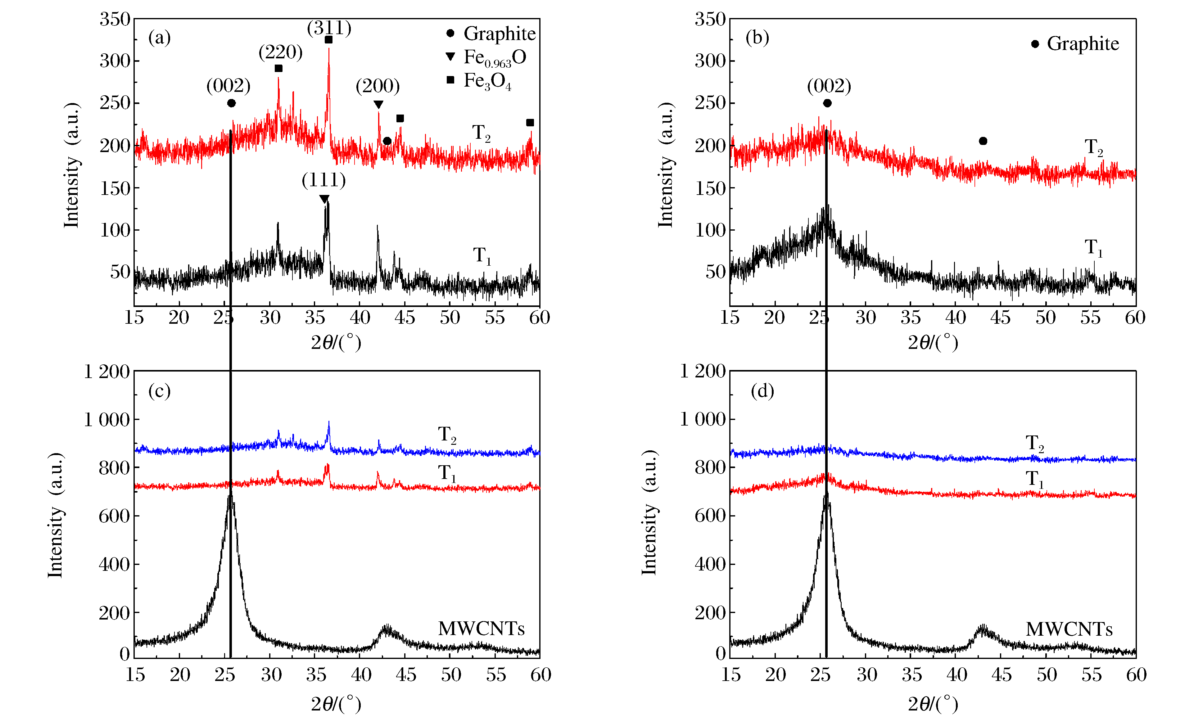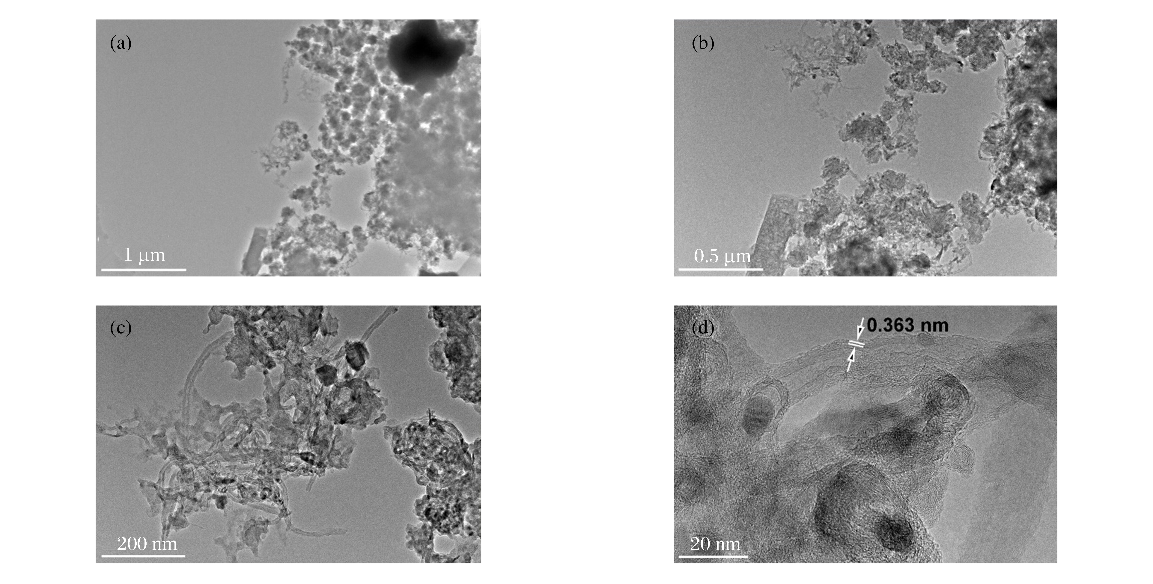 以甲烷和氧气作为爆源,二茂铁为前驱体,探究了不同前驱体质量对所合成的碳纳米管的影响。利用X射线衍射(XRD)、透射电子显微镜(TEM)、高分辨透射电子显微镜(HR-TEM)等手段对碳纳米管的形貌和结构进行表征,结果发现:当二茂铁量较少时,只有碳包覆铁纳米颗粒存在;随着二茂铁质量的增加,逐渐有碳纳米管生成,其管径大多分布在10~50 nm之间,为多壁碳纳米短管。随着前驱体质量的增加, 碳纳米管的石墨化程度提高,结构缺陷也变少。通过对合成产物的热重分析可得,气相爆轰法所制备的碳纳米管具有强烈吸氧性,所得样品中碳纳米管的质量分数为26%左右。