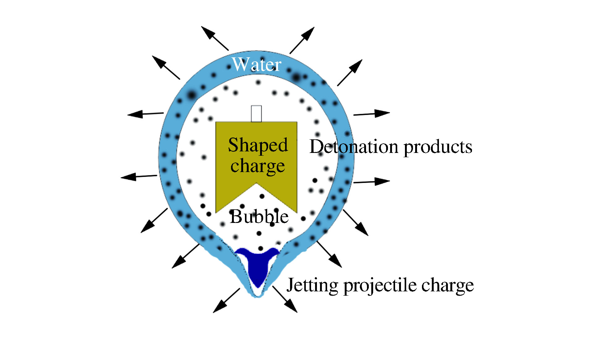 为了提高一体式多爆炸成型弹丸(MEFP)的成型效果及侵彻能力,通过数值模拟分析了药型罩形状及壁厚、壳体厚度、起爆方式、破片支架对其成型及速度的影响,在此基础上给出了一种一体式MEFP战斗部,通过实验验证了该一体式MEFP战斗部结构的成型、散布特征及侵彻性能。结果表明:该战斗部可形成17枚聚能杆式弹丸(JPC),且单个JPC形状、飞行方向稳定,飞散角为14.5°,与实验结果14.8°吻合良好;该MEFP战斗部可对12mm厚的603装甲钢靶板造成有效毁伤。